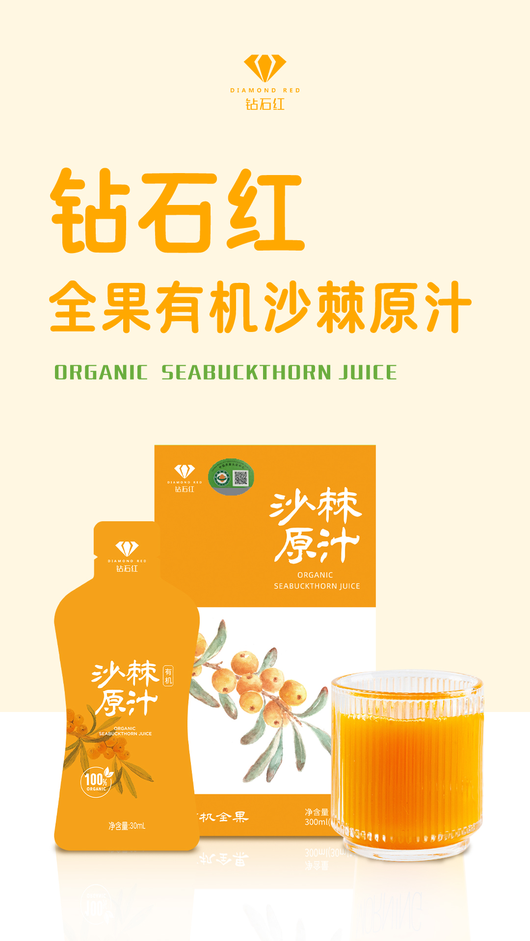 【中通】有机沙棘原汁、枸杞原汁|原料产地:青海 格尔木,有机种植,全果沙棘,VC满满,542项农残0检出,无香精。30ml/袋