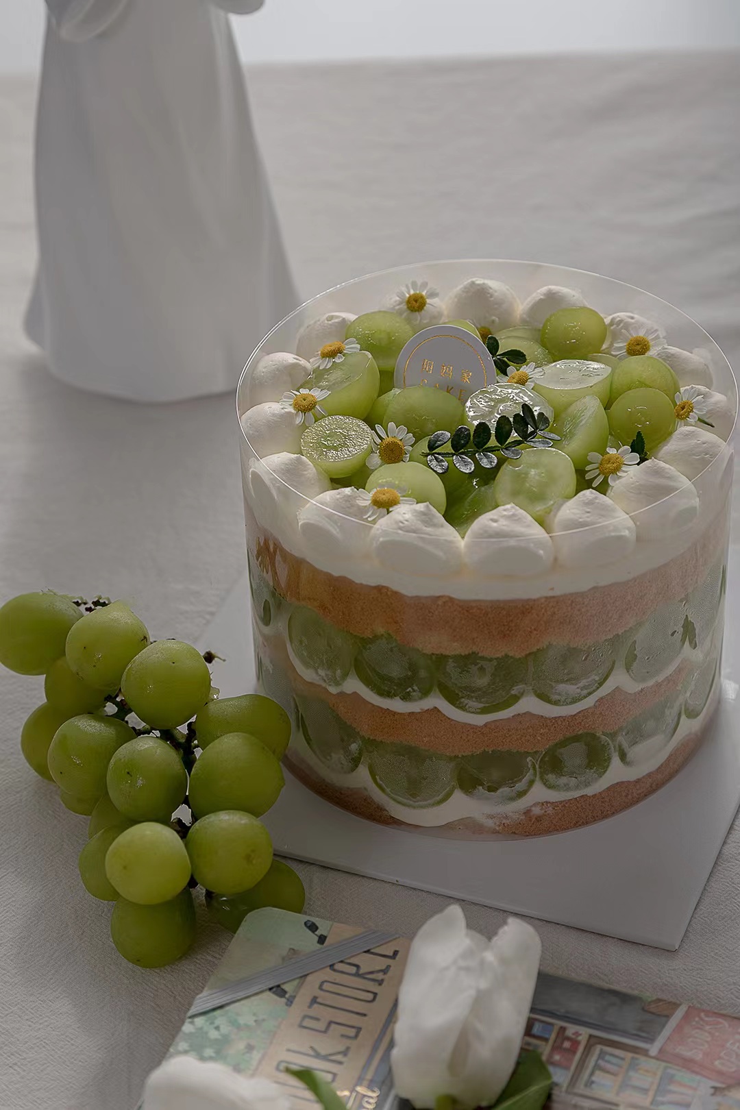 此款蛋糕胚默认为戚风胚,夹心及装饰为新鲜阳光玫瑰。