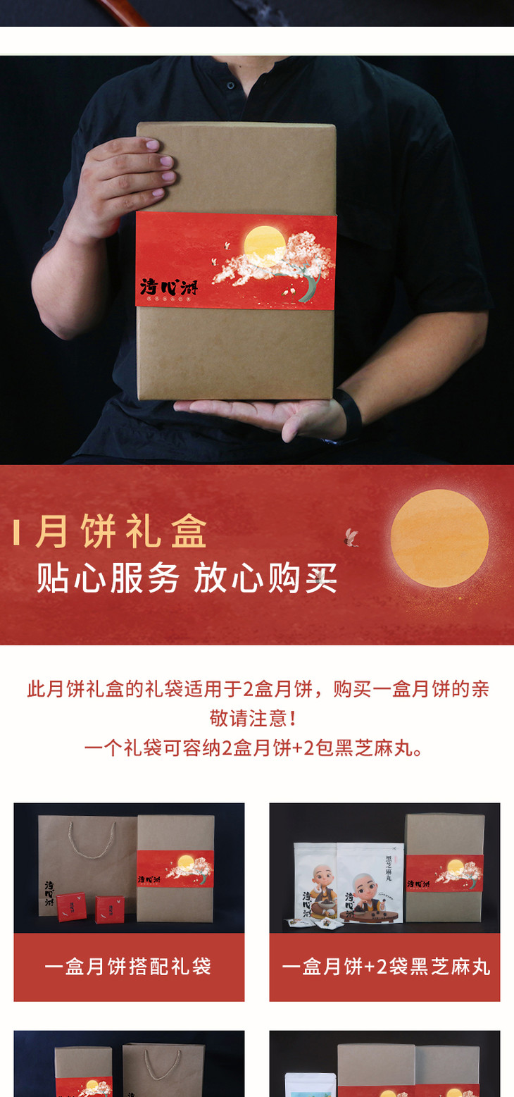 19年 月饼礼盒:6粒装 预售9.5开始发货清心湖黑芝麻五仁*2 XO松茸*2 腰果海苔素肉松*2送礼健康无添加