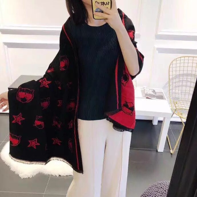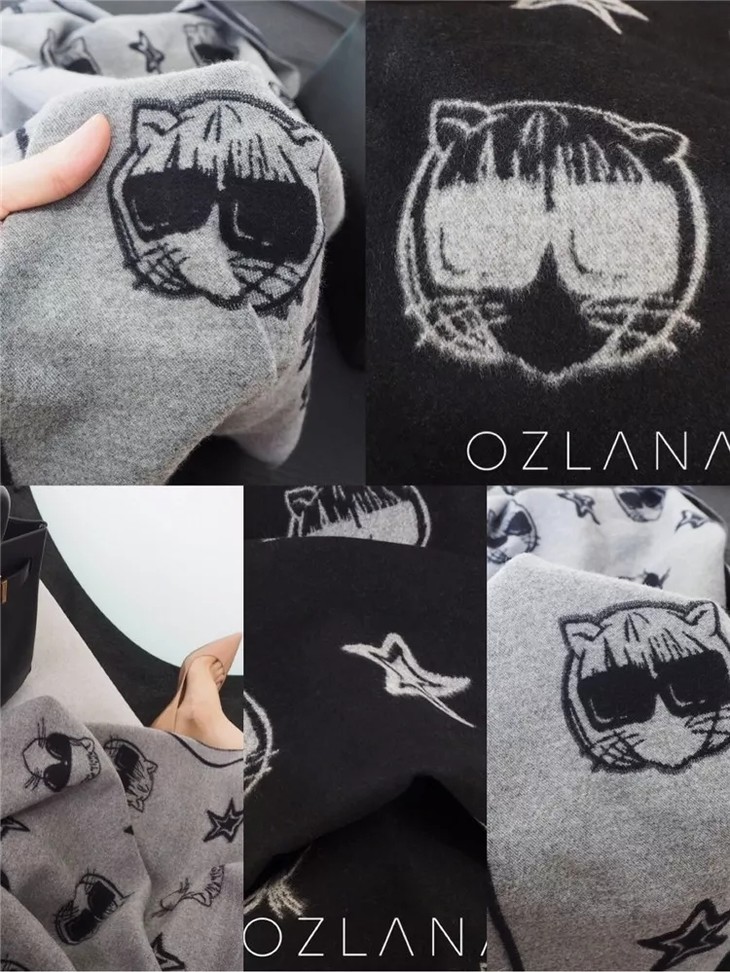 青春与优雅并存,澳洲OZLANA明星同款啵啵狗爱心吸睛猫头双面羊毛围巾披肩 FWJ52078