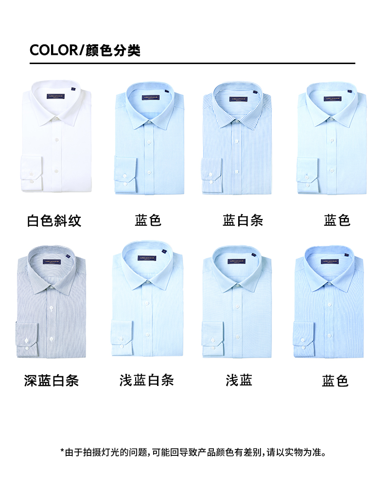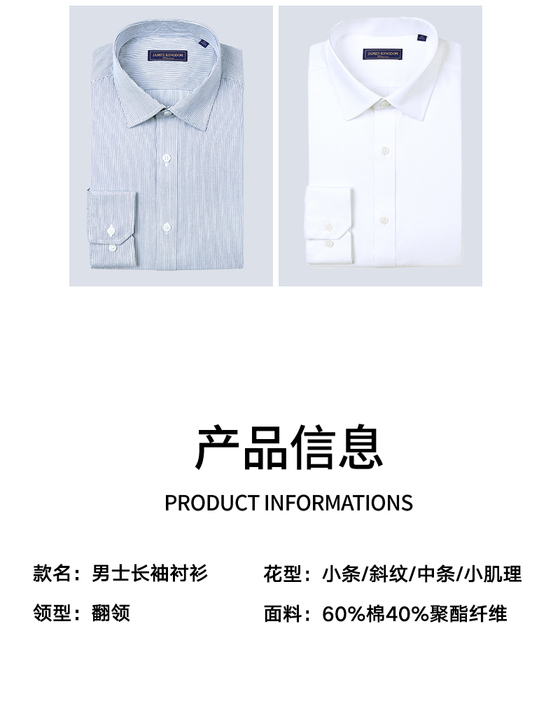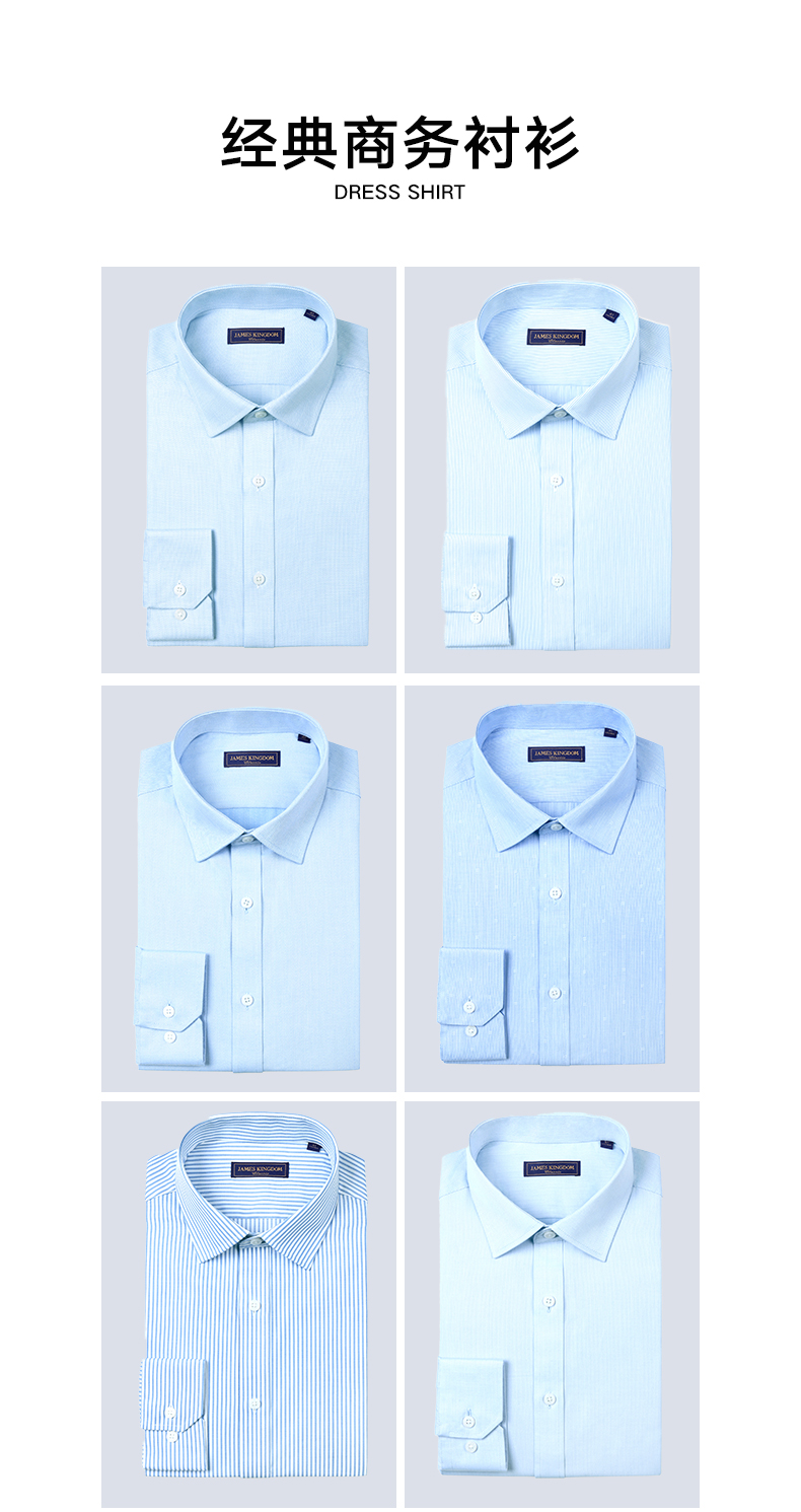 【棉混纺男士商务多款合集】占姆士男士25初秋白蓝抗皱系列长袖衬衫 多款多色