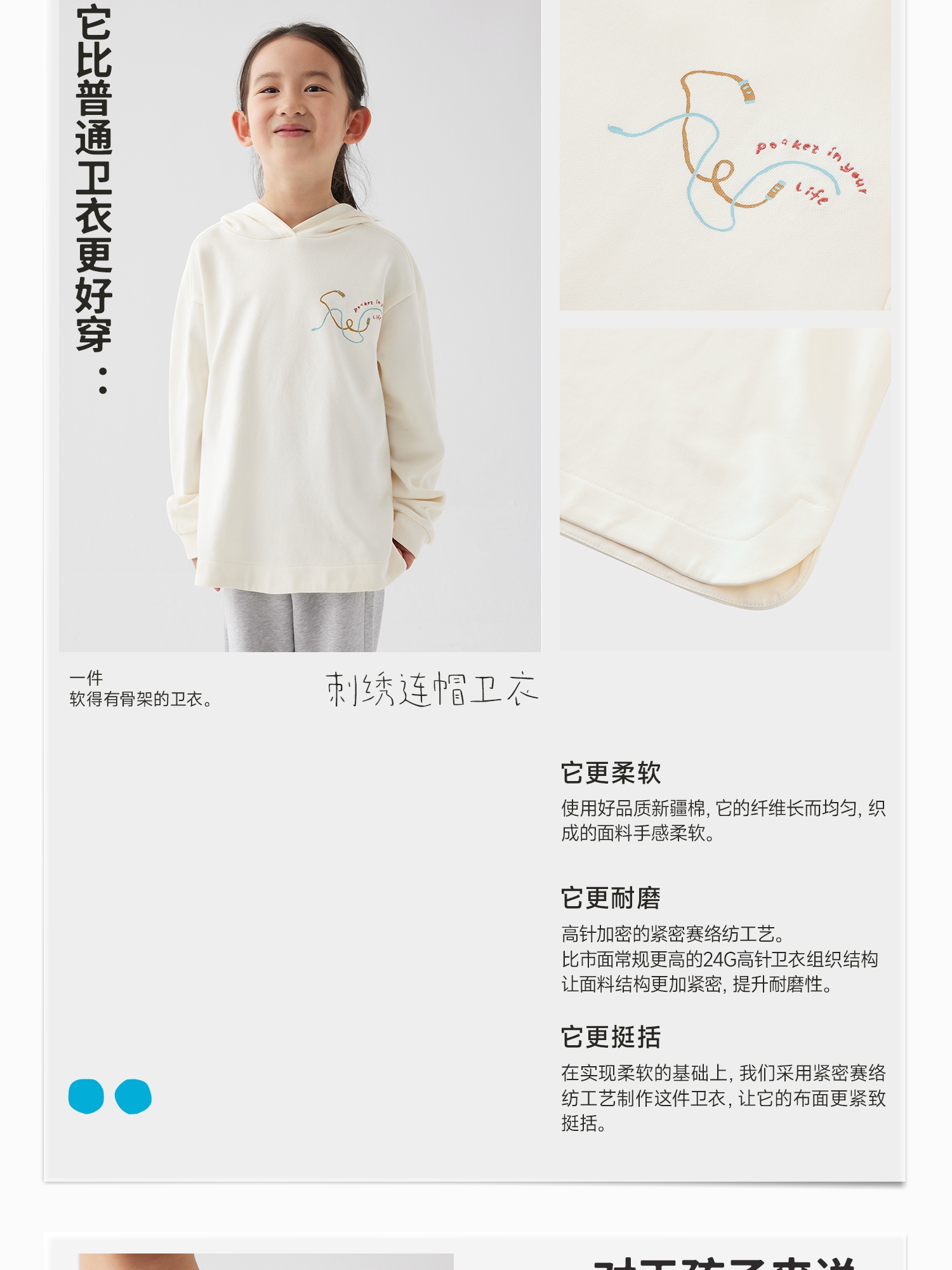 【好友特惠】幼岚柔软亲肤舒适刺绣连帽卫衣挺括有型24春季新款儿童男女童卫衣ZY