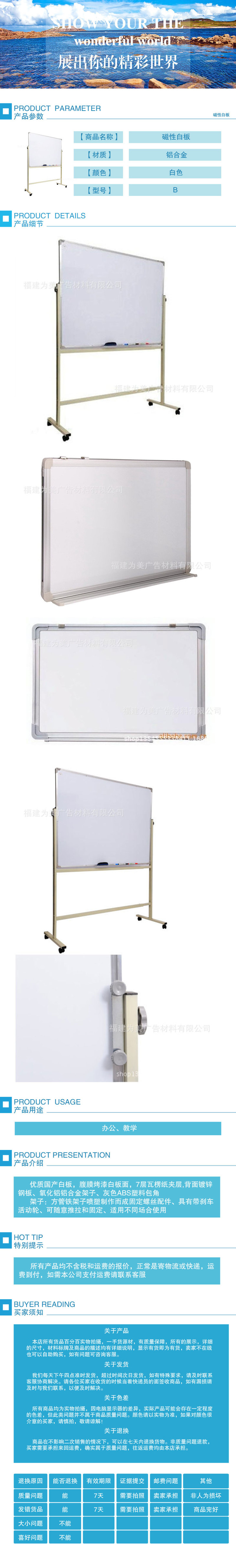 磁性白板 白板架【福建区域发货】