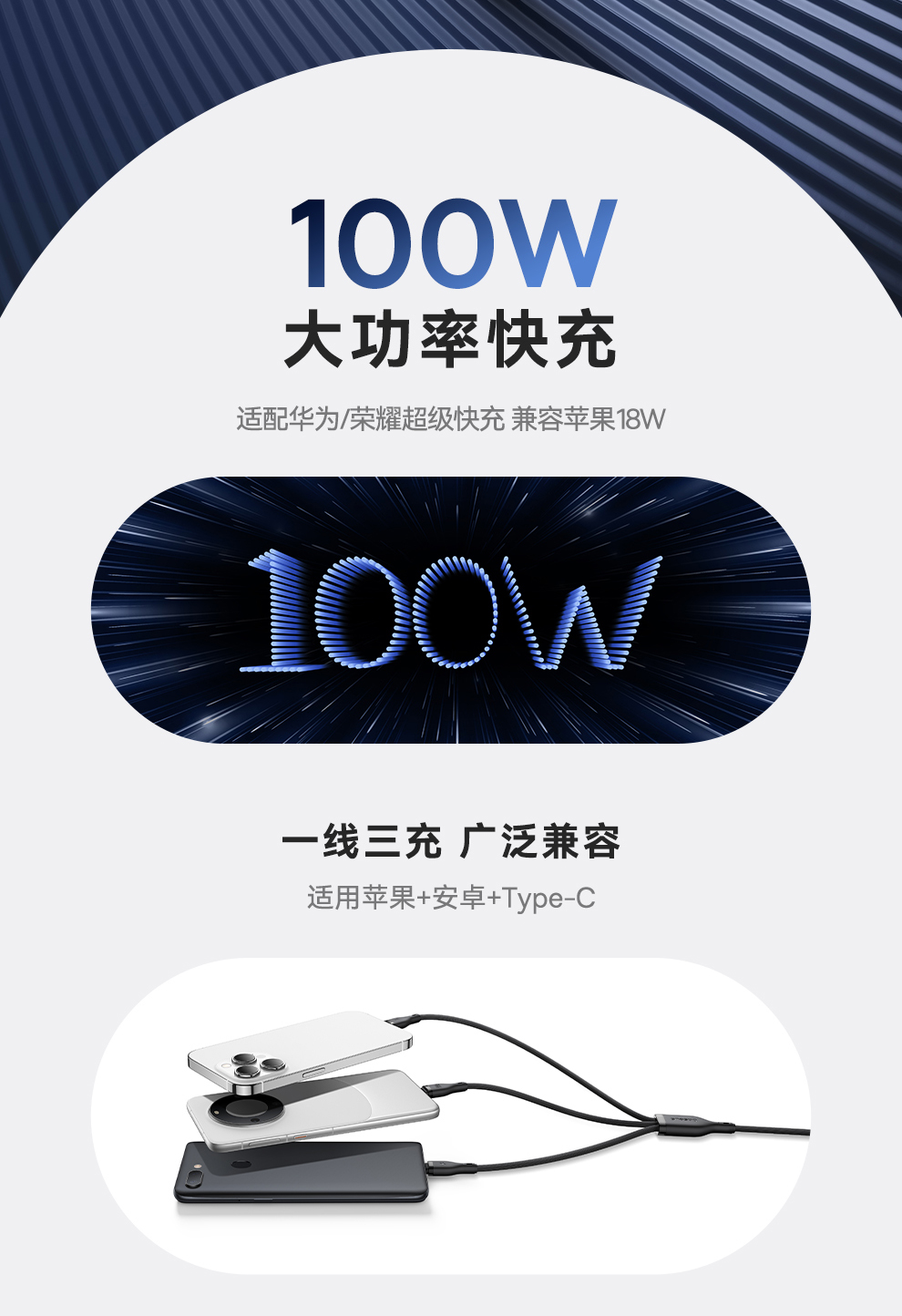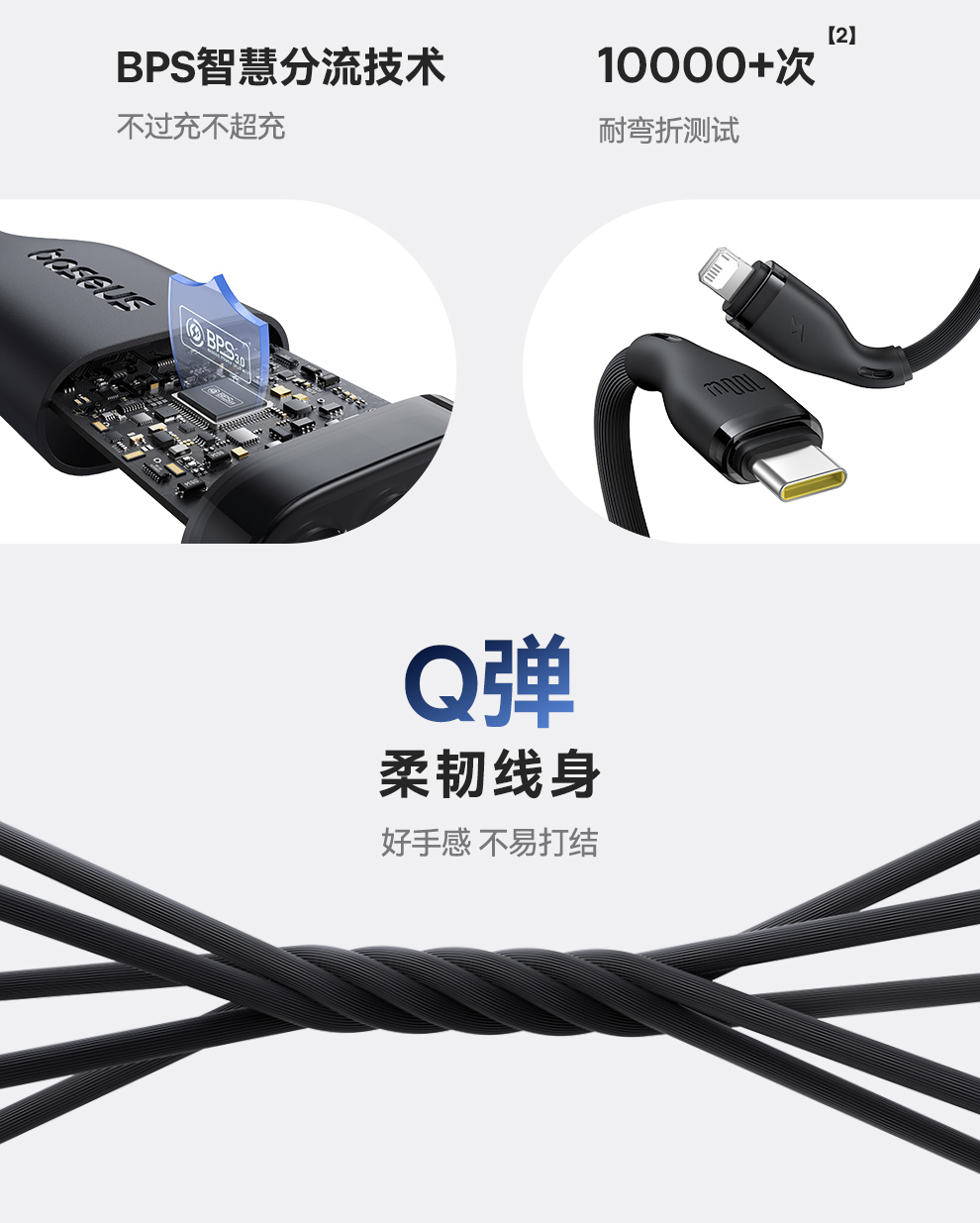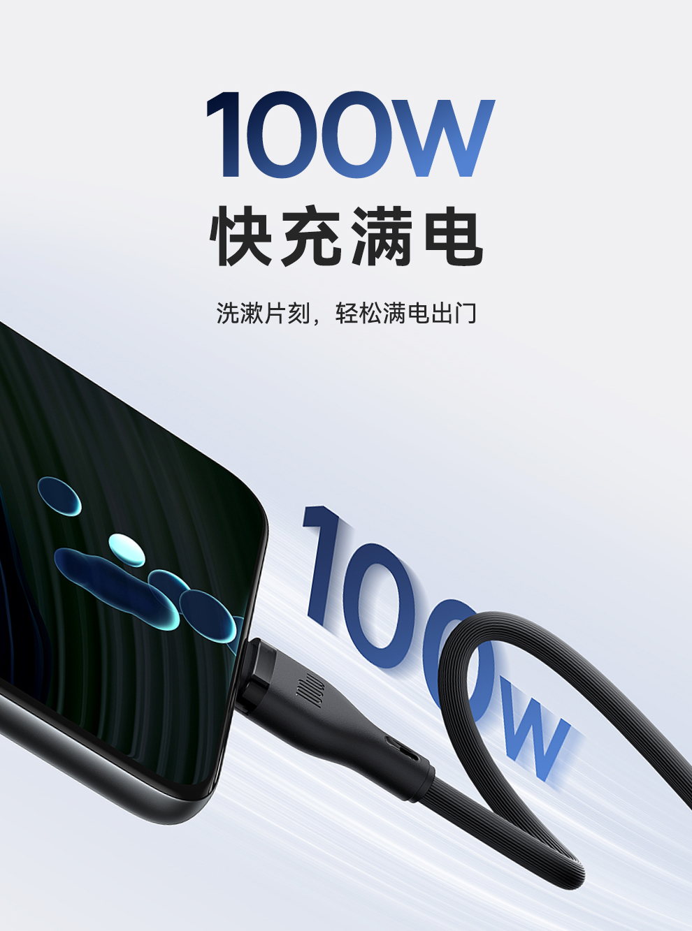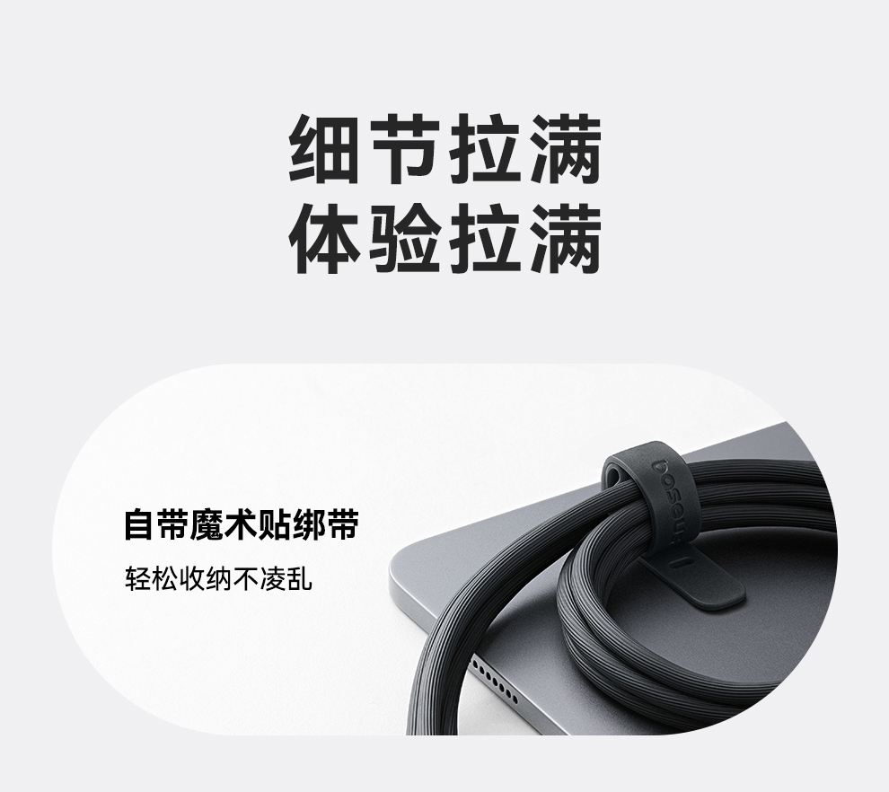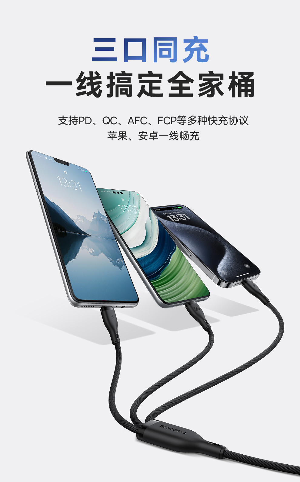 倍思简装 Q弹系列 一拖三快充数据线 USB to M+L+C 100W 1.5m