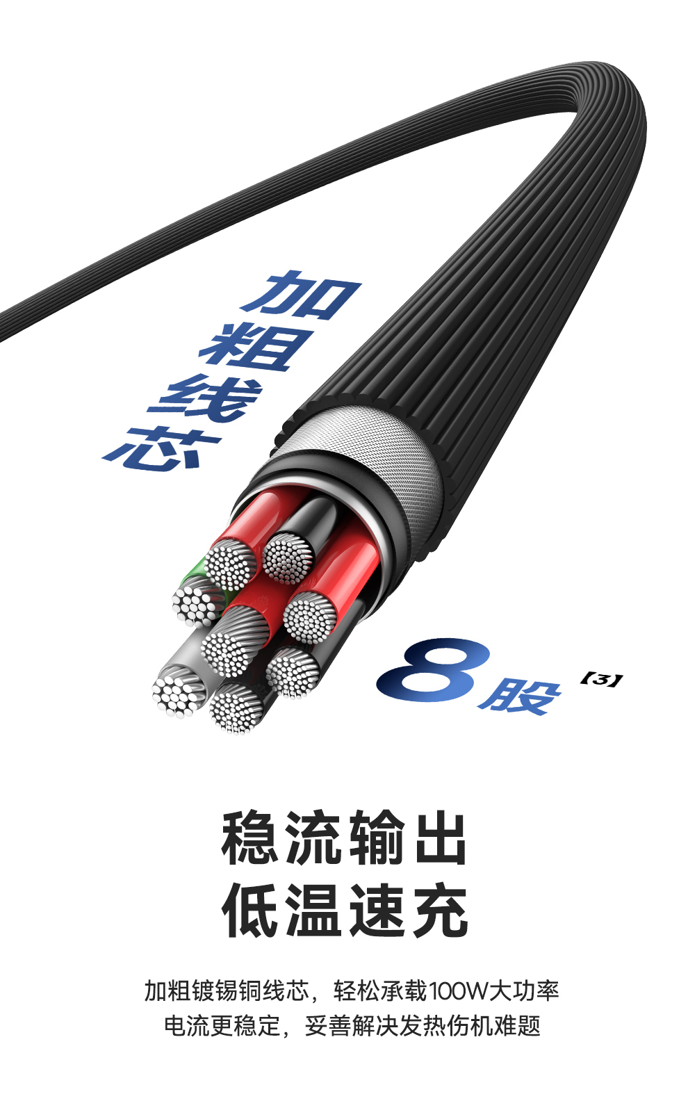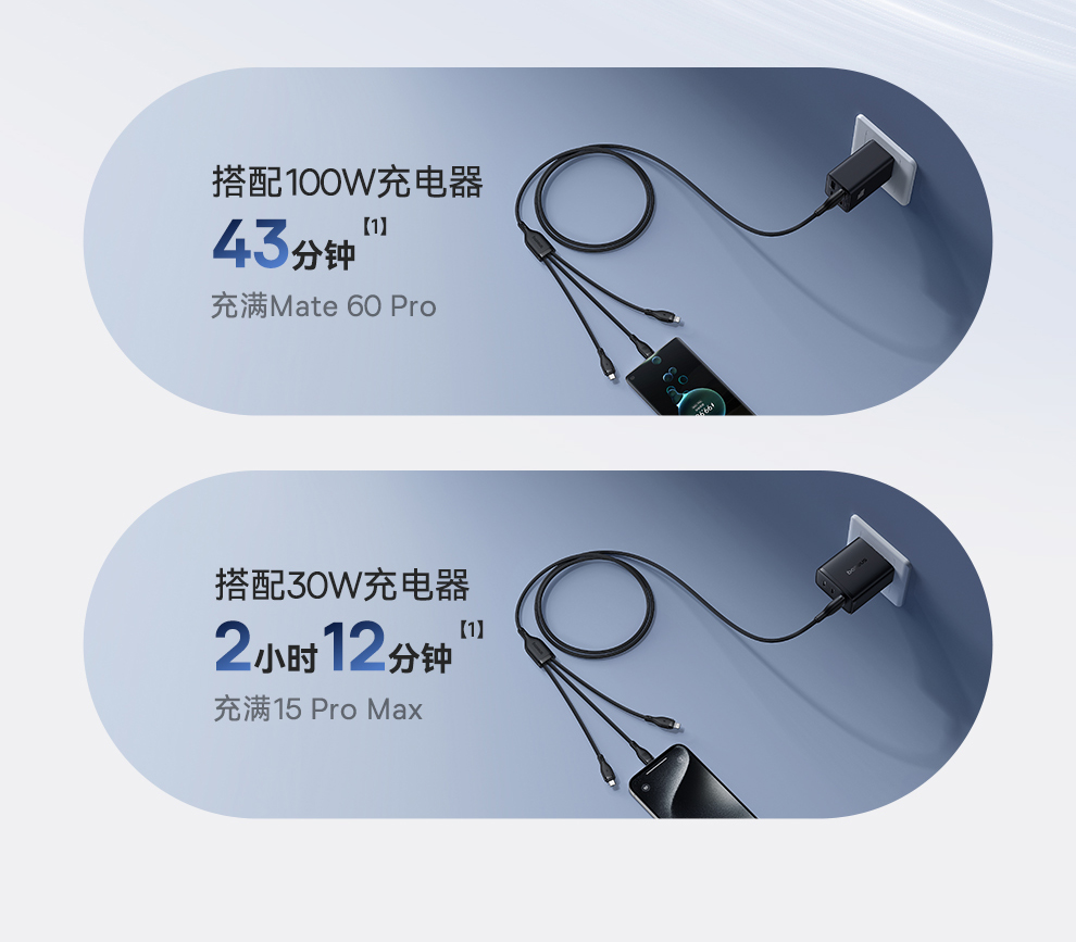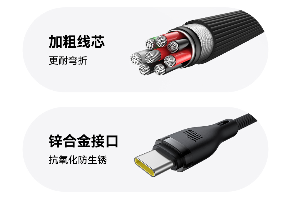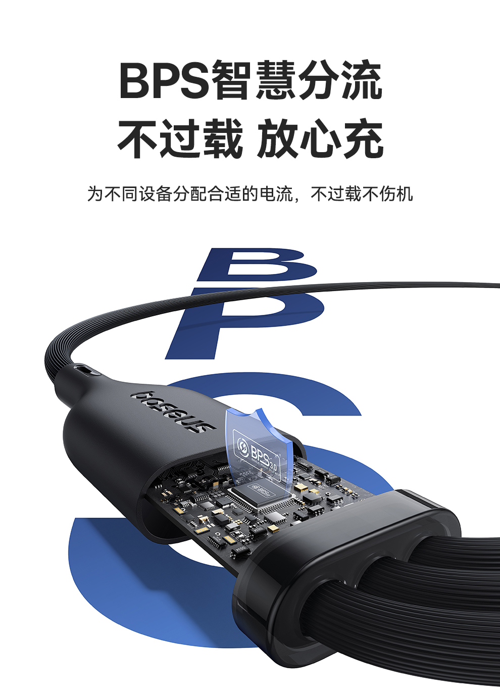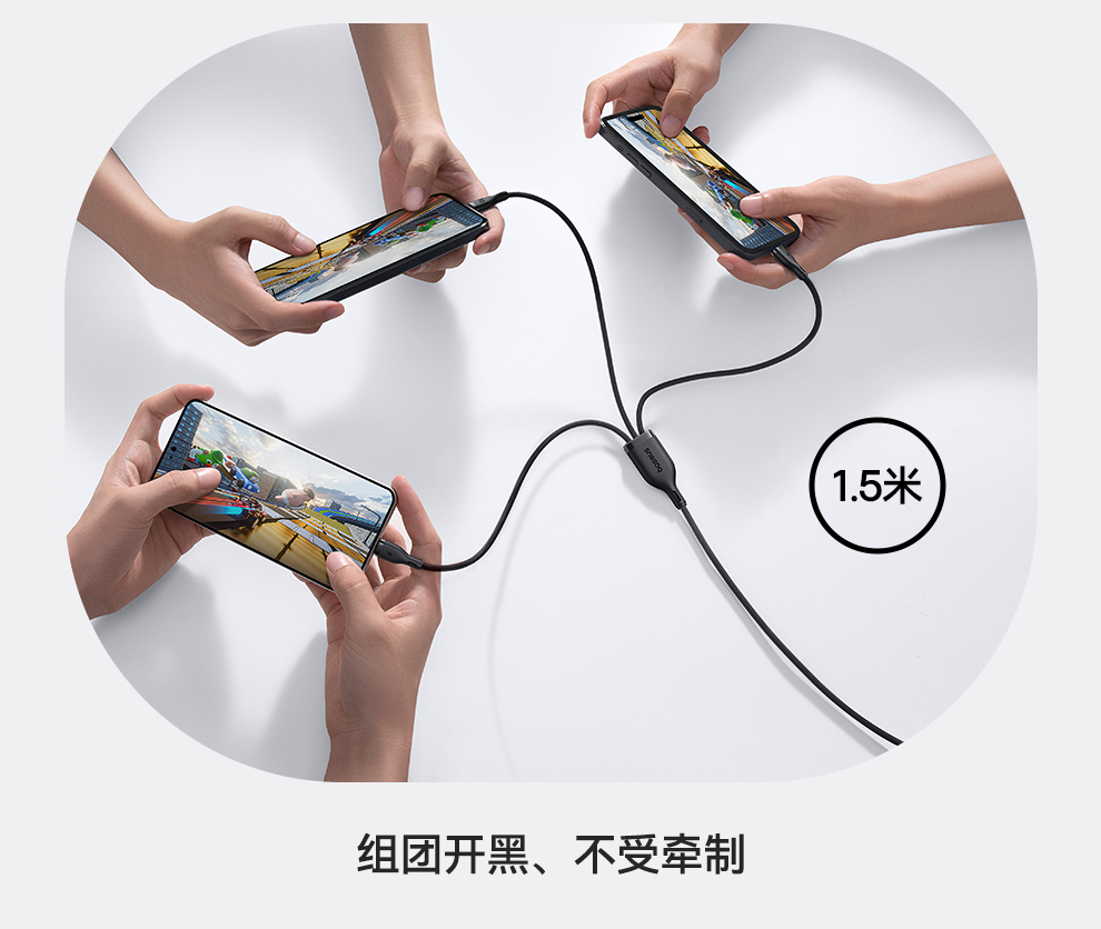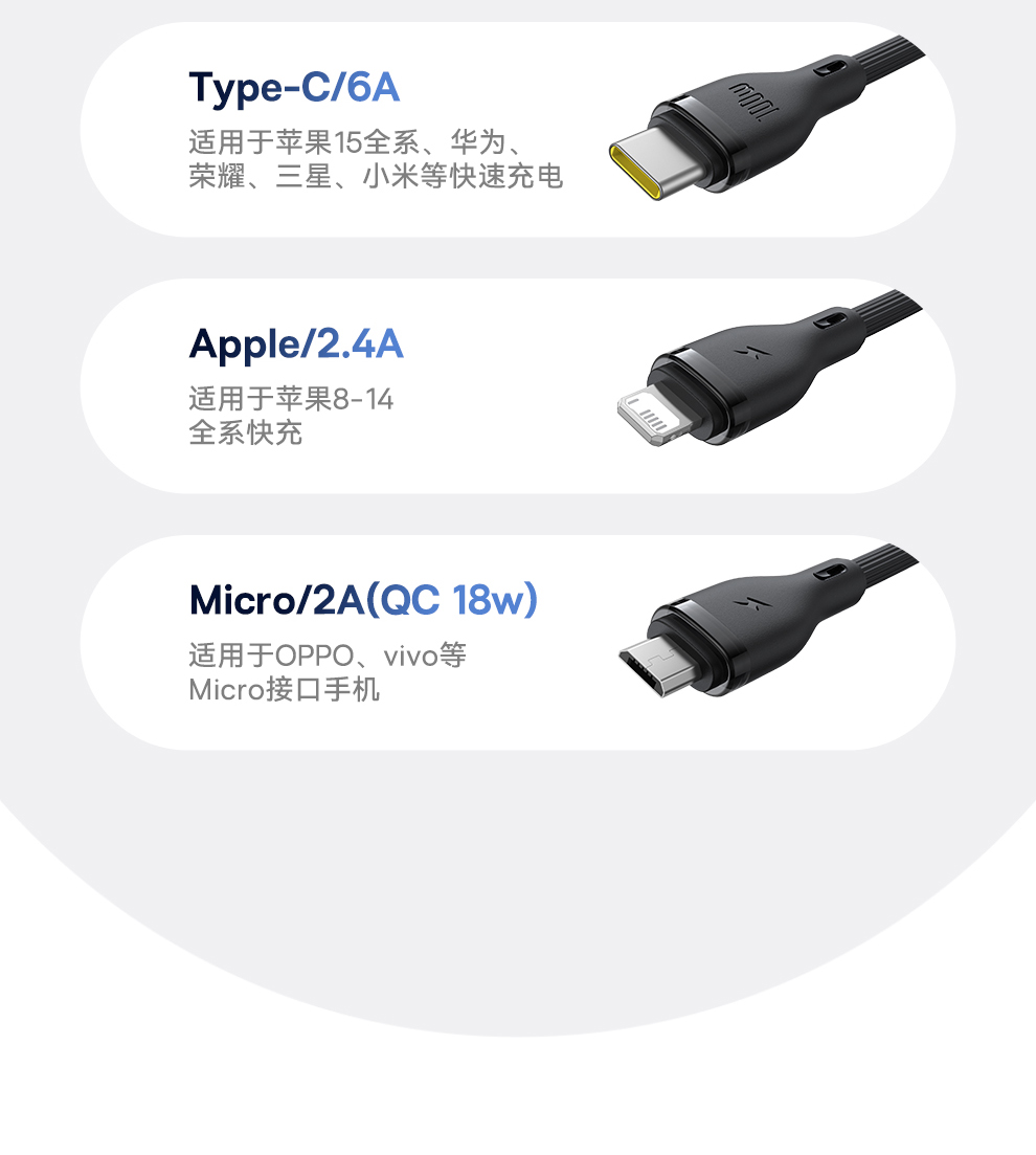 倍思简装 Q弹系列 一拖三快充数据线 USB to M+L+C 100W 1.5m
