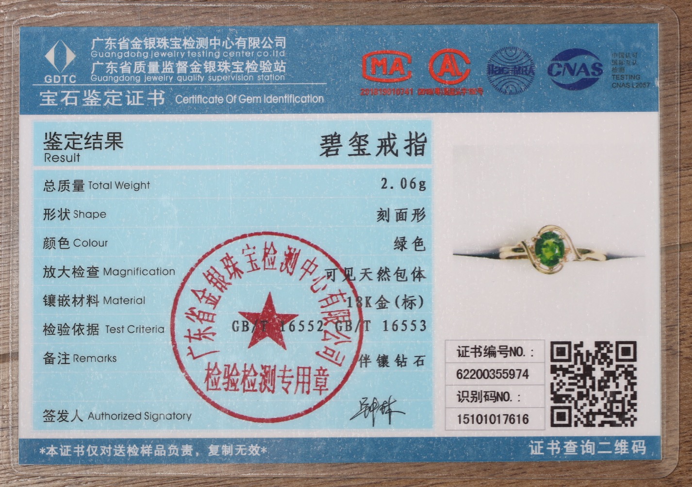 赠证书:62200355974