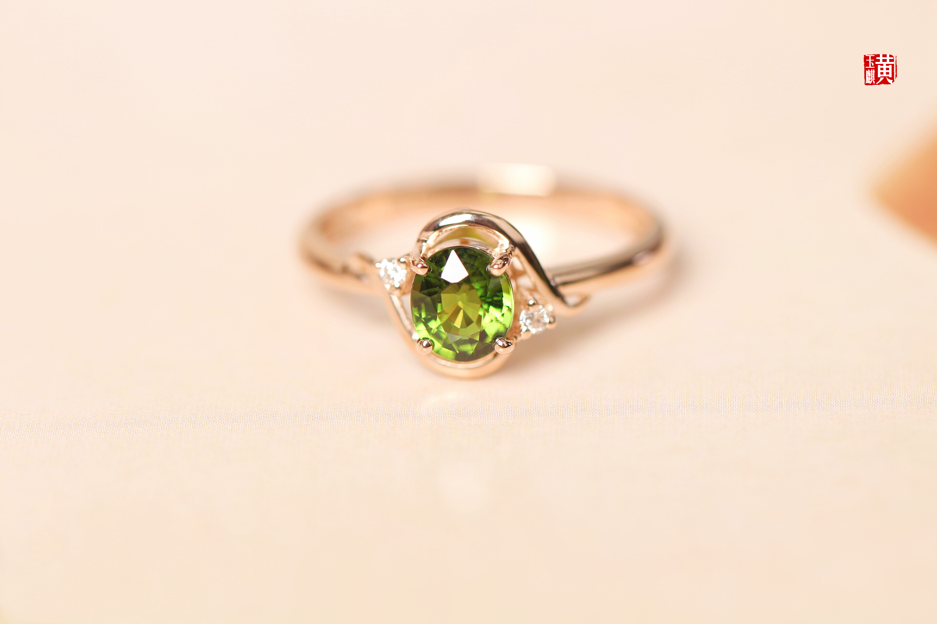 【诗语】18K金镶绿碧玺戒指