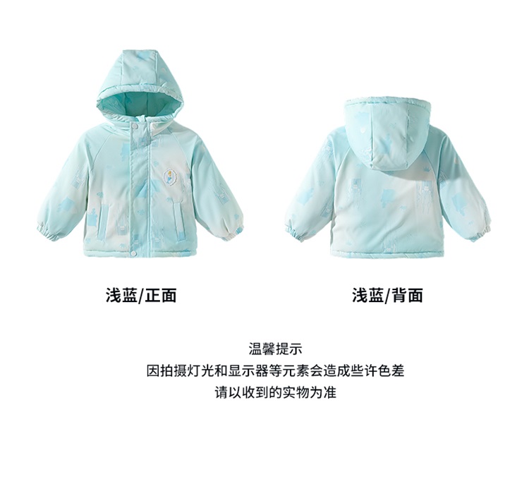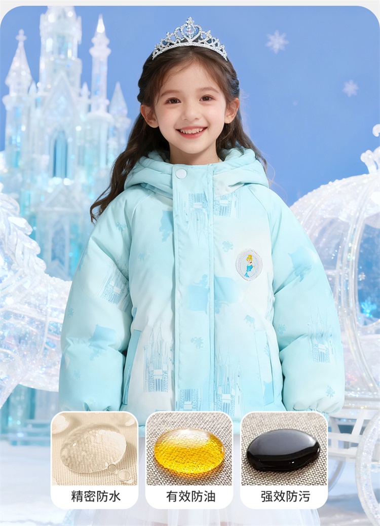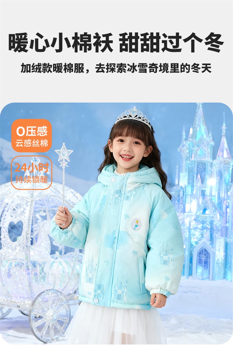 迪士尼25冬季新款女童棉服女孩户外防风连帽保暖软壳外套ZD4ES029