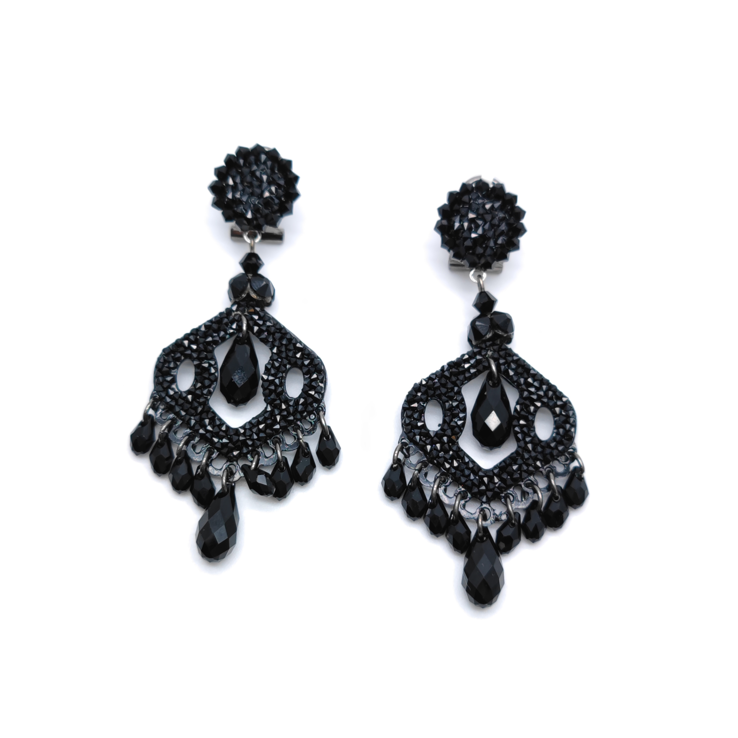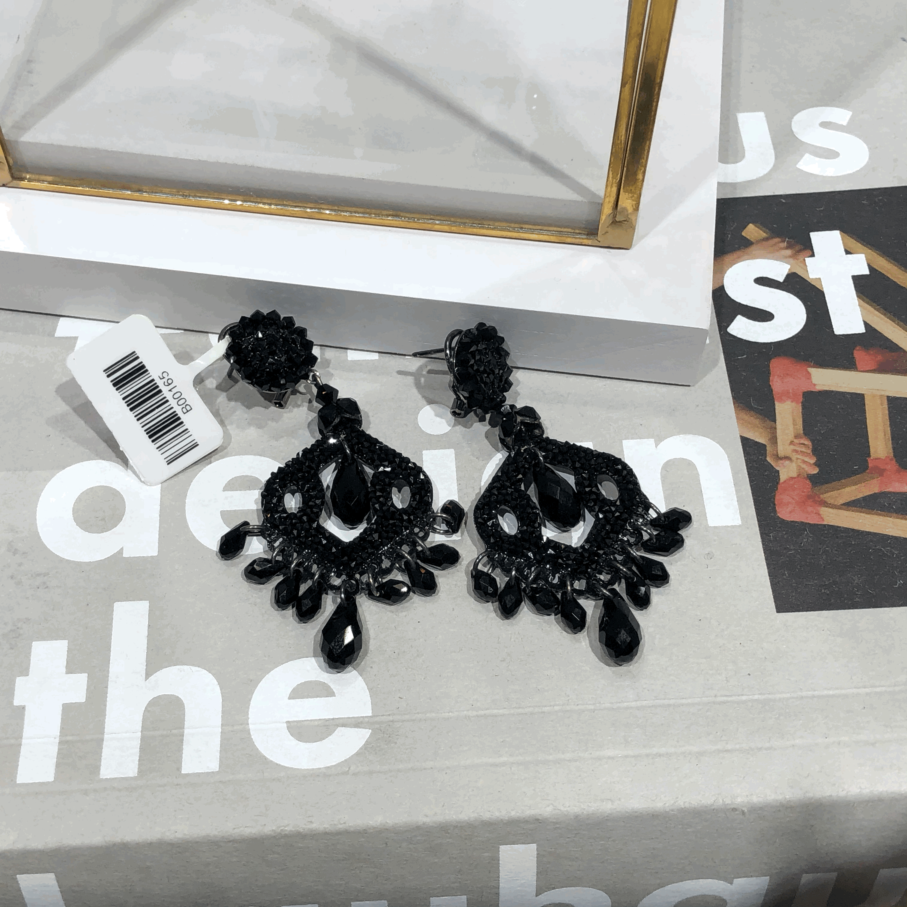 耳环材质为:珠宝级合金镀氧化银 人工玻璃水晶 珠宝级树脂