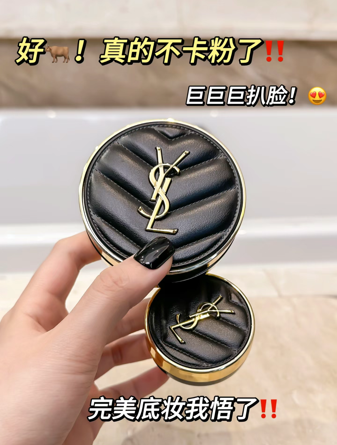 送大牌香水小样【YSL圣罗兰黑皮革&粉气垫】❤谁用谁是妈生好皮 YSL粉气垫,干皮挚爱,轻松打造清透奶油肌 ◆YSL黑皮革气垫,适合混油肌,打造自然裸妆感