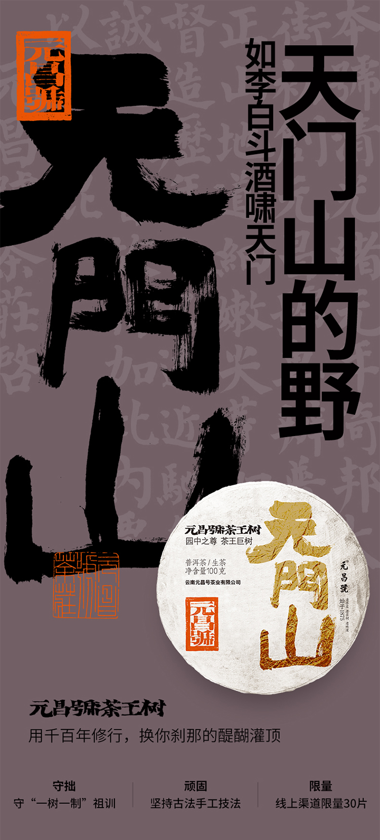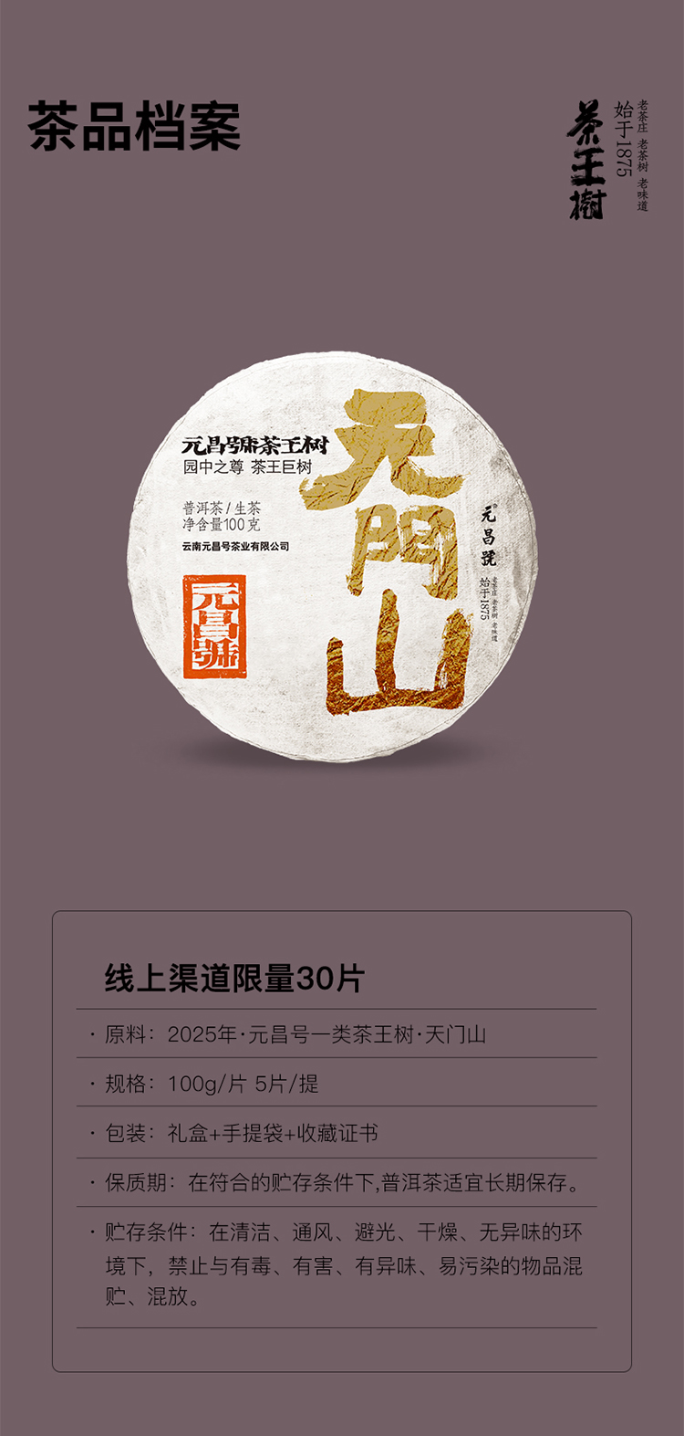 【茶王树系列】元昌号2025年天门山一类茶王树100克生饼