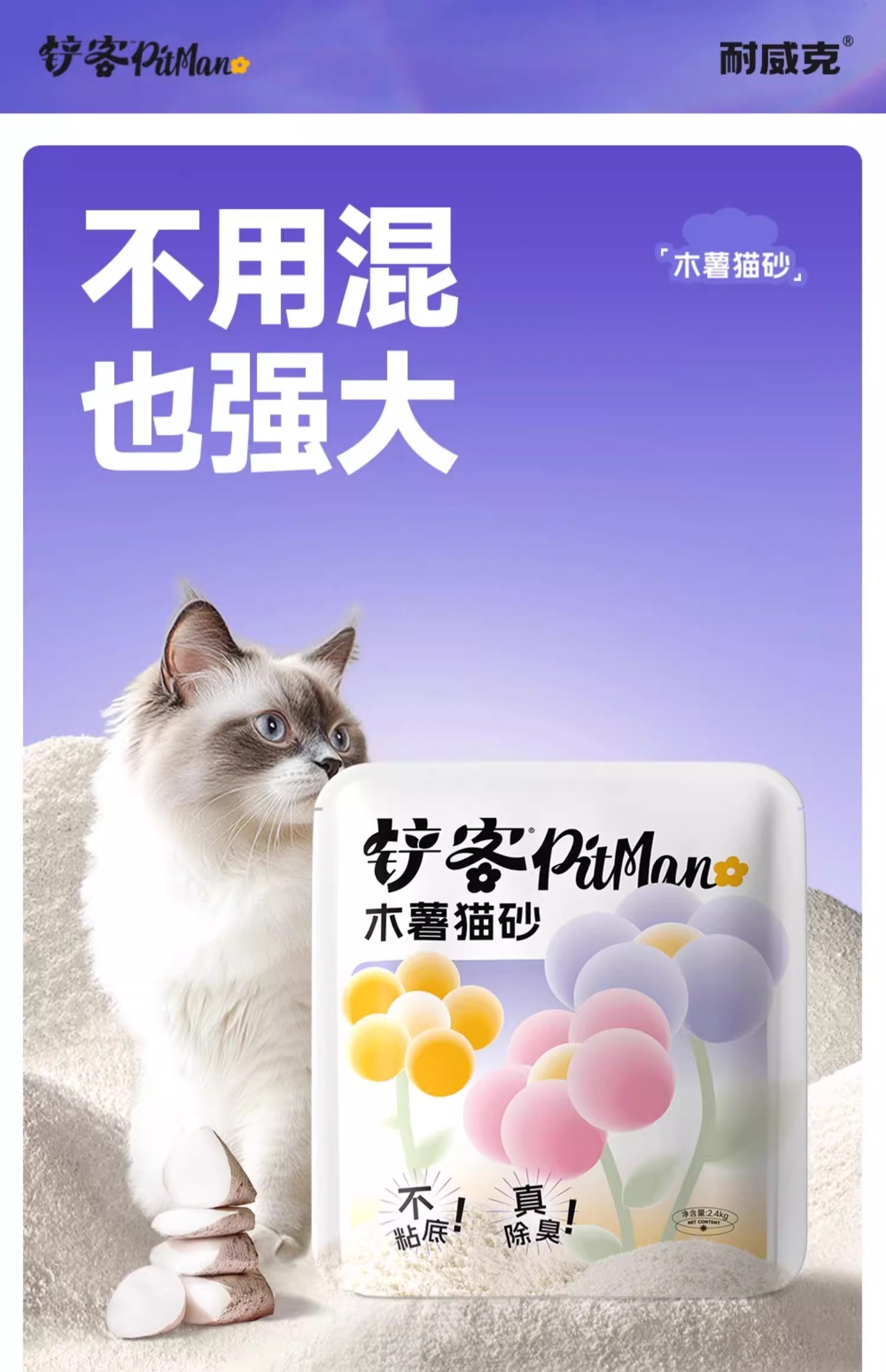 耐威克木薯猫砂|纯植物砂|一铲即净|不粘底,拒绝残留|不散团,锁住异味|空隙小,用量省