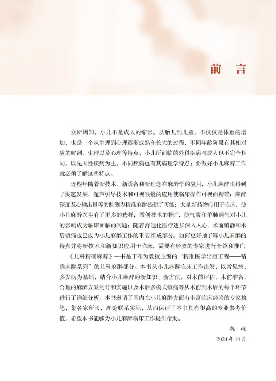 书名:儿科精确麻醉