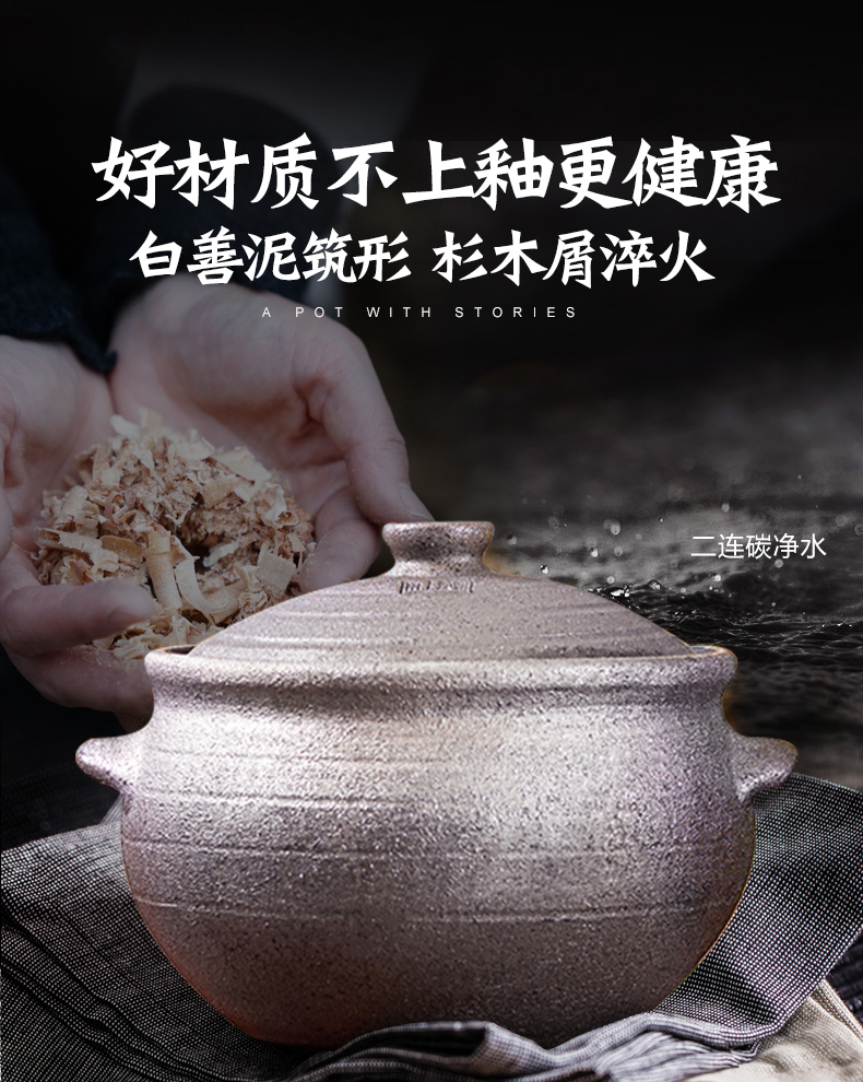 我们的砂锅是纯天然不上釉料的健康生态砂锅(釉料长时间高温下对人体有害),通过优质杉木屑淬火和人工手工反复打磨以减少粗糙感,所以成本比普通砂锅更大,但更安全健康。