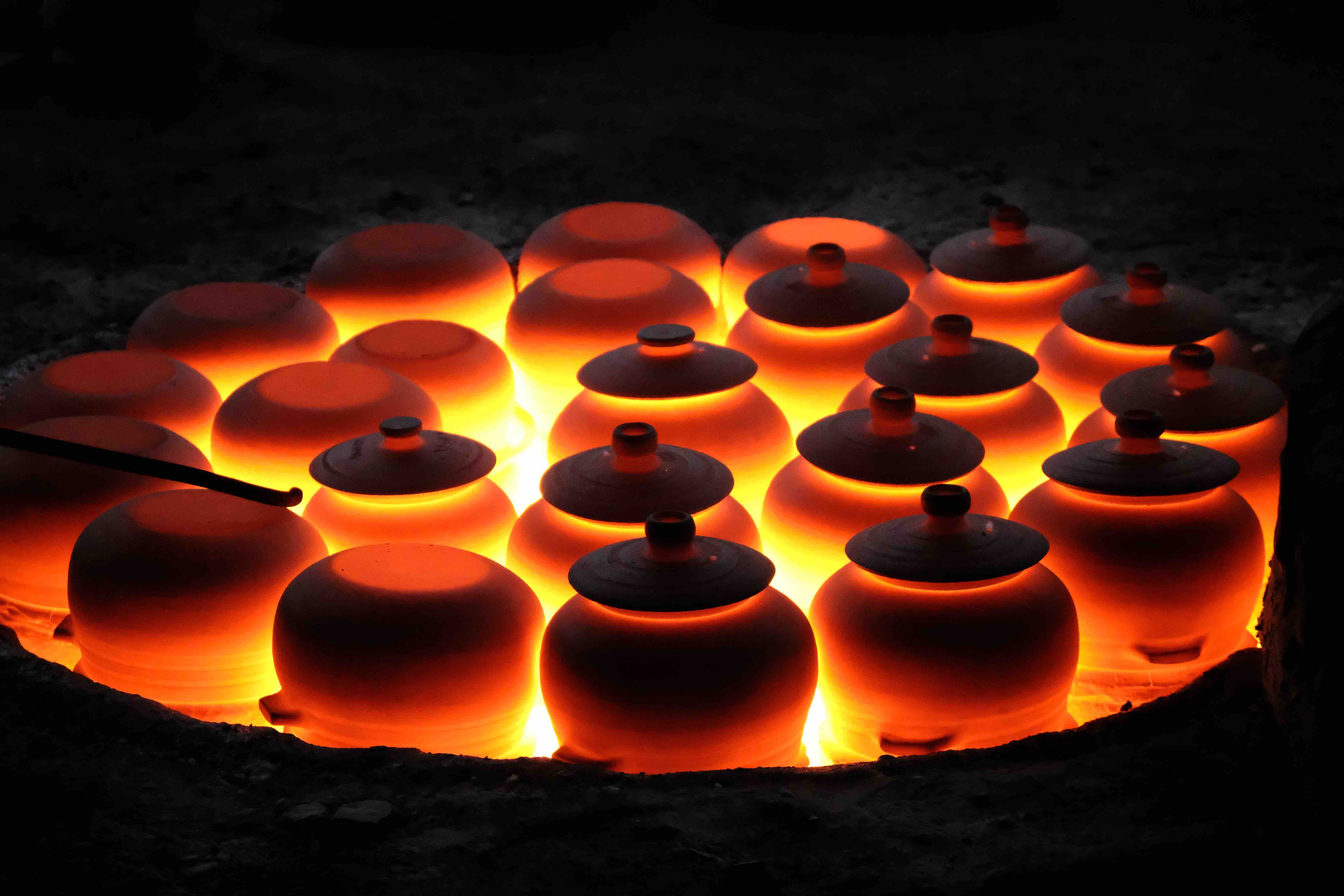 (3)砂锅不上釉,故需在馒头窑淬火两小时,期间窑内碳渣与锅体接触,可能有一些小突起、小水泡或颜色不完全均匀。