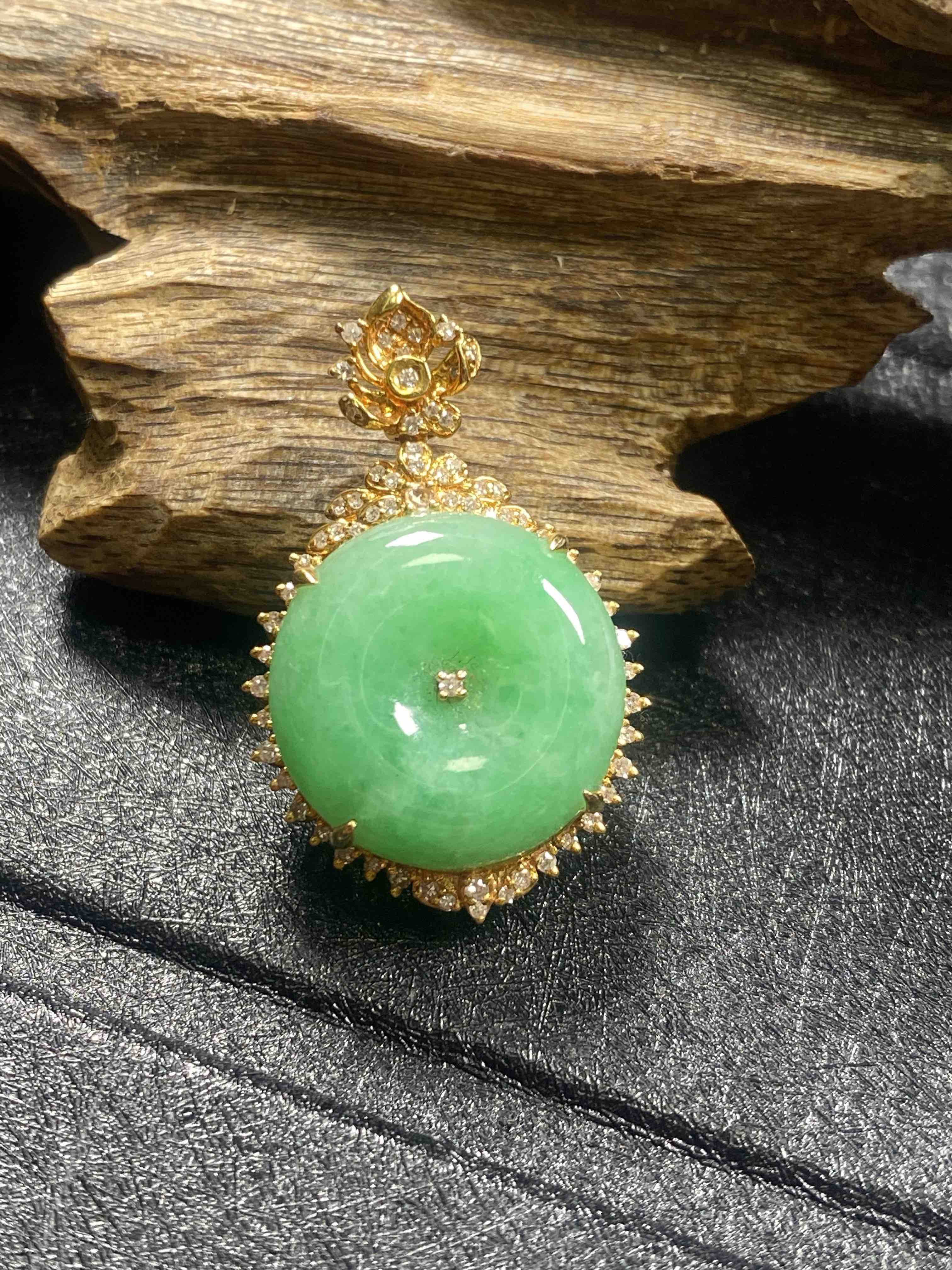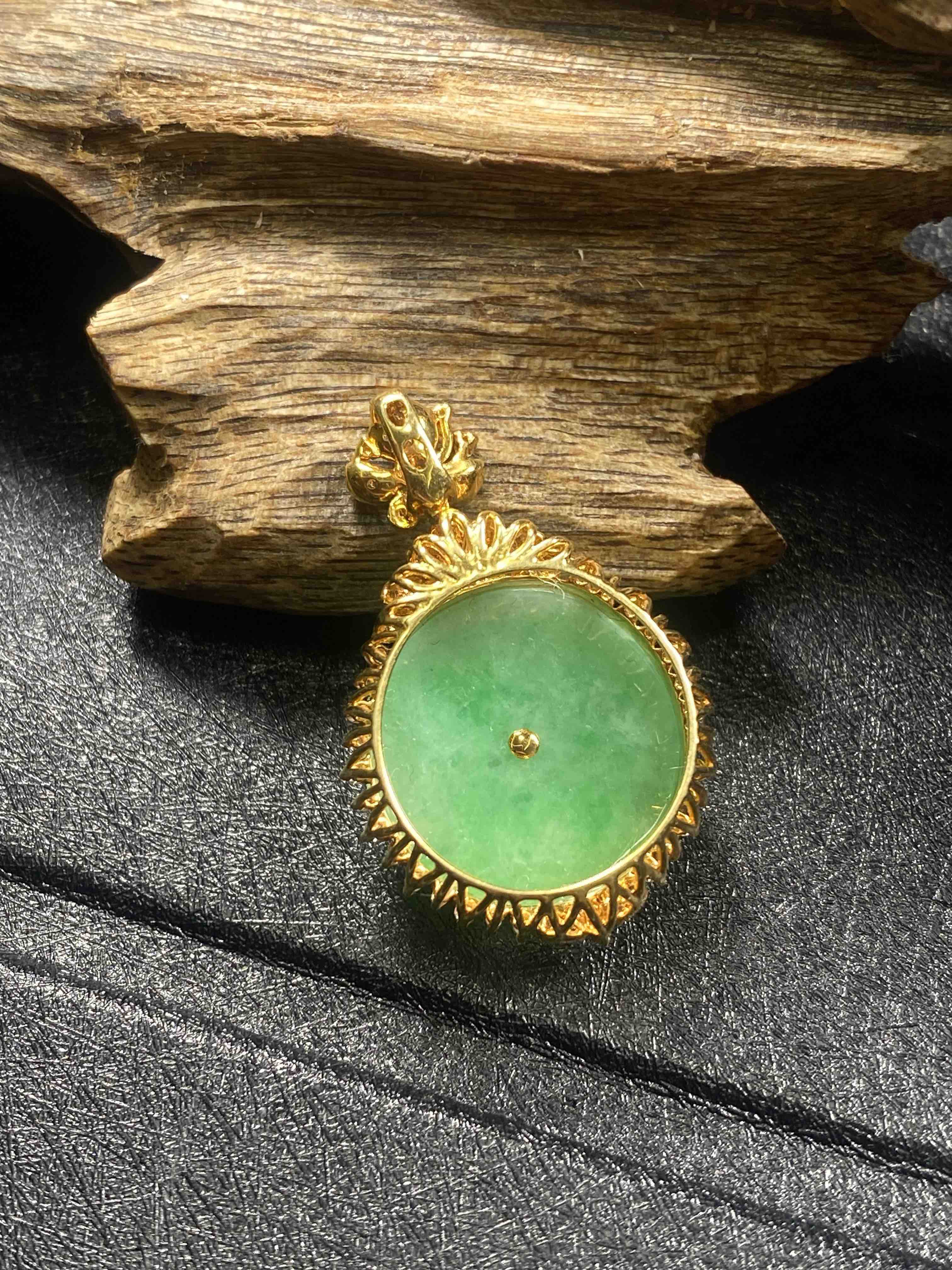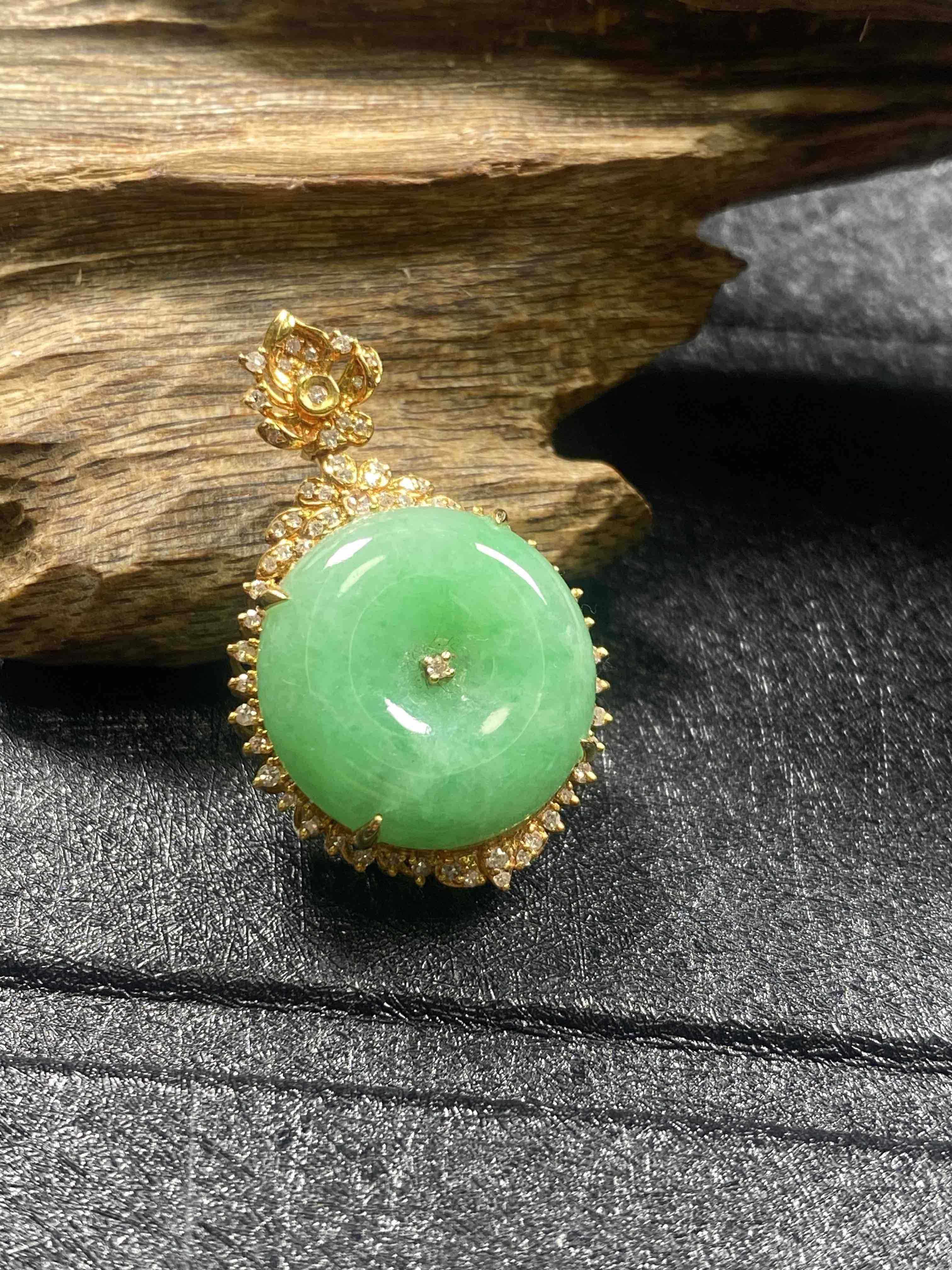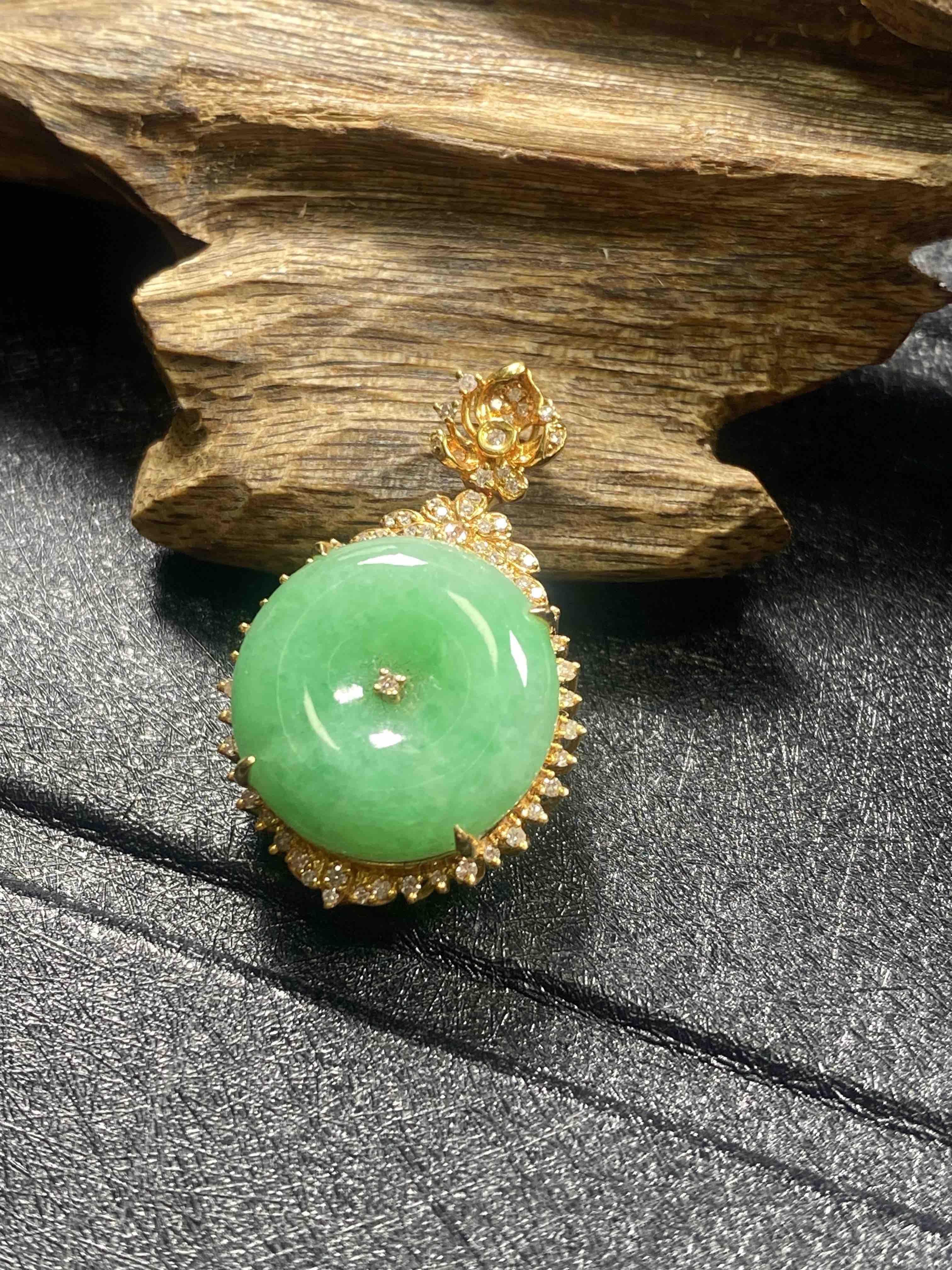 【FC0101】18K镶嵌翡翠果绿平安扣吊坠 饱满色甜 完美 款式精美 裸石尺寸:15.6*3.6mm 超值价💰5500
