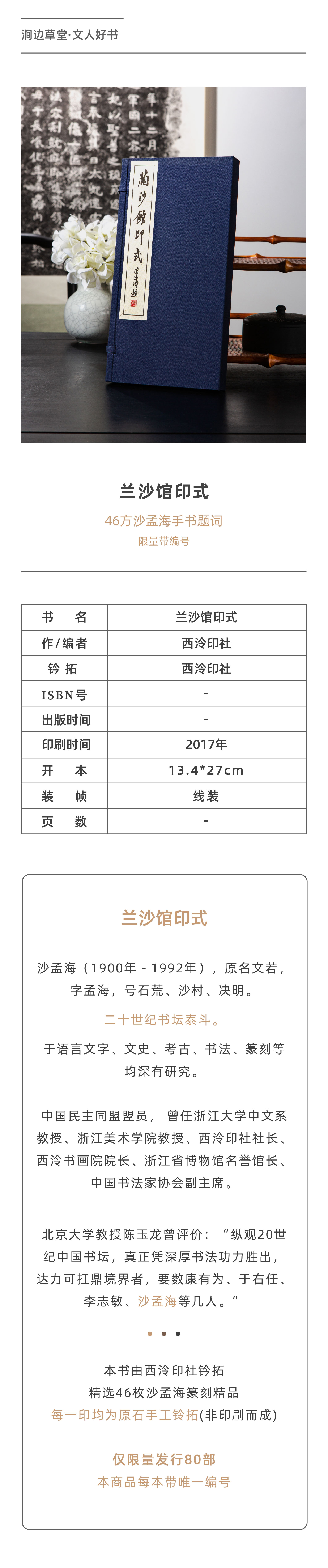 沙孟海原石钤拓印谱《兰沙馆印式》(限量80部)