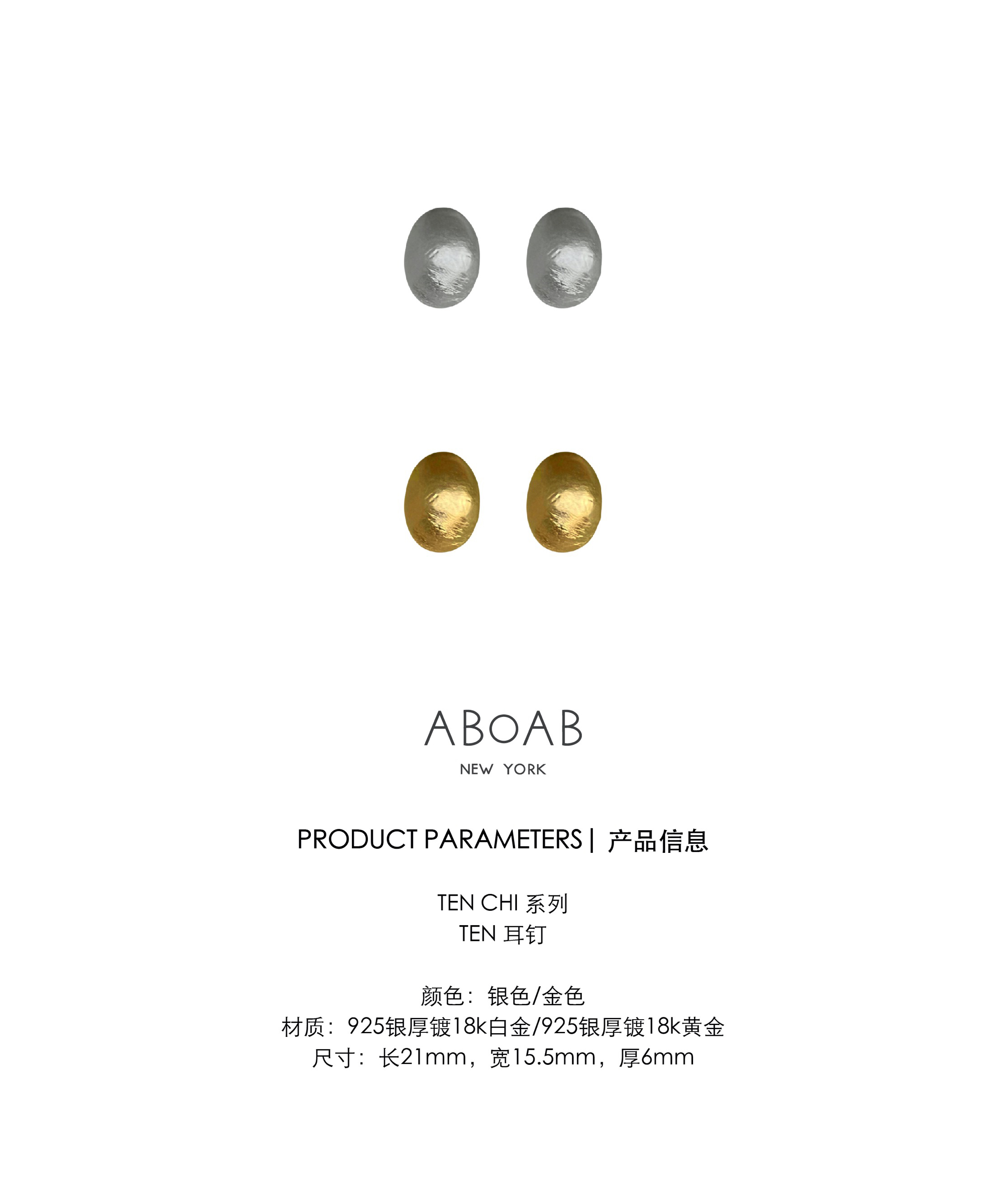 ABOAB|TEN Studs [耳钉 金 / 银 ]【TEN CHI】