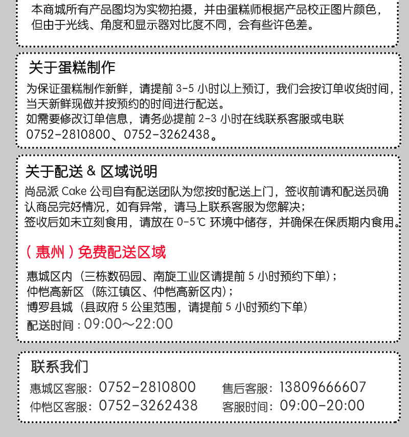 我们坚持当日接单、新鲜现做,拒绝罐头果肉与植物奶油,让每一口都保留食材本真的鲜活清甜。生活需要一点甜,我们的蛋糕不只是一份甜品,更是传递快乐的仪式感,为你带来视觉与味蕾的双重满足~