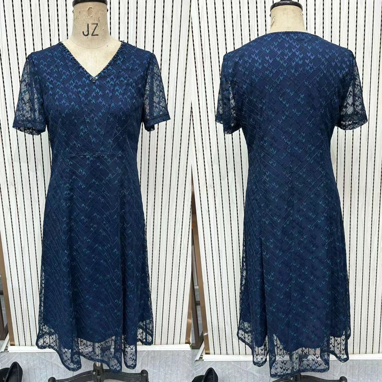 HJ1S89_绀色_连衣裙_四季_气质优雅 V 领短袖收腰显瘦百搭中长裙_高级女装_BERNIEELEN 伯妮斯茵
