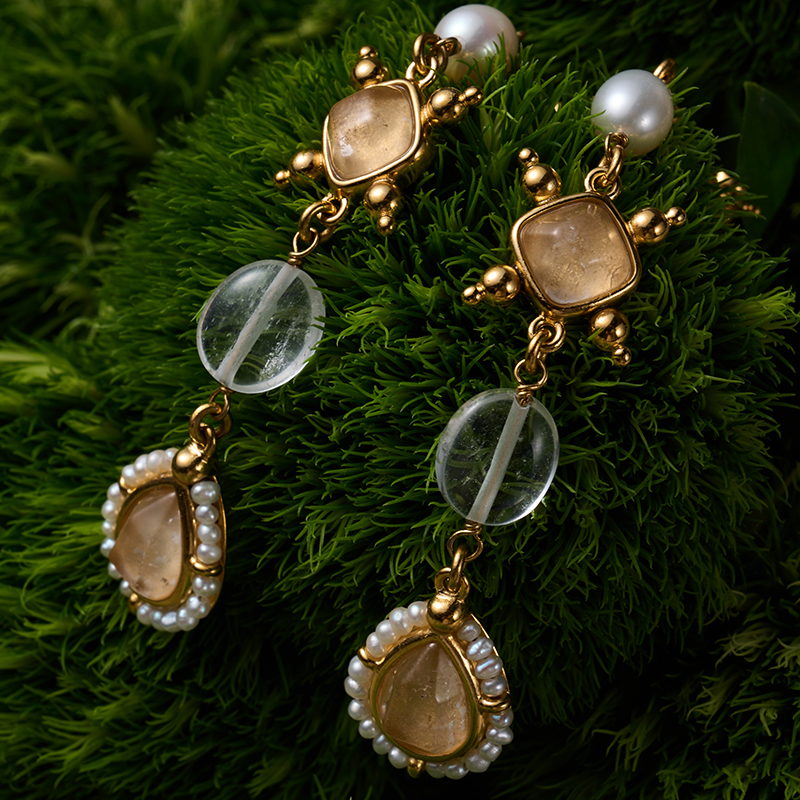 北京仓|Goossens Paris-Venise-拜占庭 水晶 珍珠 长款耳环(原色)[法国设计师]