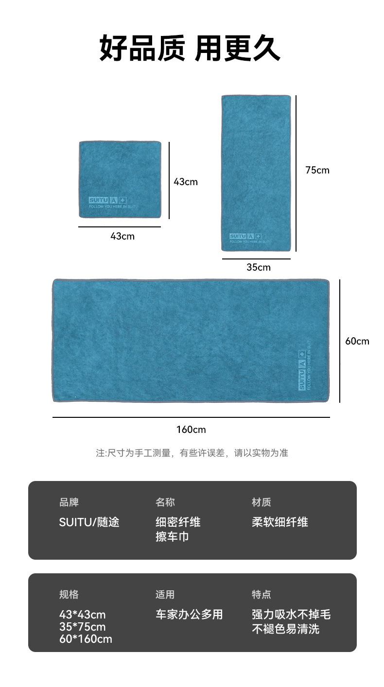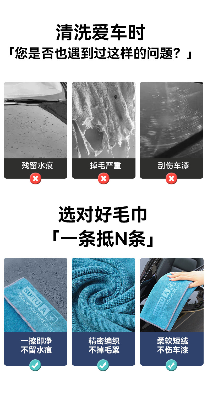 SUITU珊瑚绒洗车毛巾 加厚大号吸水珊瑚绒擦车巾双面速干汽车清洁洗车毛巾
