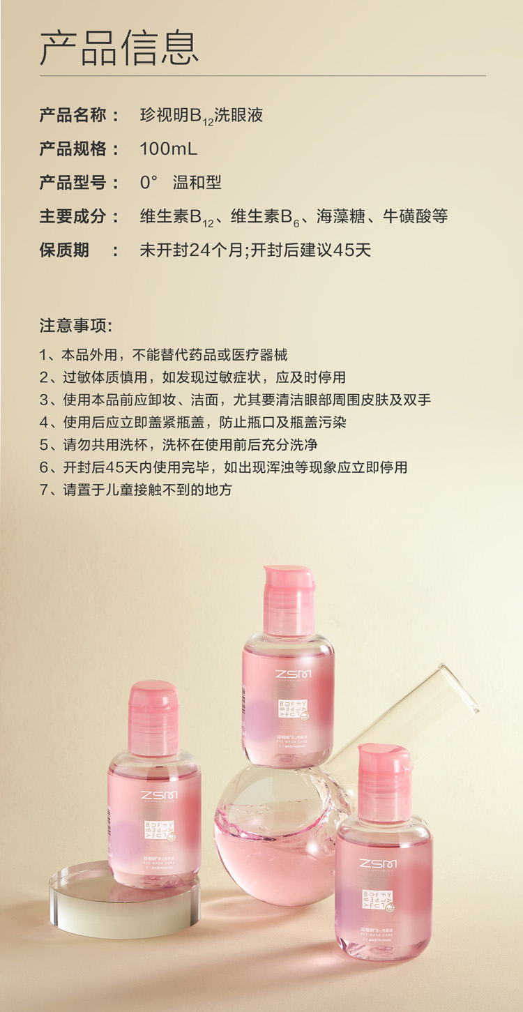 珍视明B12清洗眼睛水温和型洗眼液洗眼神器100ml 500ml