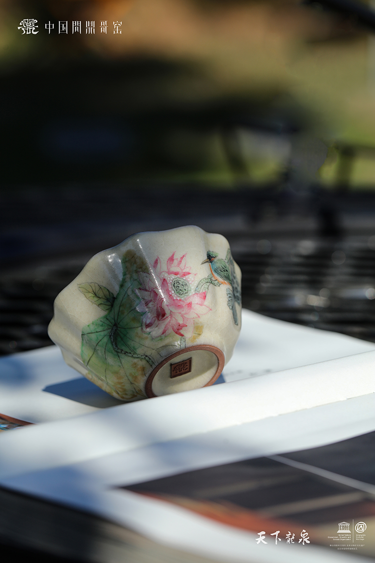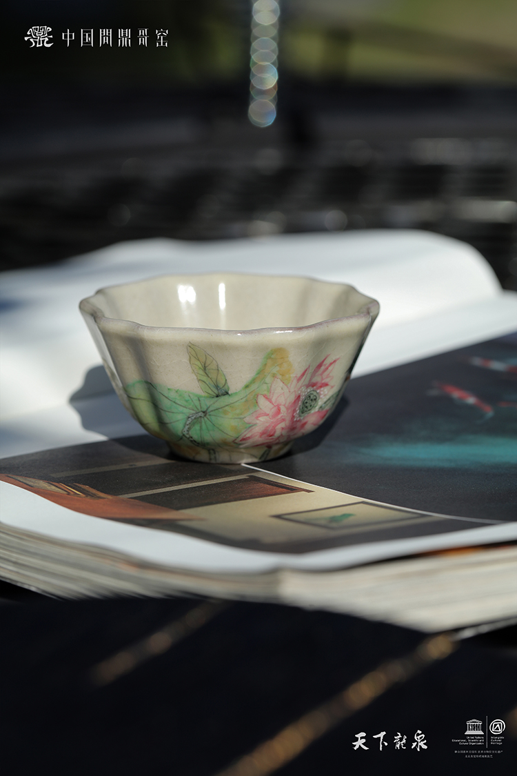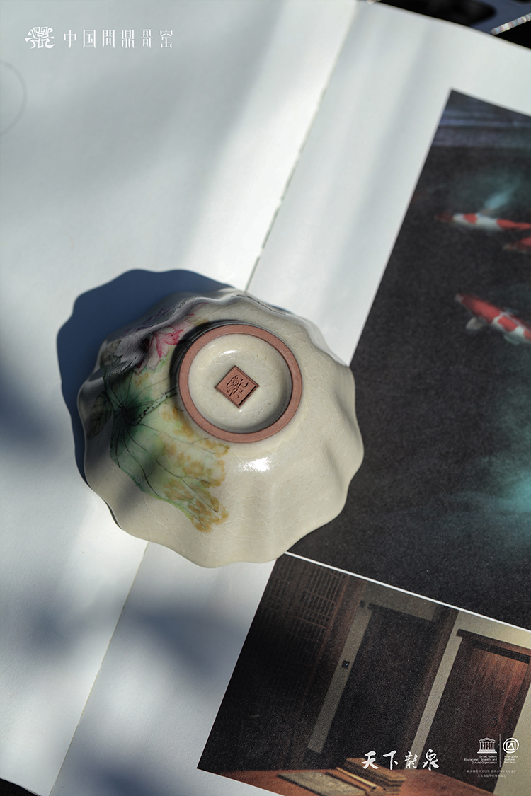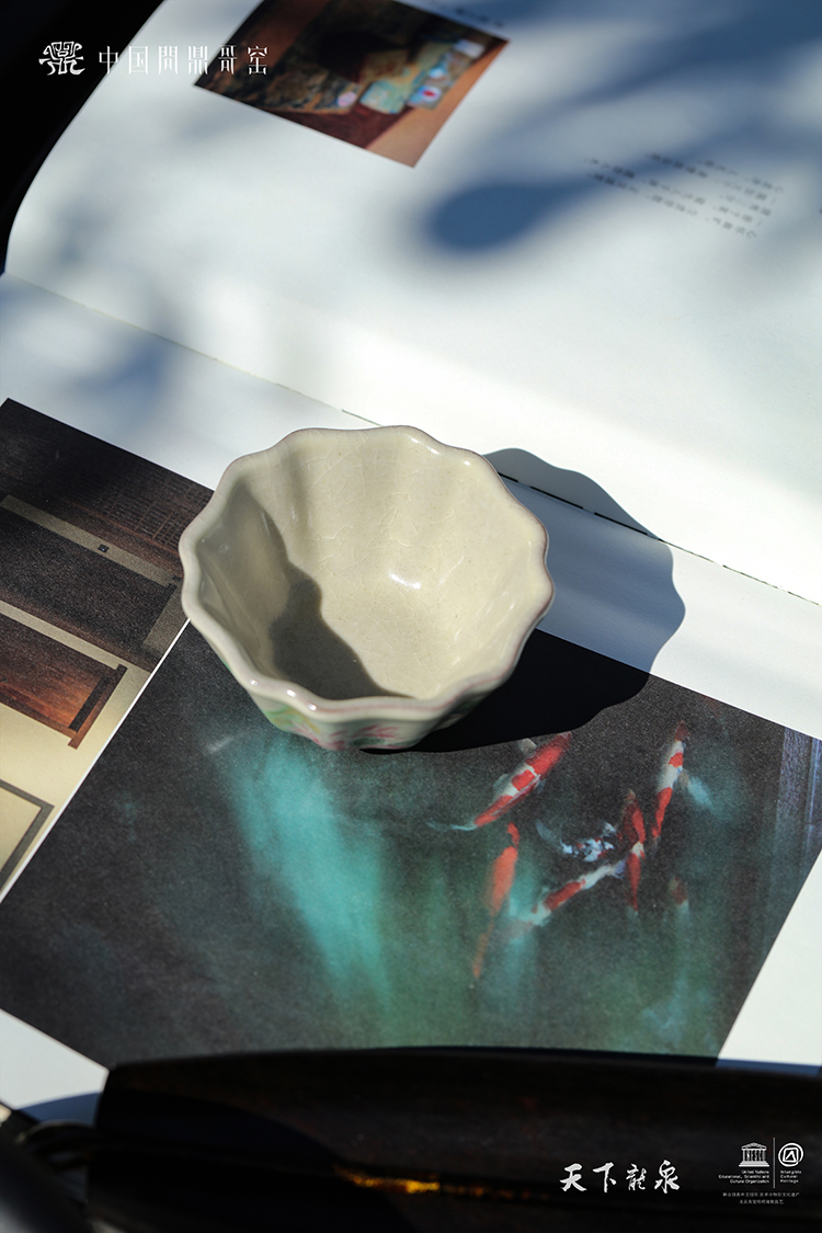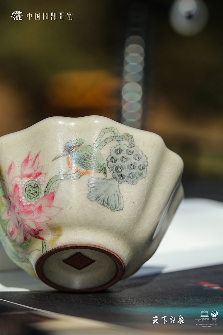 问鼎哥窑碎玉祥瑞杯(翠莲鸟鸣)