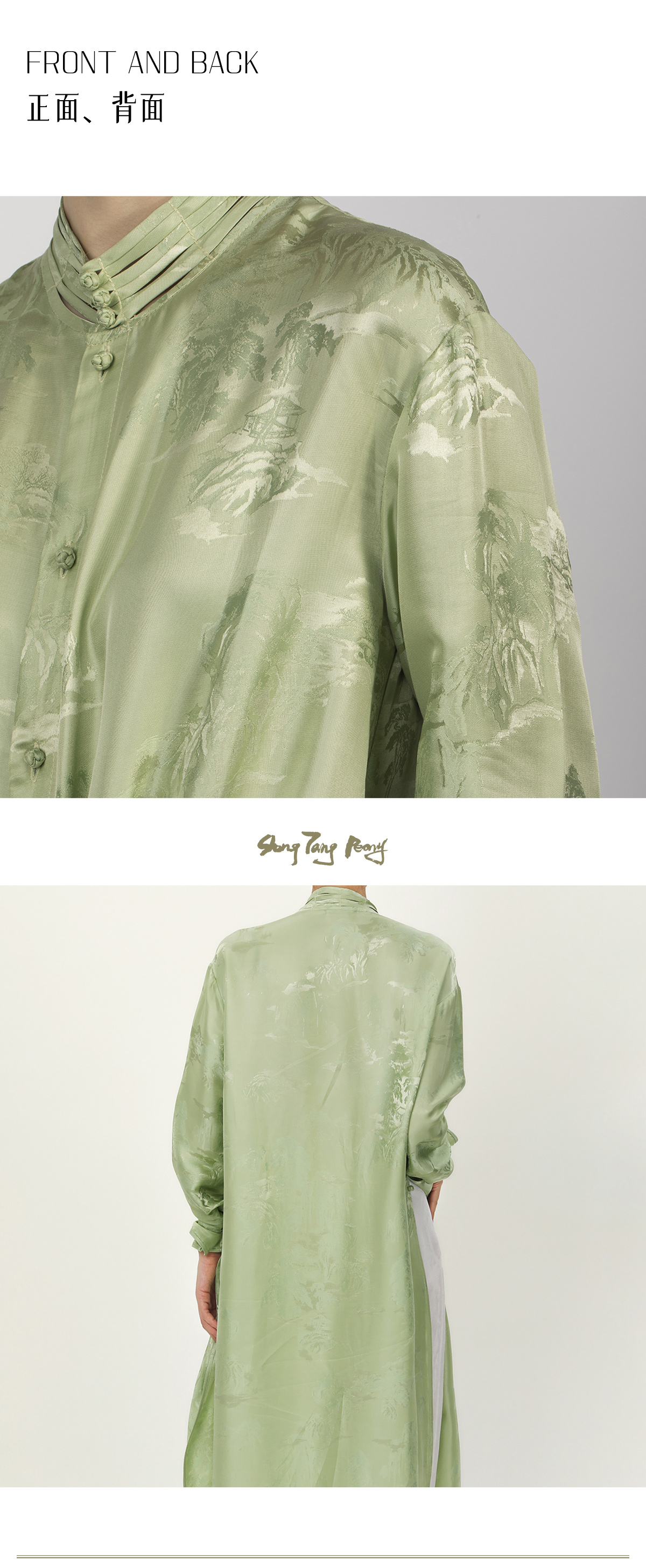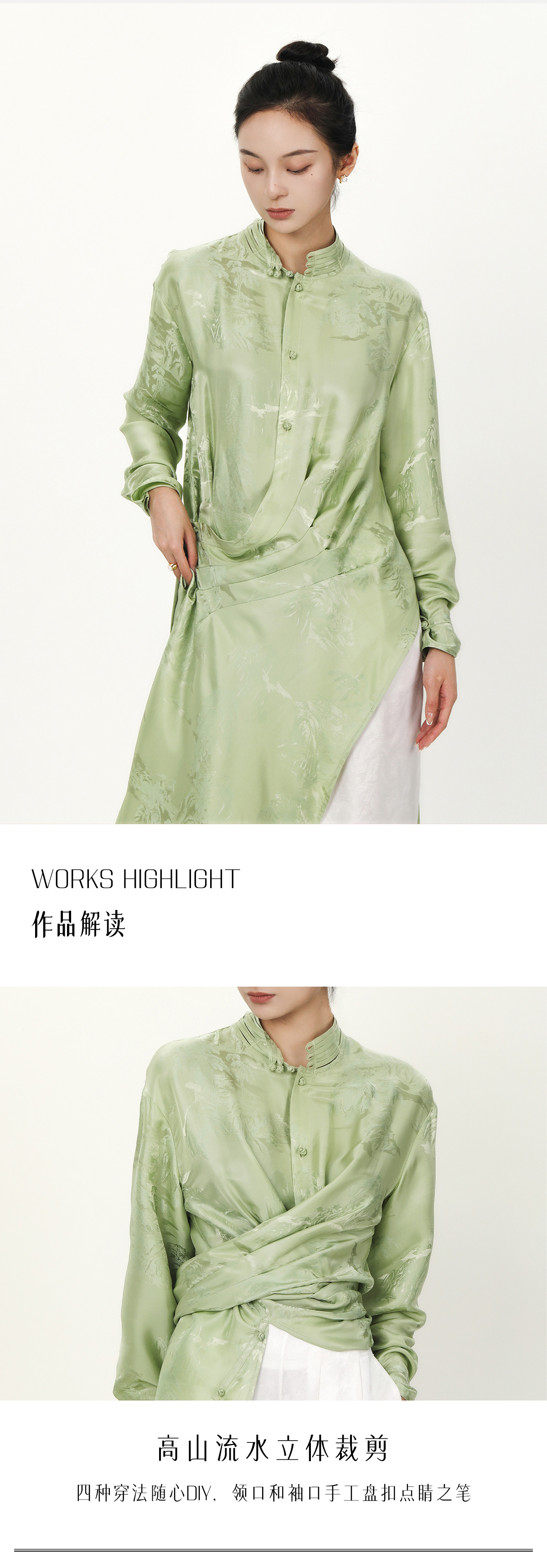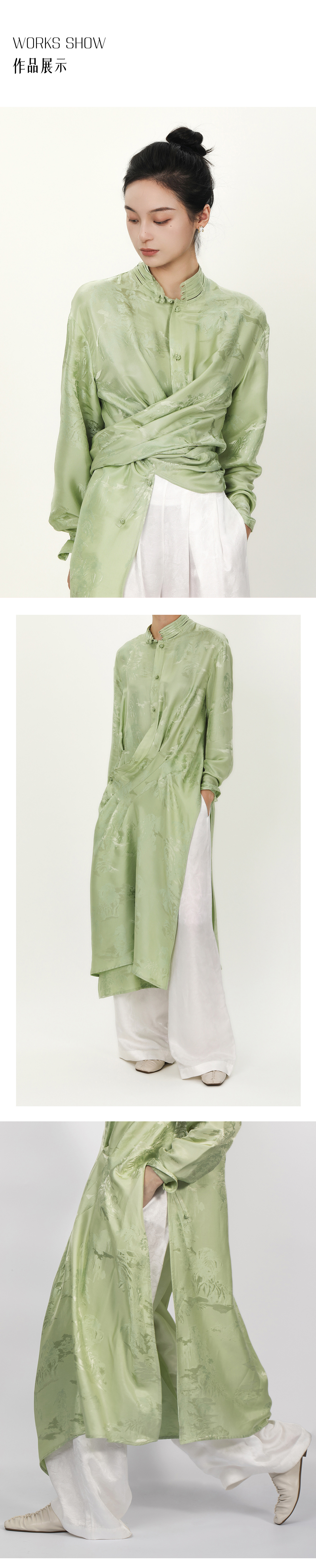 盛唐牡丹 |立体剪裁冷淡绿长款衬衫连衣裙