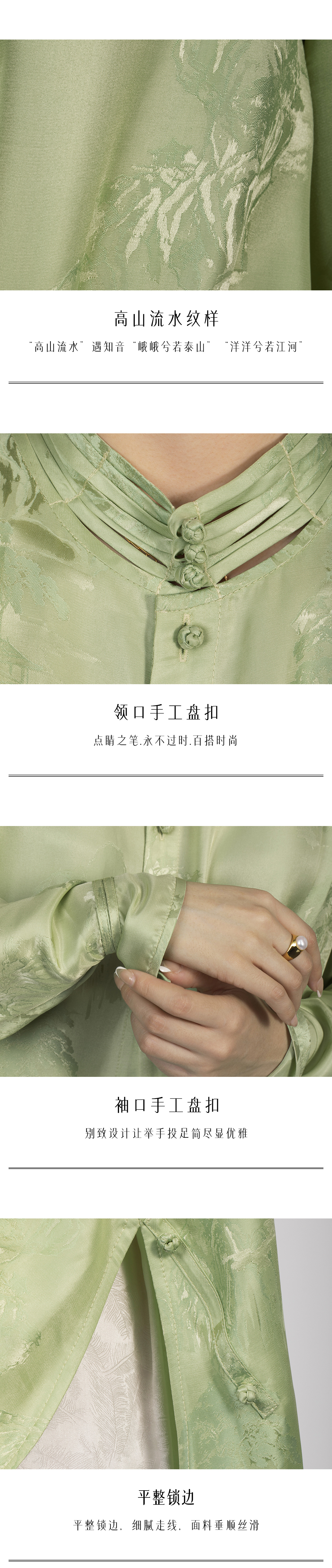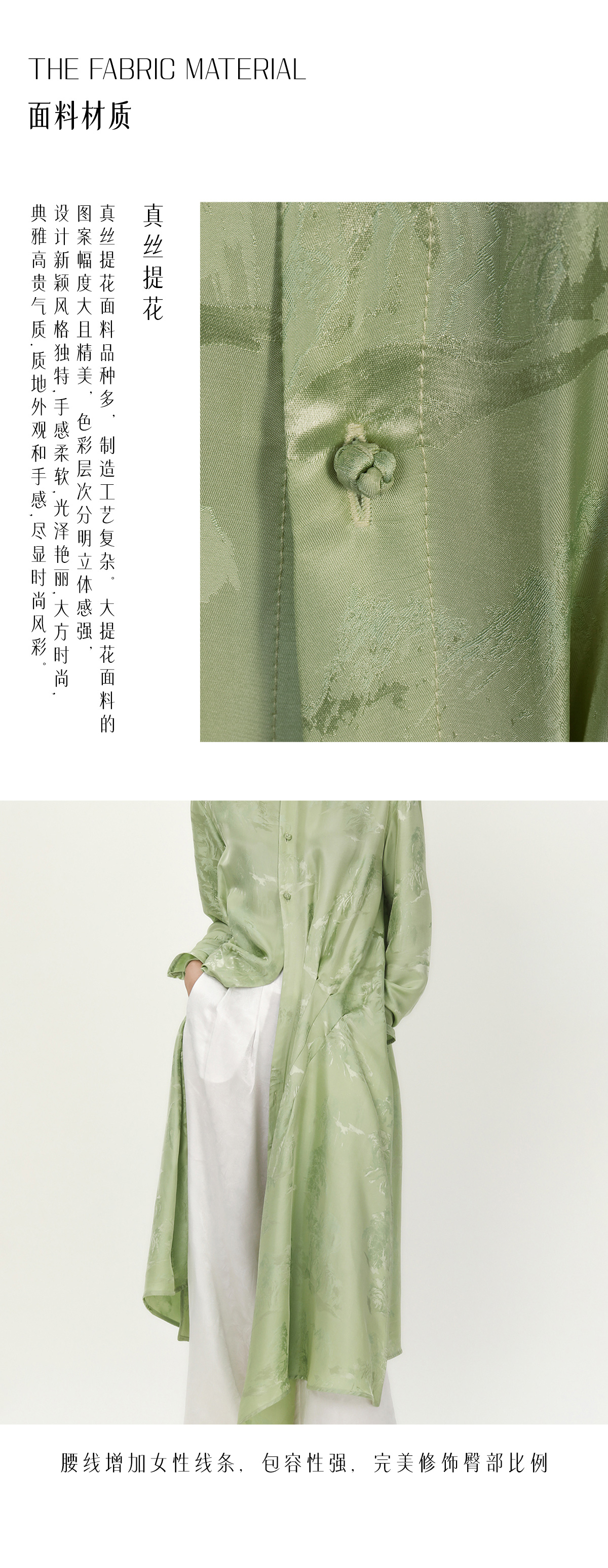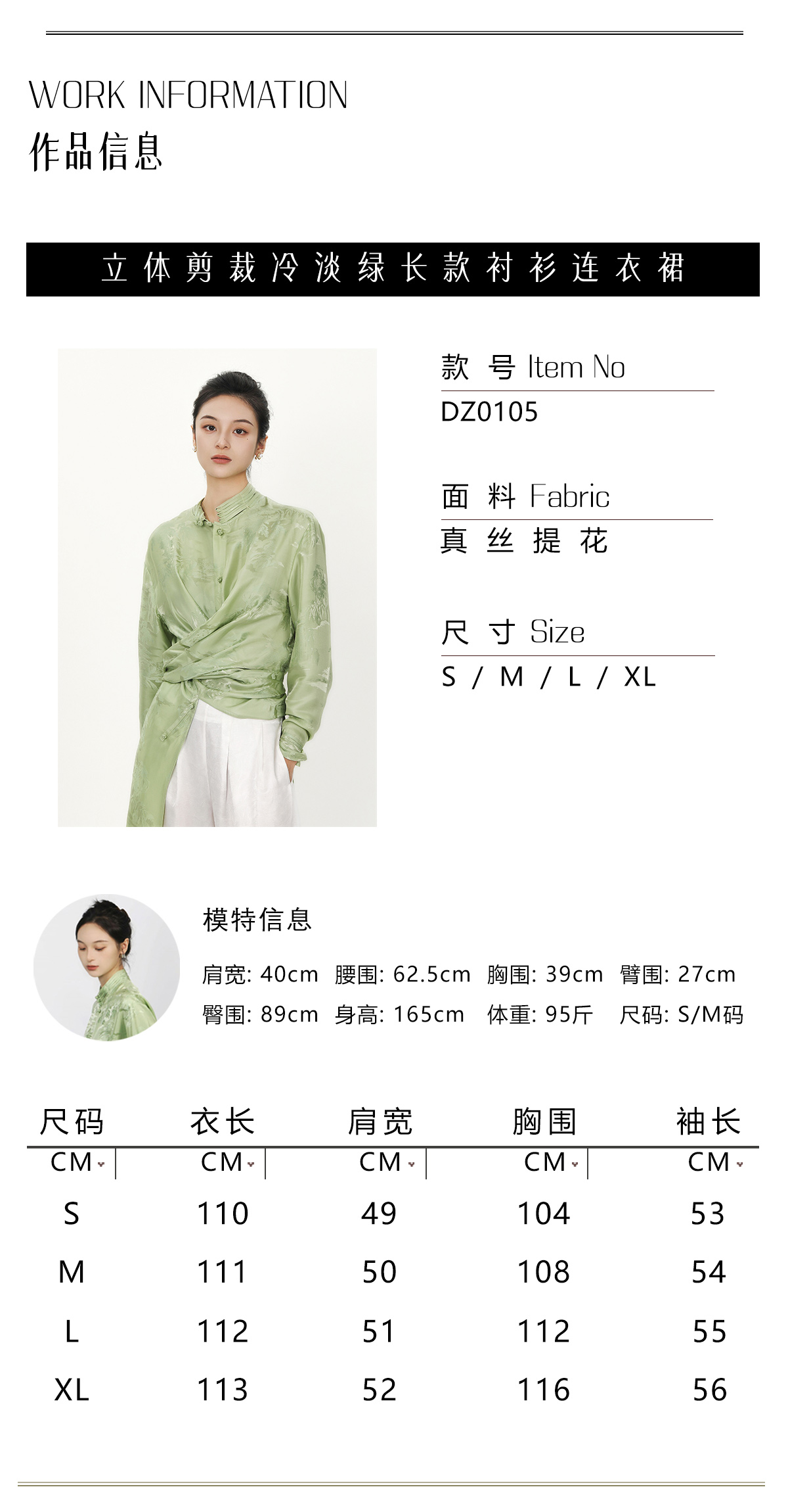 盛唐牡丹 |立体剪裁冷淡绿长款衬衫连衣裙