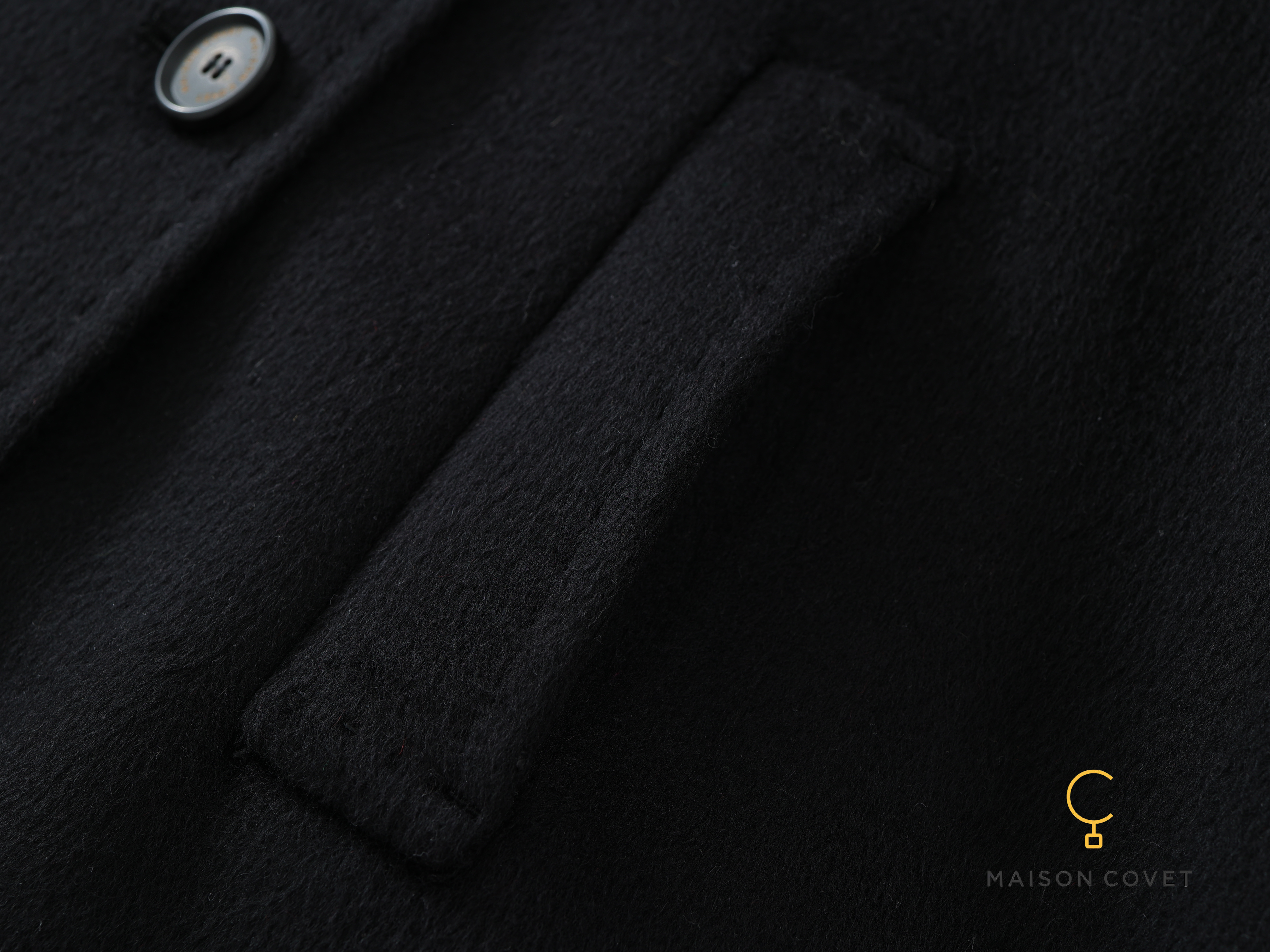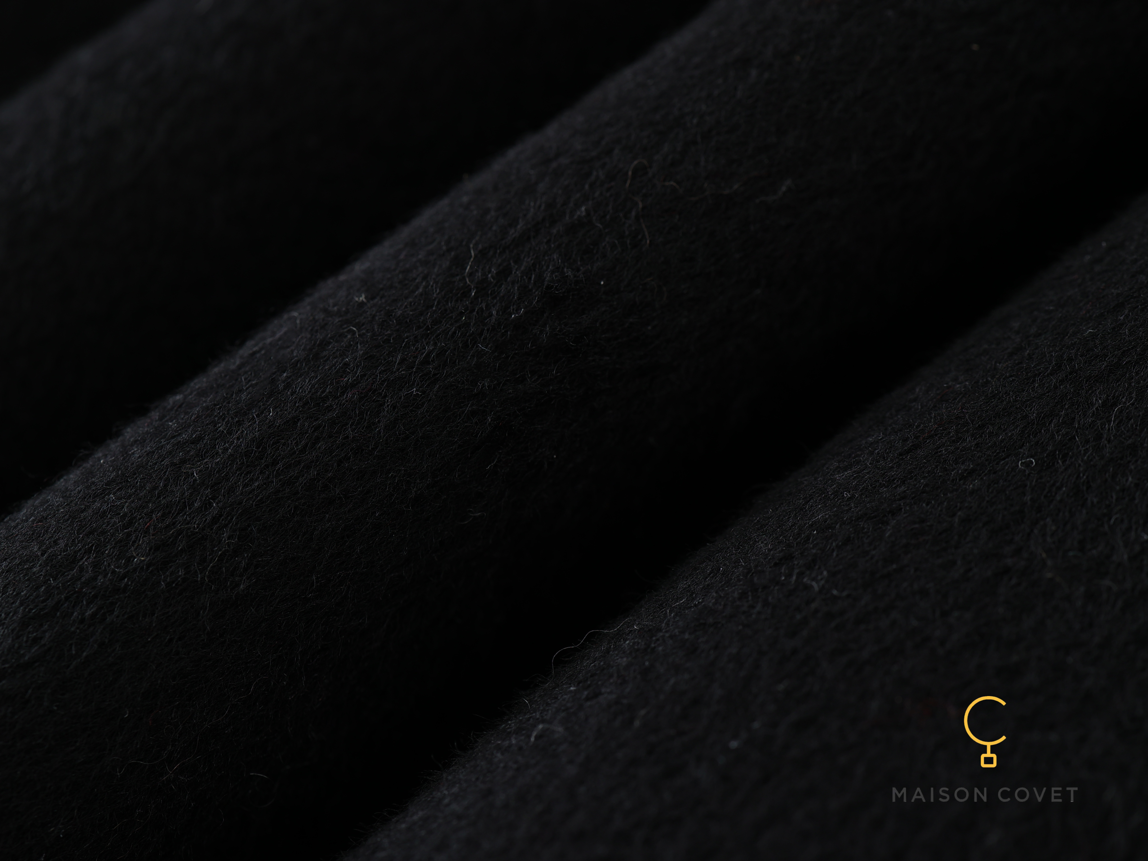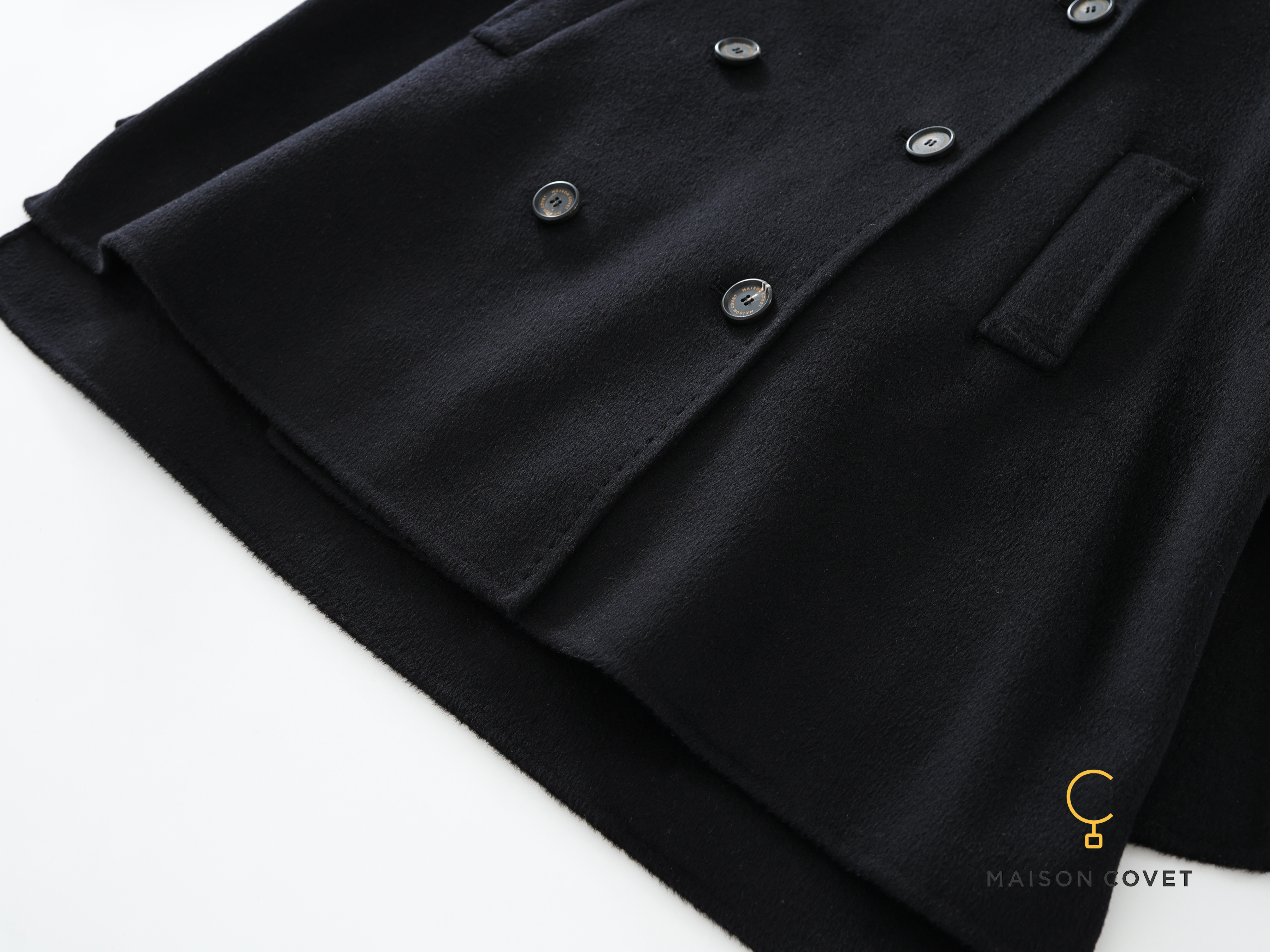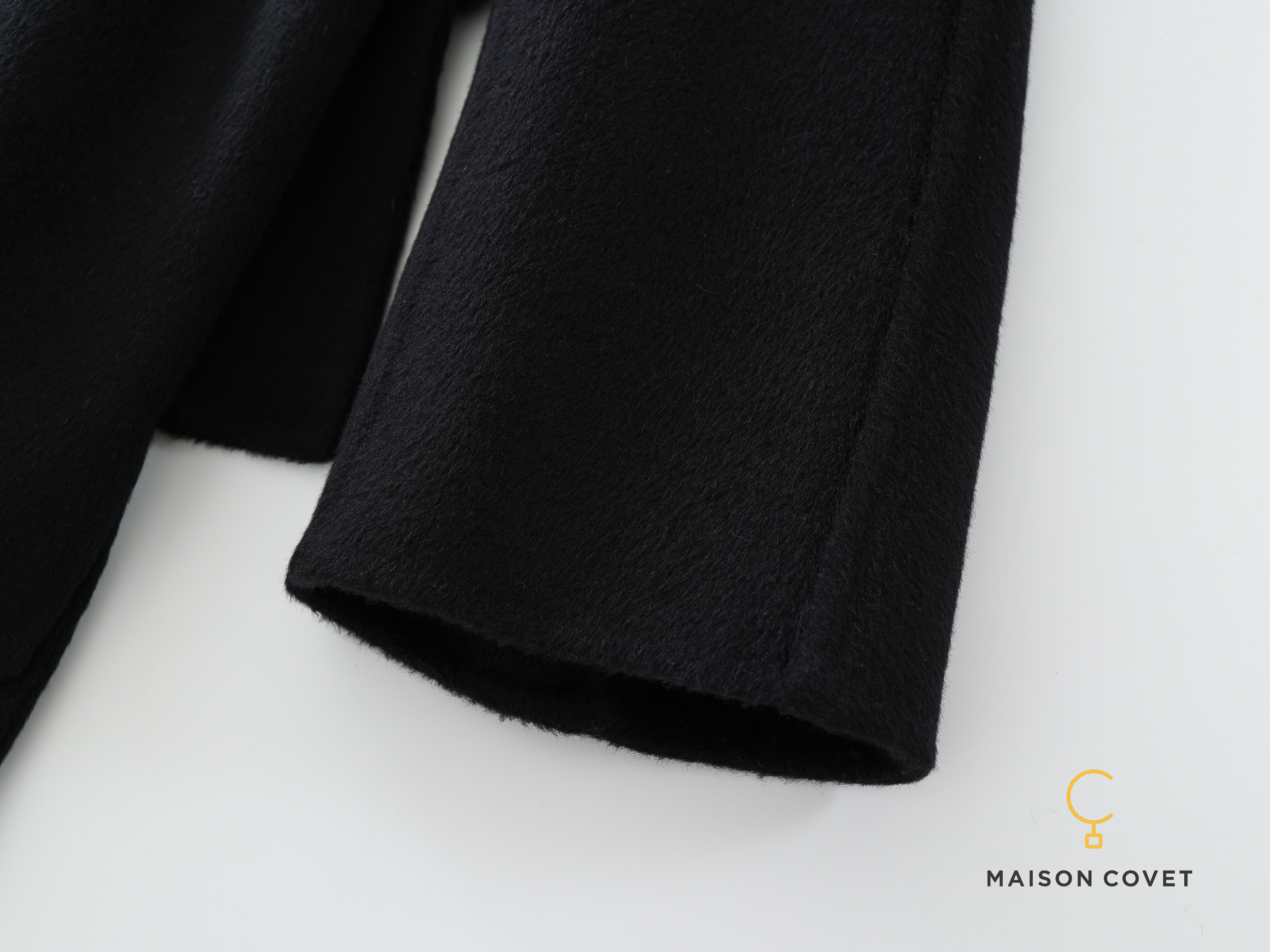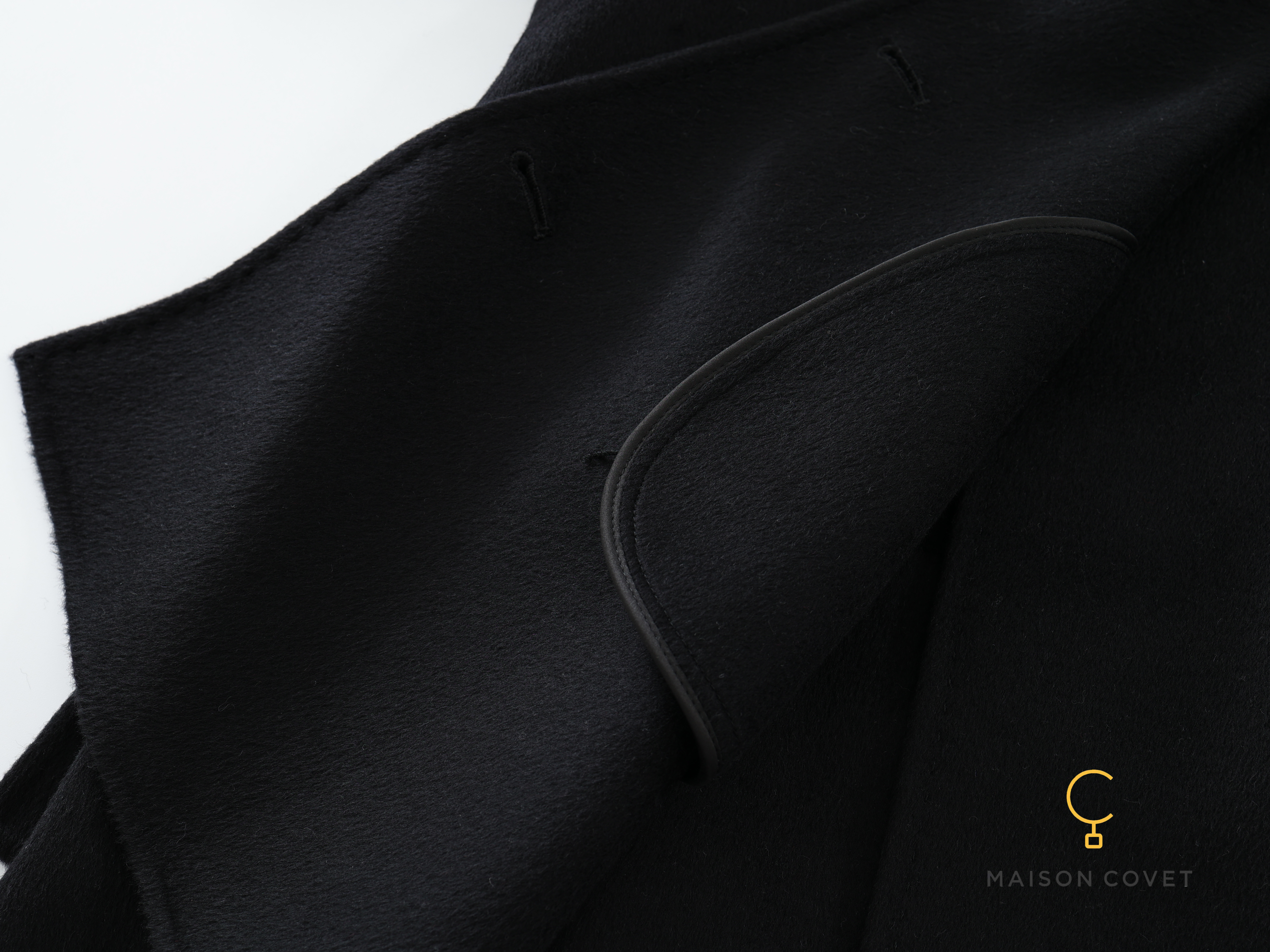这款大衣采用柔软包裹的纯山羊绒针织面料制成