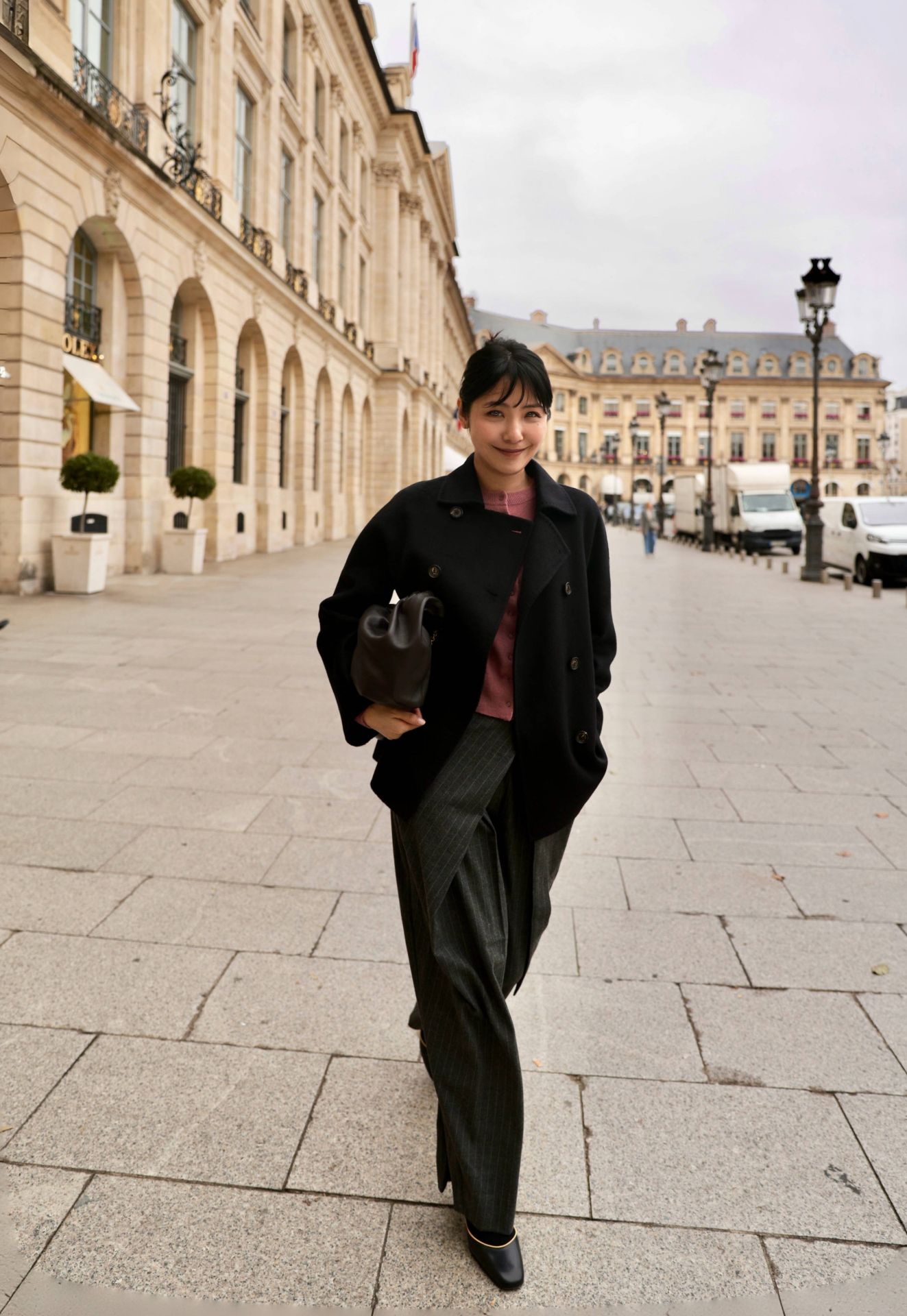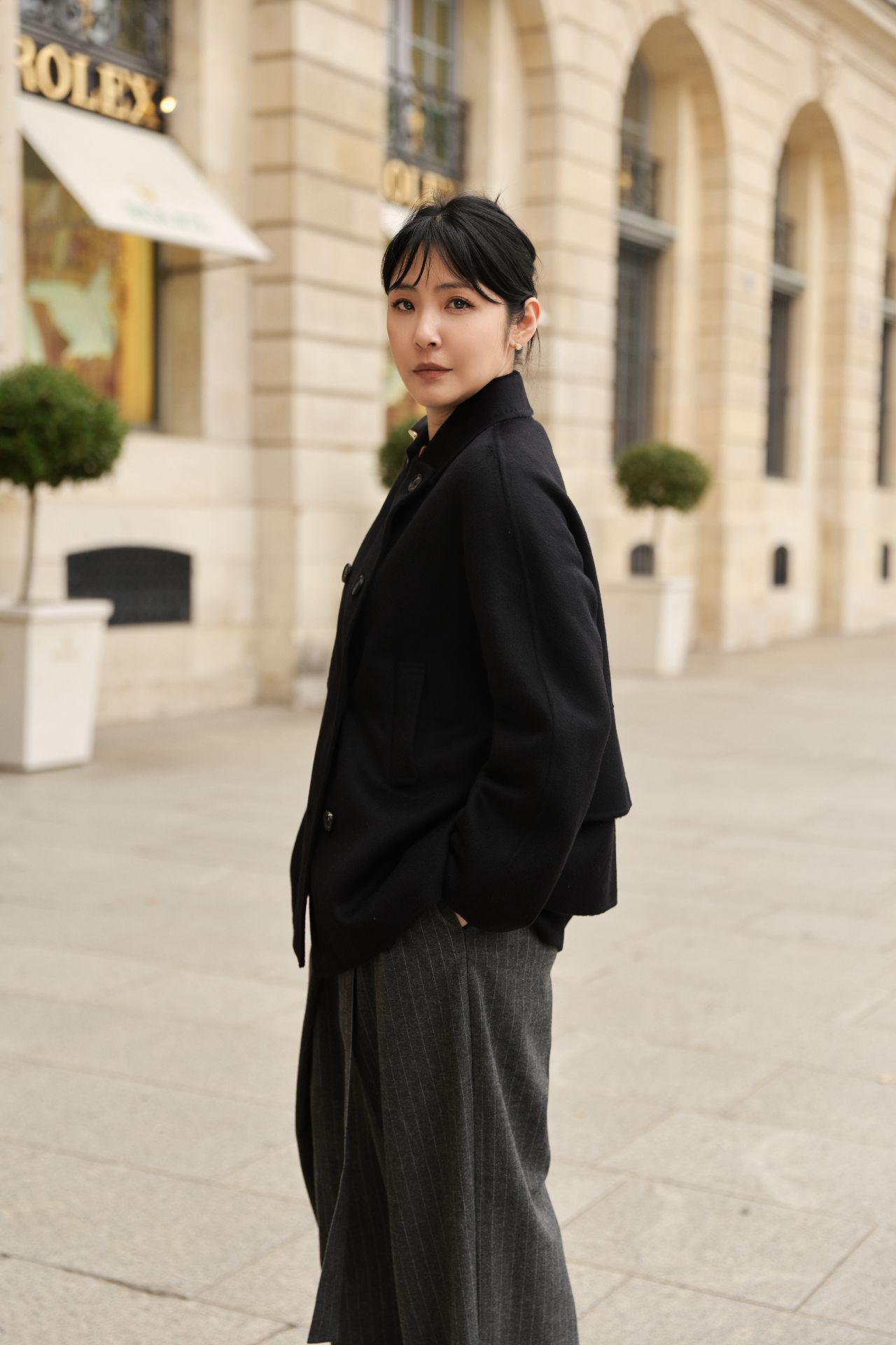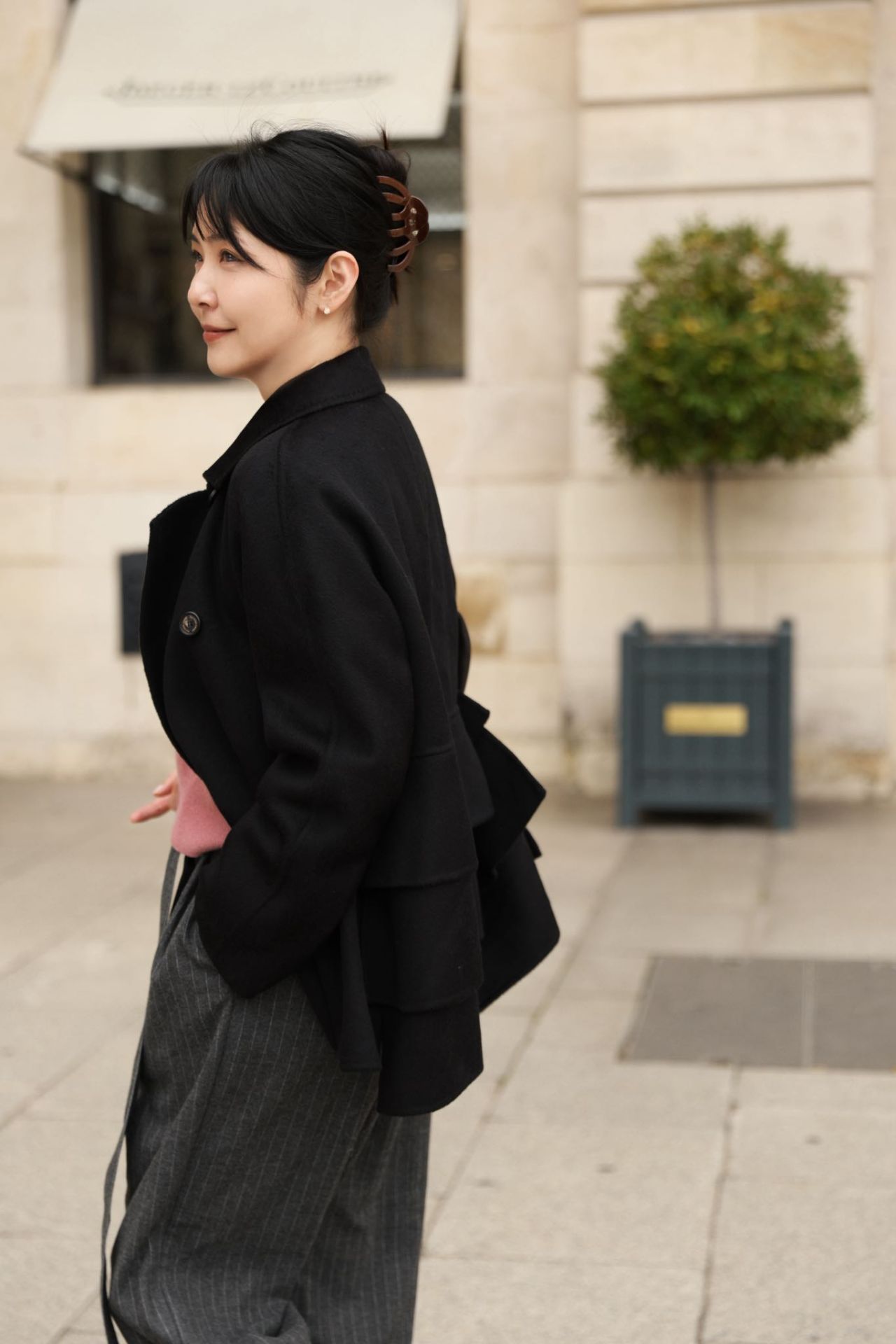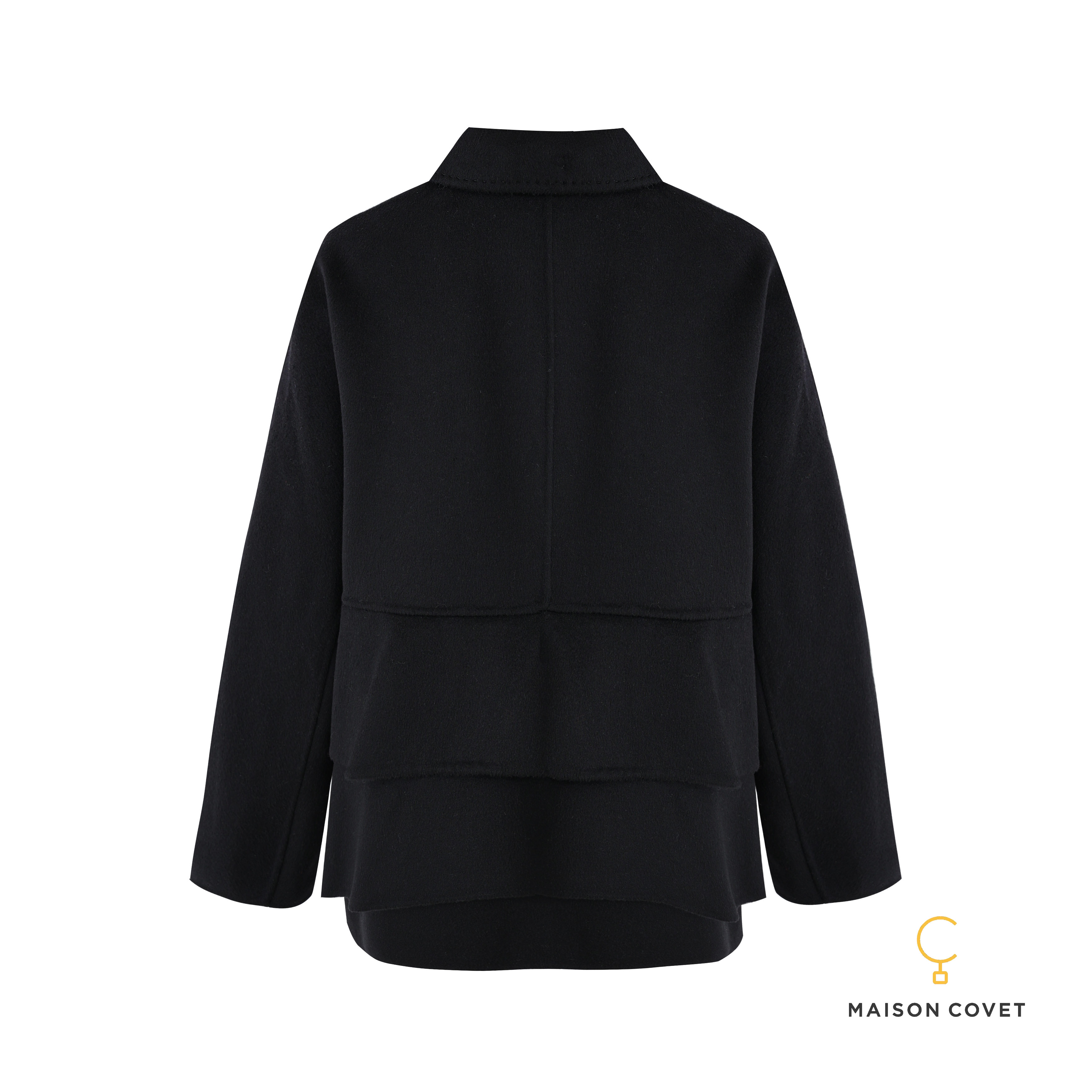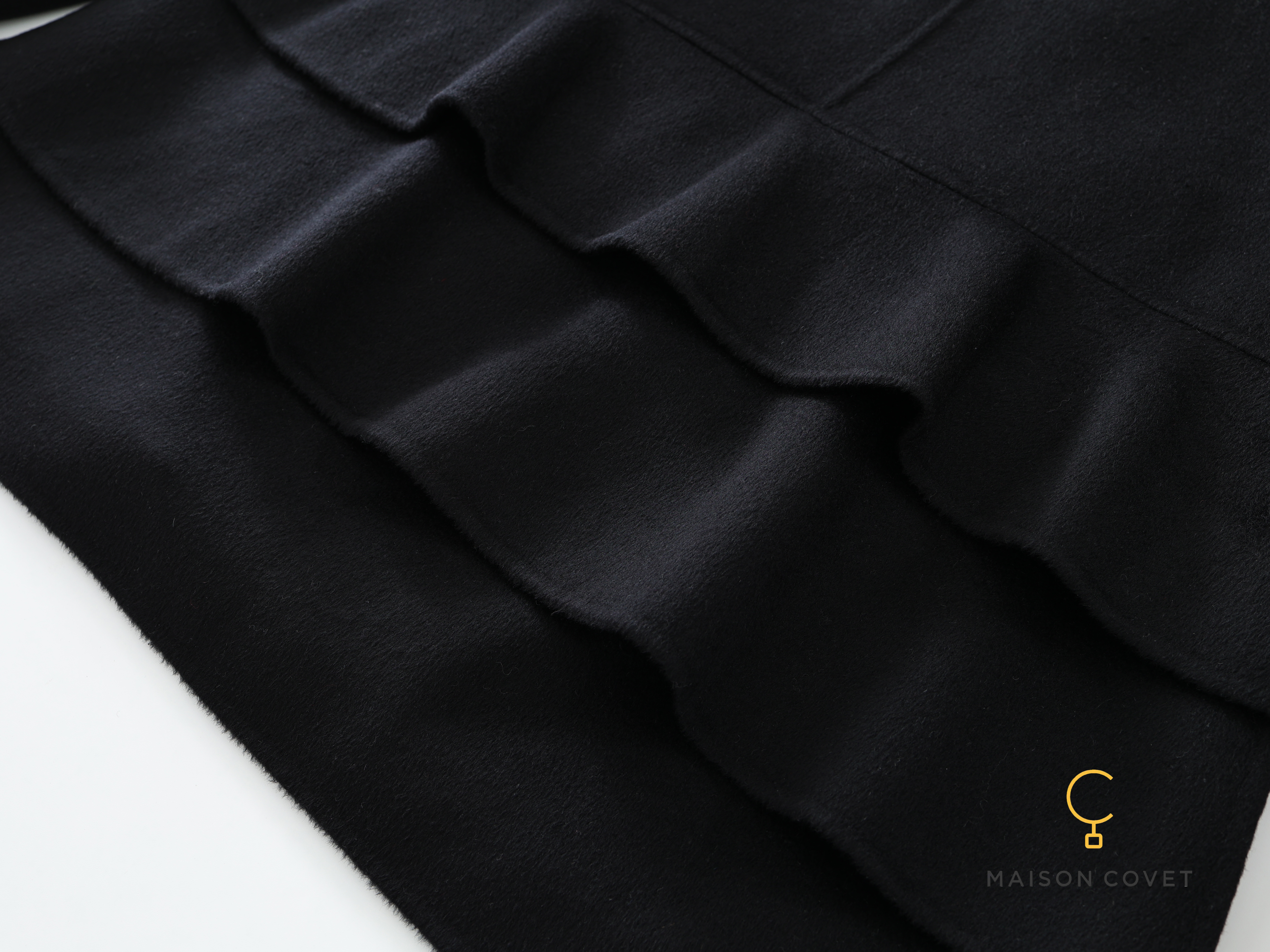 这款大衣采用柔软包裹的纯山羊绒针织面料制成