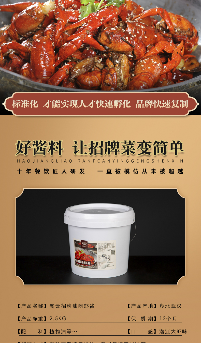 餐云招牌油焖大虾(蟹)酱 正宗十年潜江油焖大虾配方沉淀 油焖大虾油焖蟹油焖小海鲜等产品创新推荐