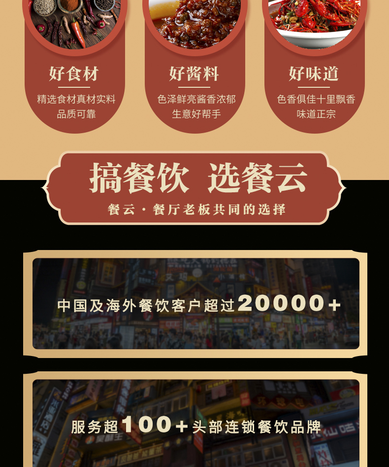餐云标准化酱料为餐饮节约厨房人工成本30%,无厨师经验从业者通过标准化流程亦可操作,30名国内中餐大厨专家365天持续研发创新!