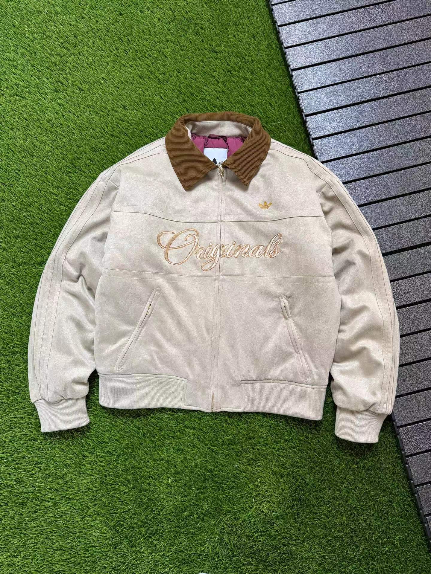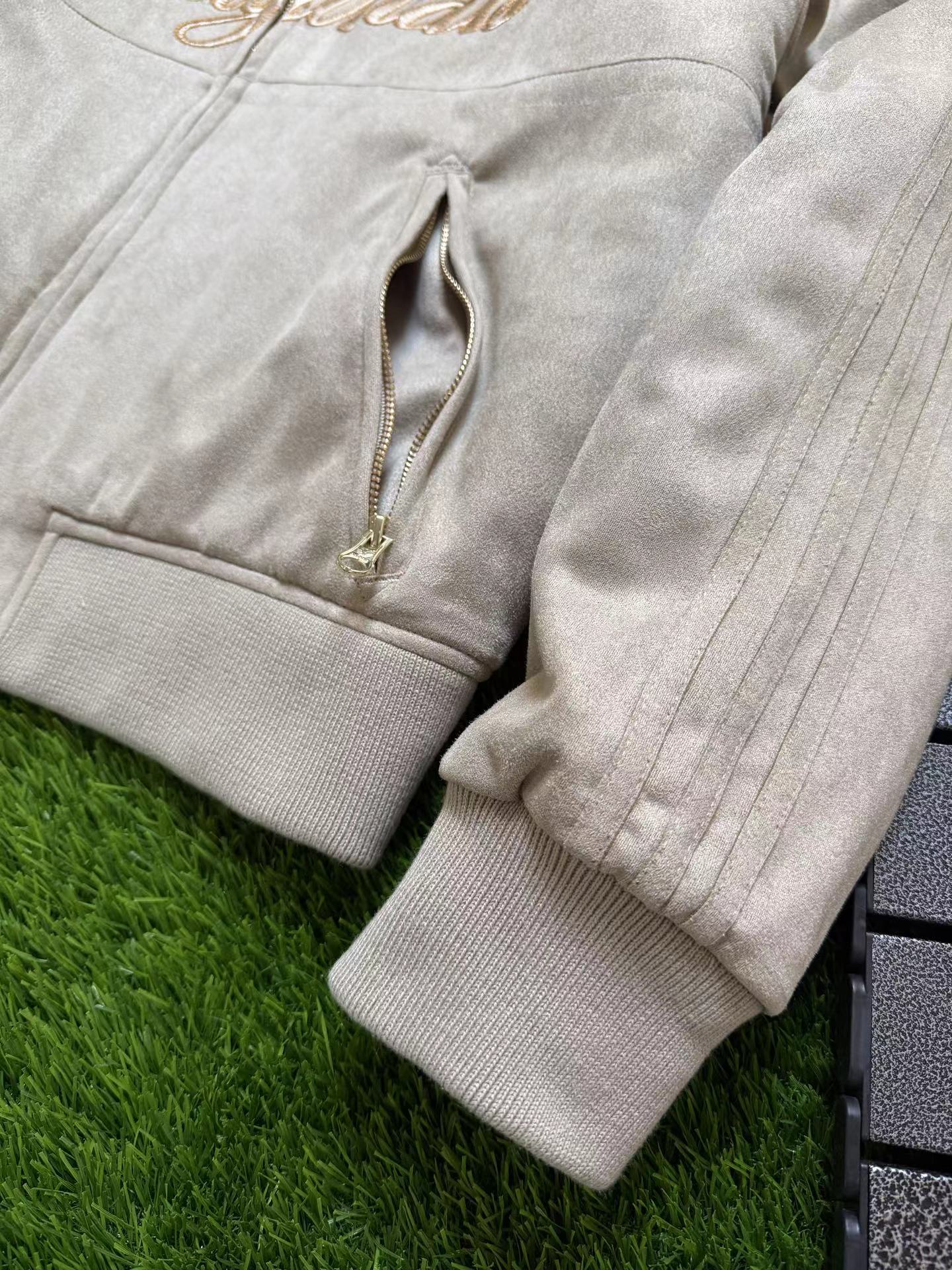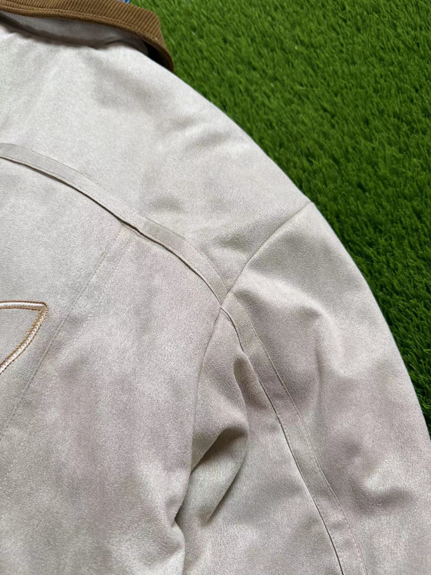 复古麂皮刺绣logo棒球服薄棉服,复古与质感兼备。高密麂皮绒面料软糯亲肤、防水防污,内里定点锁棉不跑绒,保暖又透气。灯芯绒翻领、定制五金拉链、高弹罗纹收口,细节jin致。胸前与背部万针刺绣立体有型,落肩宽松版型不挑身材。复古货物褐配色,搭配三道杠与大Logo,美式街头感拉满,冬日保暖与穿搭一步到位。