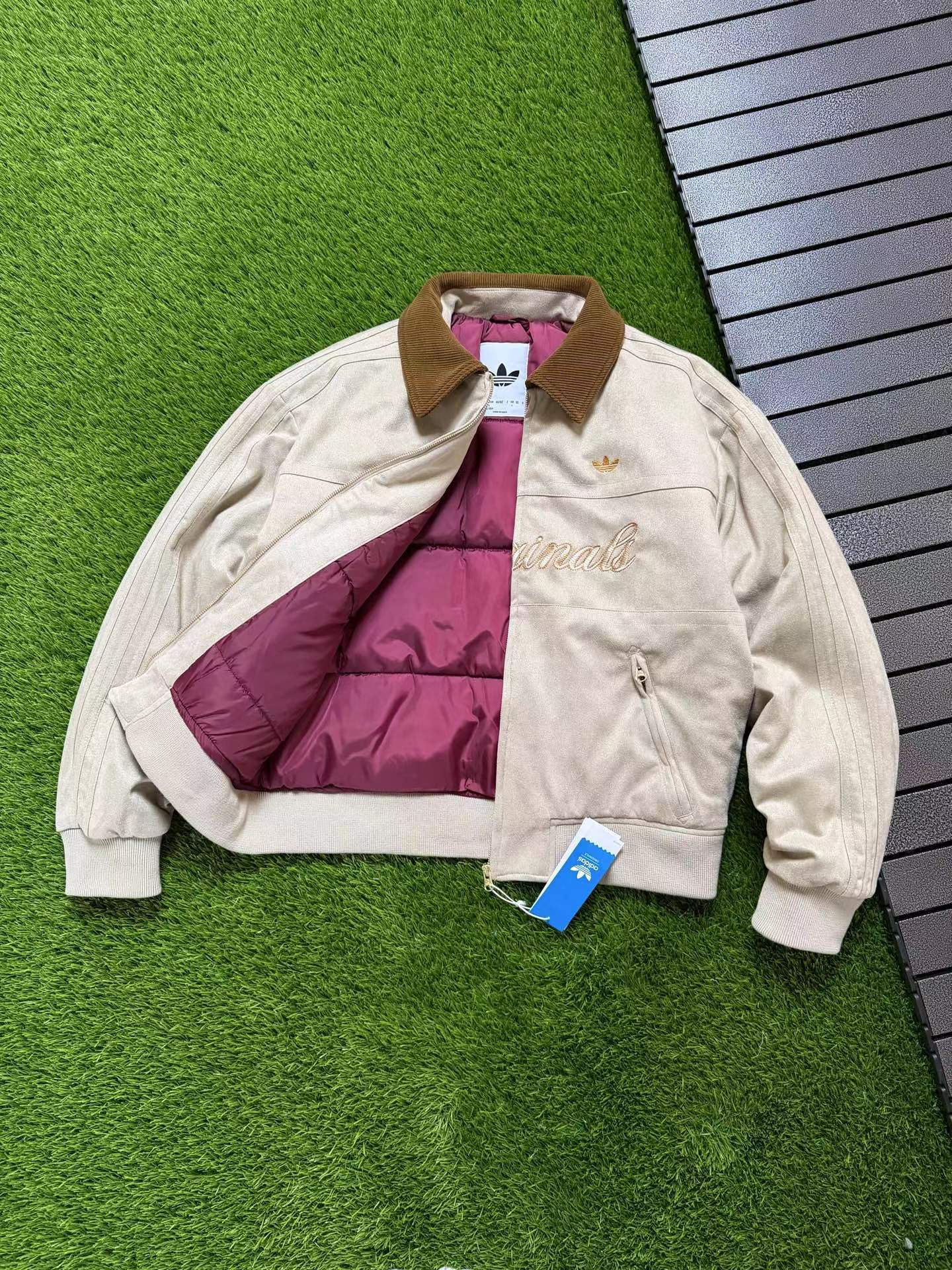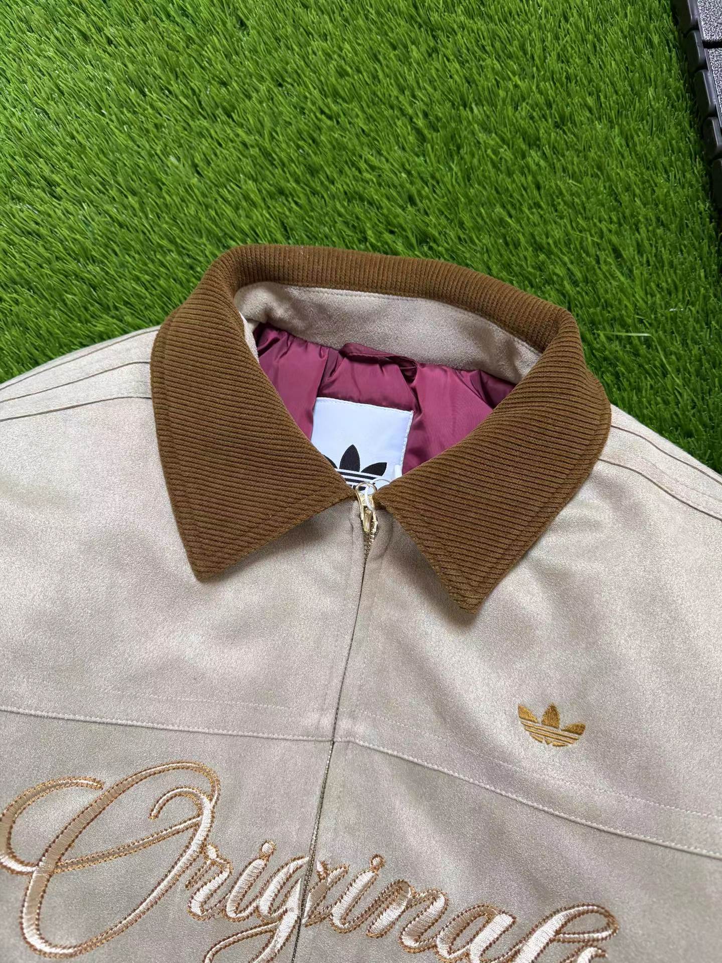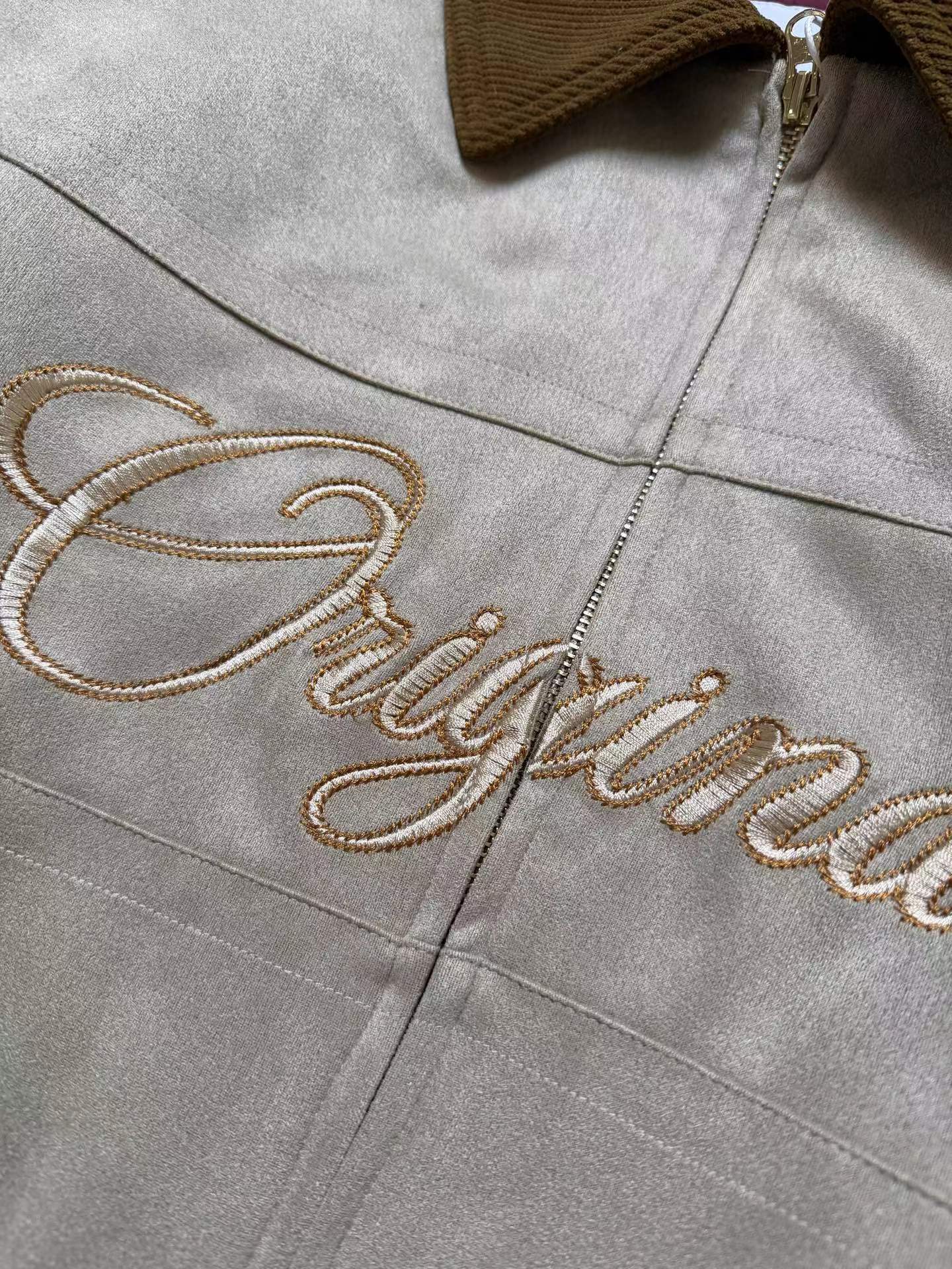 复古麂皮刺绣logo棒球服薄棉服,复古与质感兼备。高密麂皮绒面料软糯亲肤、防水防污,内里定点锁棉不跑绒,保暖又透气。灯芯绒翻领、定制五金拉链、高弹罗纹收口,细节jin致。胸前与背部万针刺绣立体有型,落肩宽松版型不挑身材。复古货物褐配色,搭配三道杠与大Logo,美式街头感拉满,冬日保暖与穿搭一步到位。