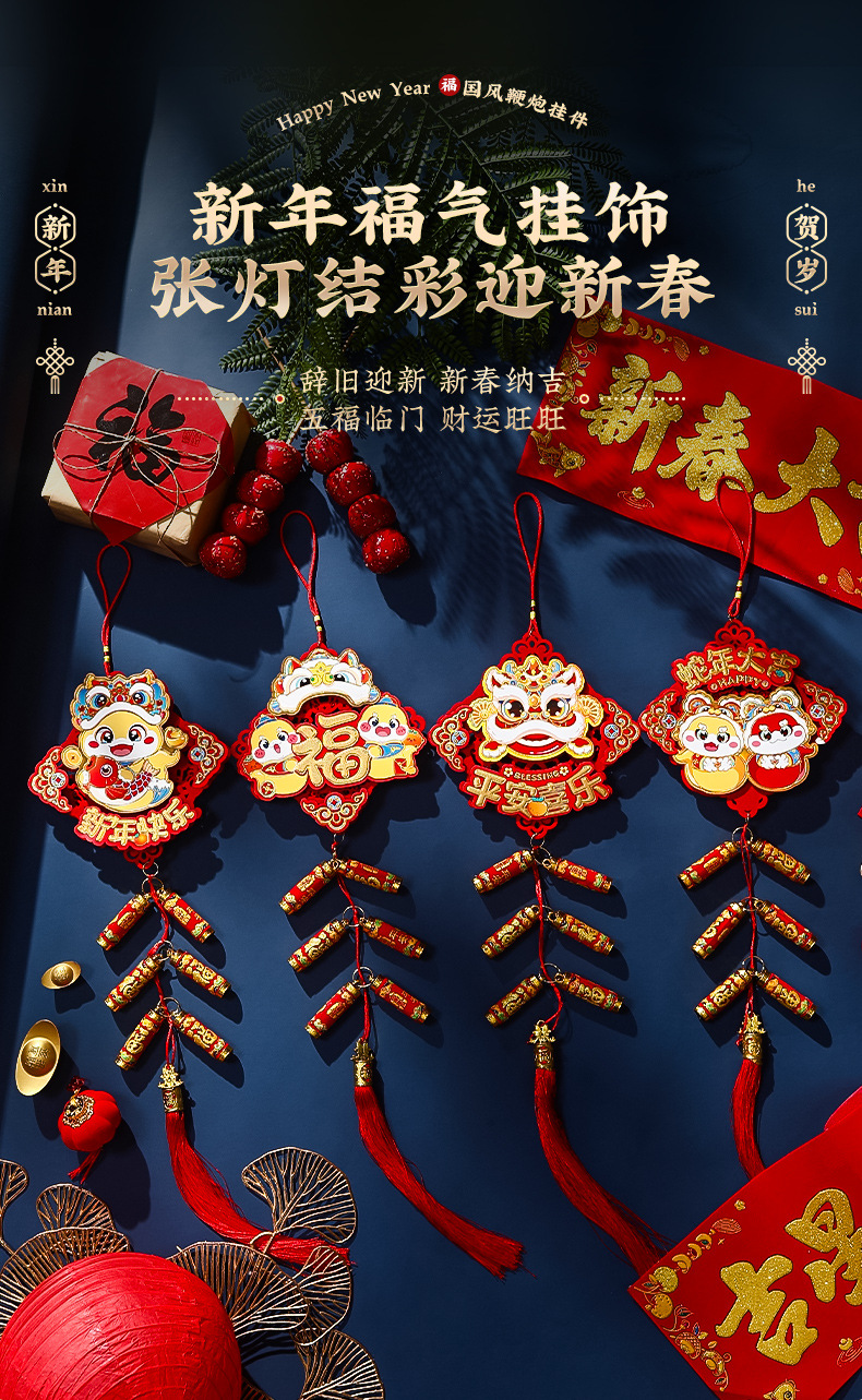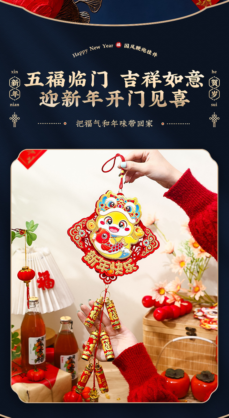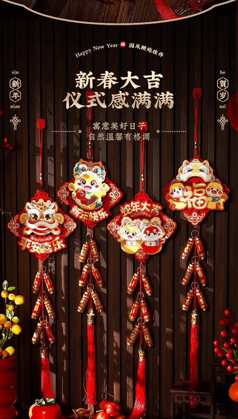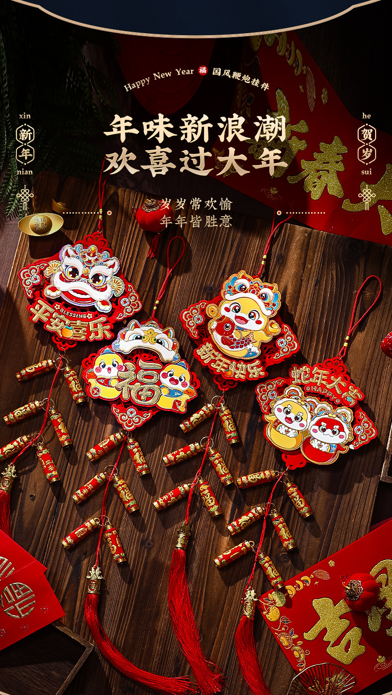 【新年快乐❗️国风鞭炮喜庆挂件】马年福气挂饰,张灯结彩迎新春!福字2025新款鞭炮串年货春节客厅场景过年装饰品挂饰