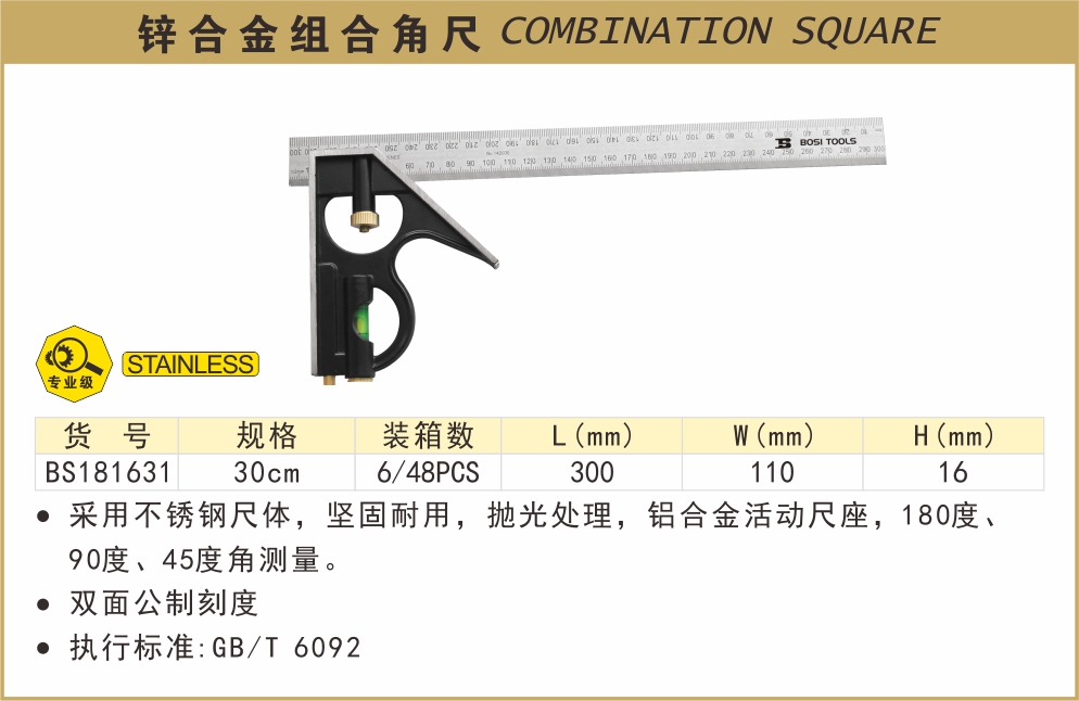 波斯锌合金组合角尺精品型300mm BS181631