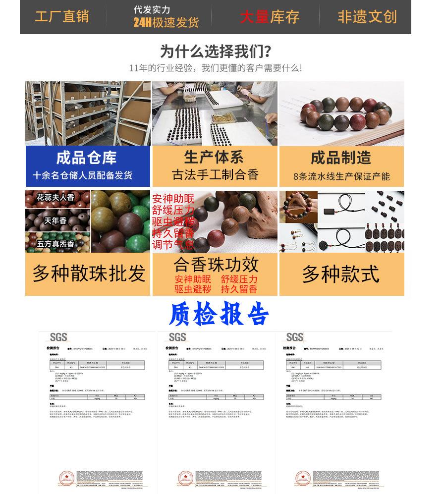 直播爆款天然合香珠手工古法药香持久文玩降真香中药手串佛珠批发