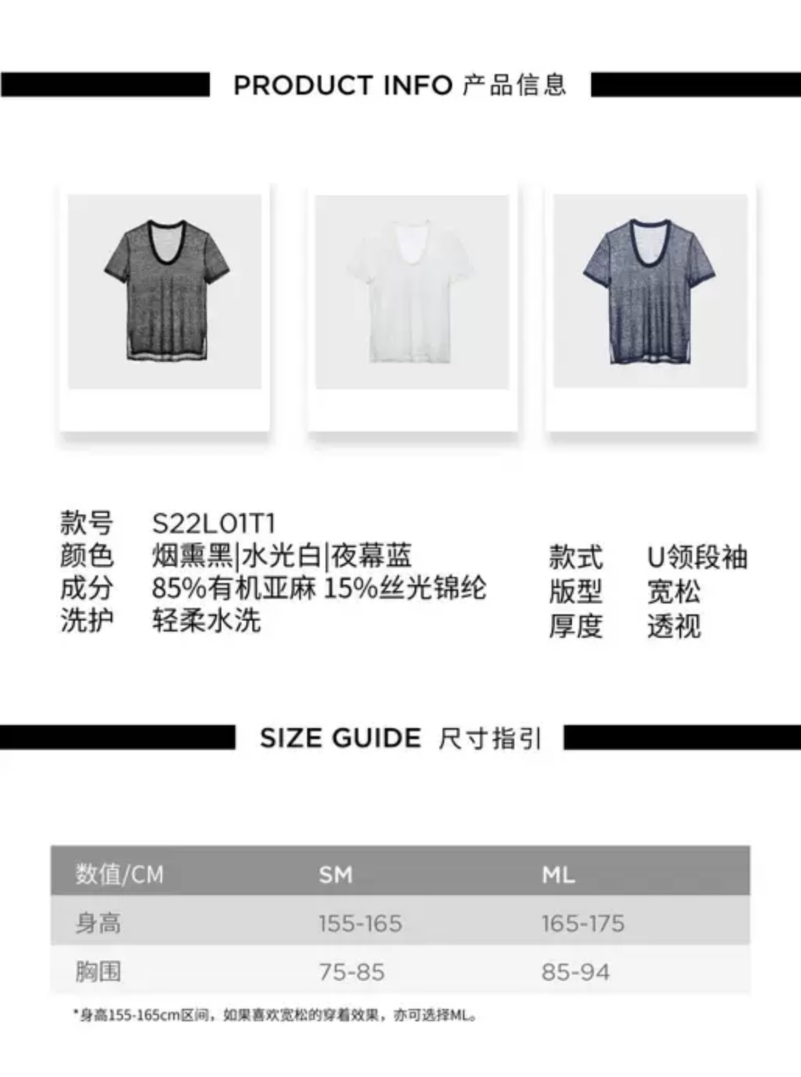 LOAM|Sheer有机麻透视短袖针织T恤 [ 黑 / 白 / 蓝 ]