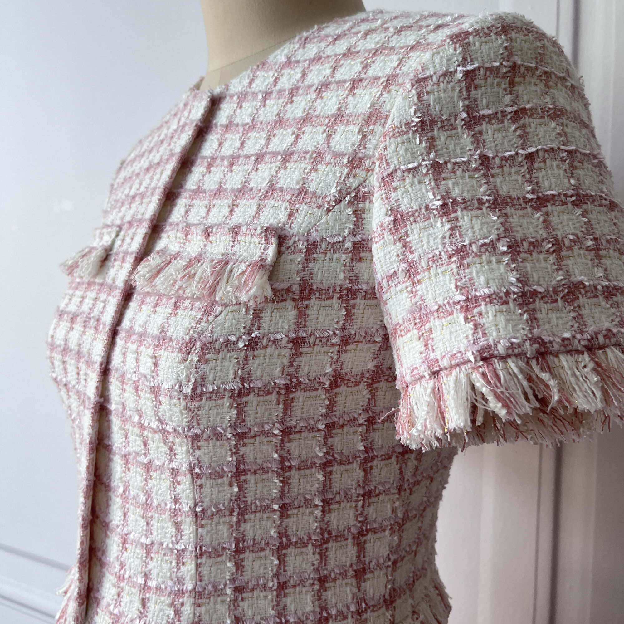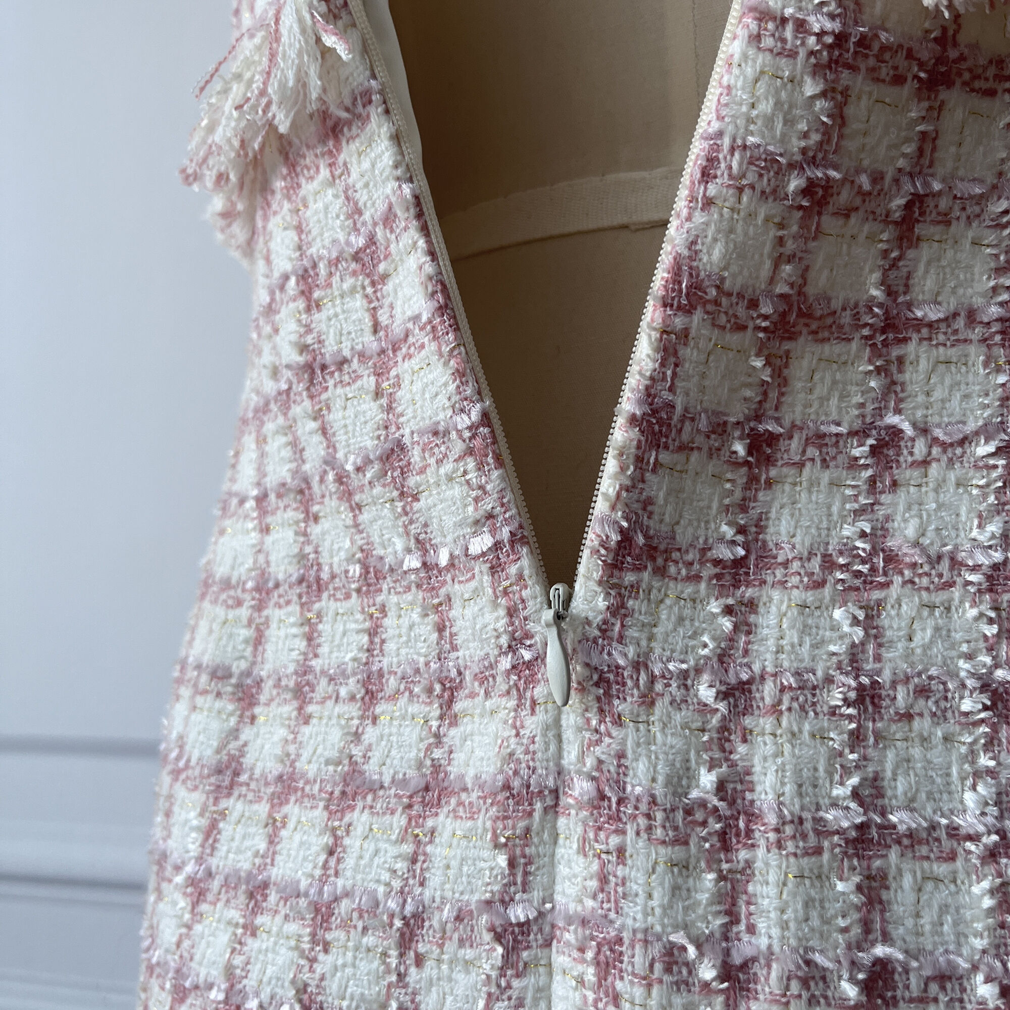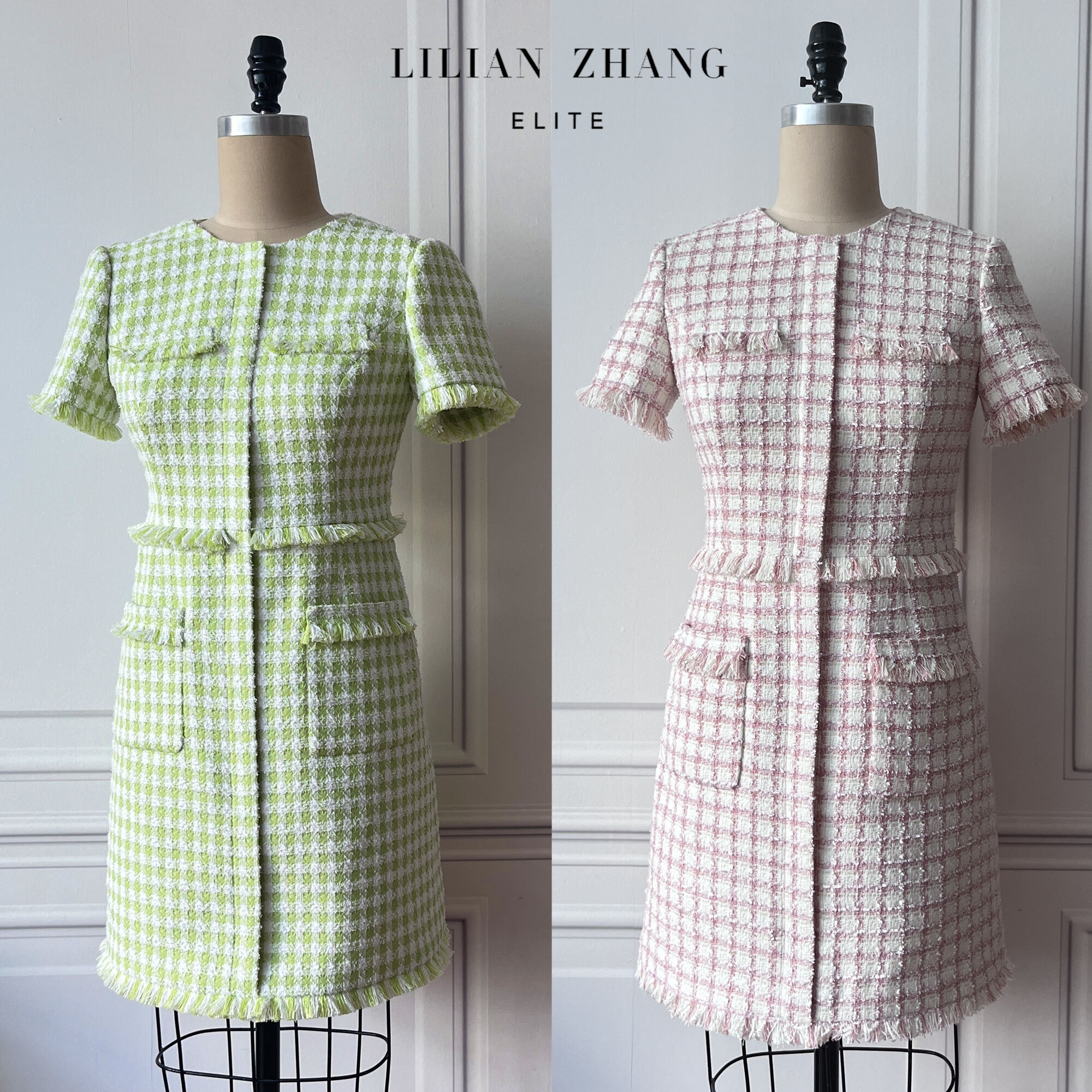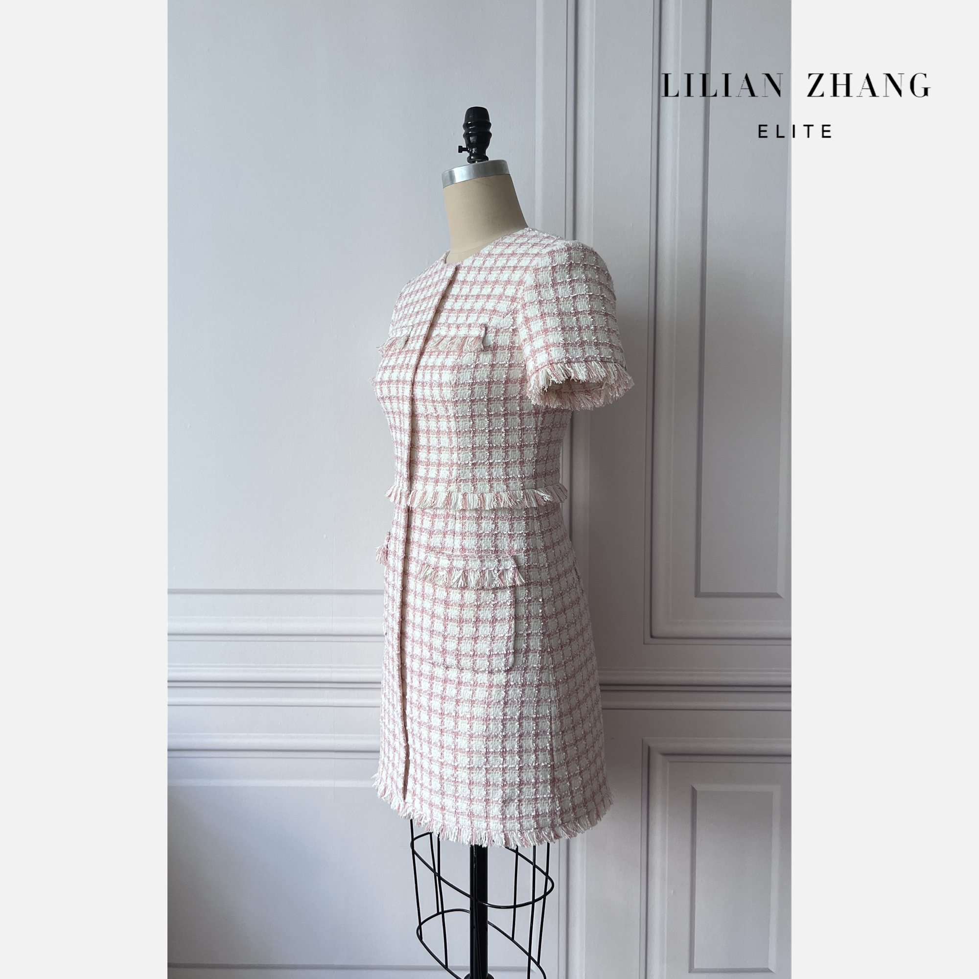 定制-Vintage-轻奢、法式风优雅粗花呢流苏小香连衣裙 2201082