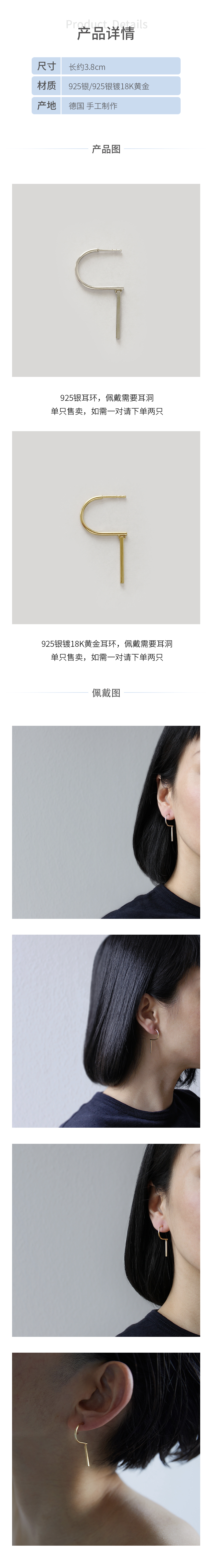 北京仓|Naoko Ogawa-Vector-金银两色 耳环(单只)[日本设计师]
