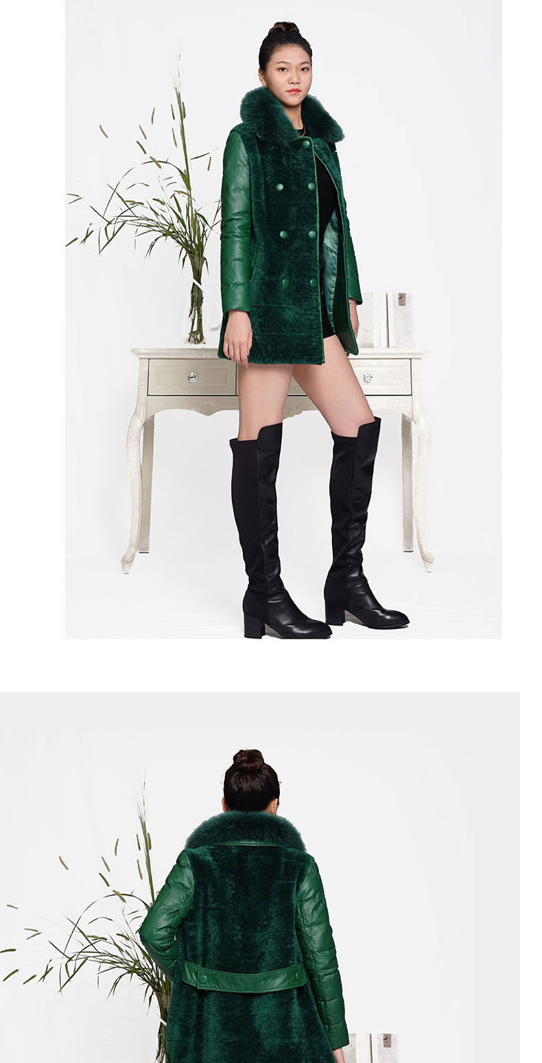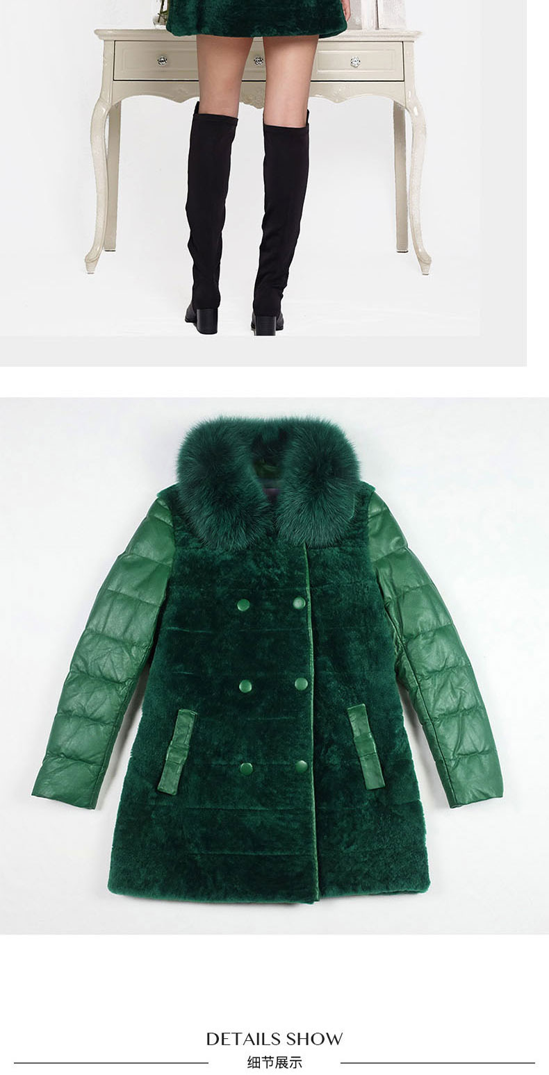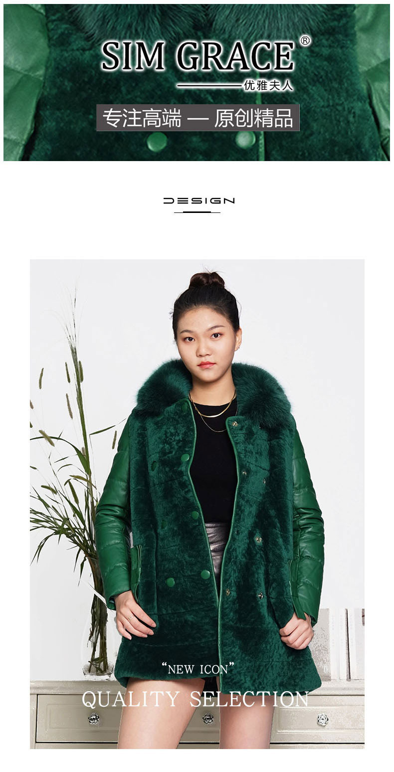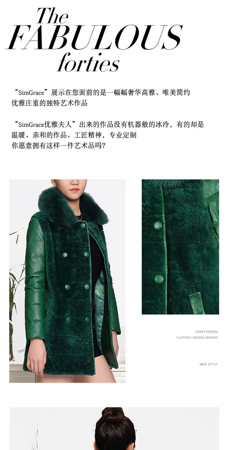 SIM GRACE 优雅夫人 绵羊皮配皮毛一体双排扣英伦风狐狸方领大衣