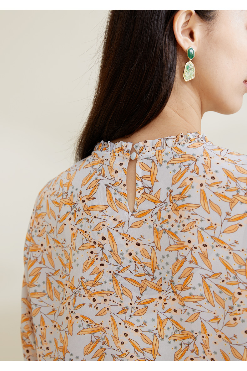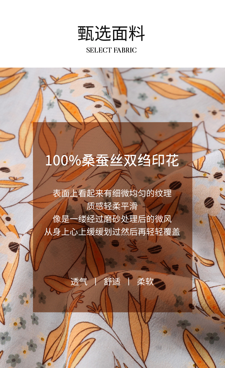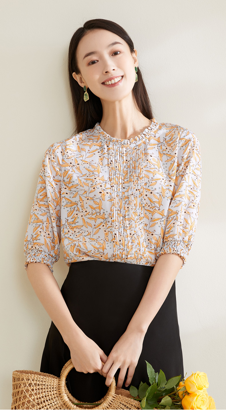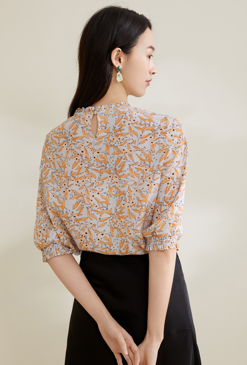 【100%桑蚕丝】玳莎16mm双绉印花真丝小衫新品优雅通勤七分袖T恤 CB31201