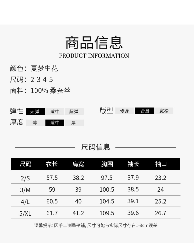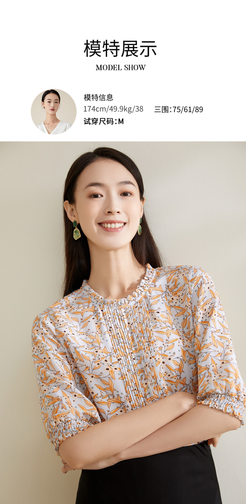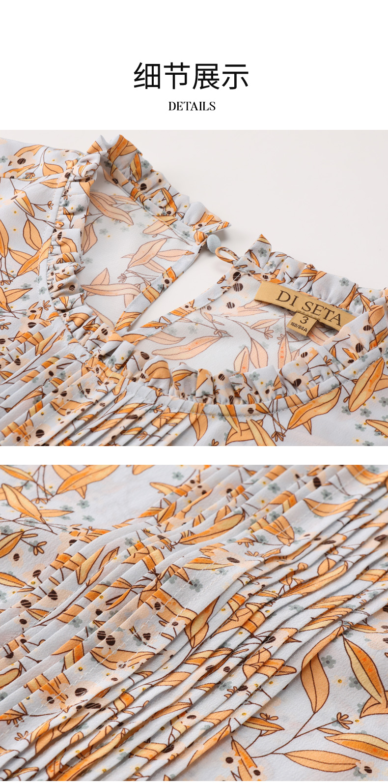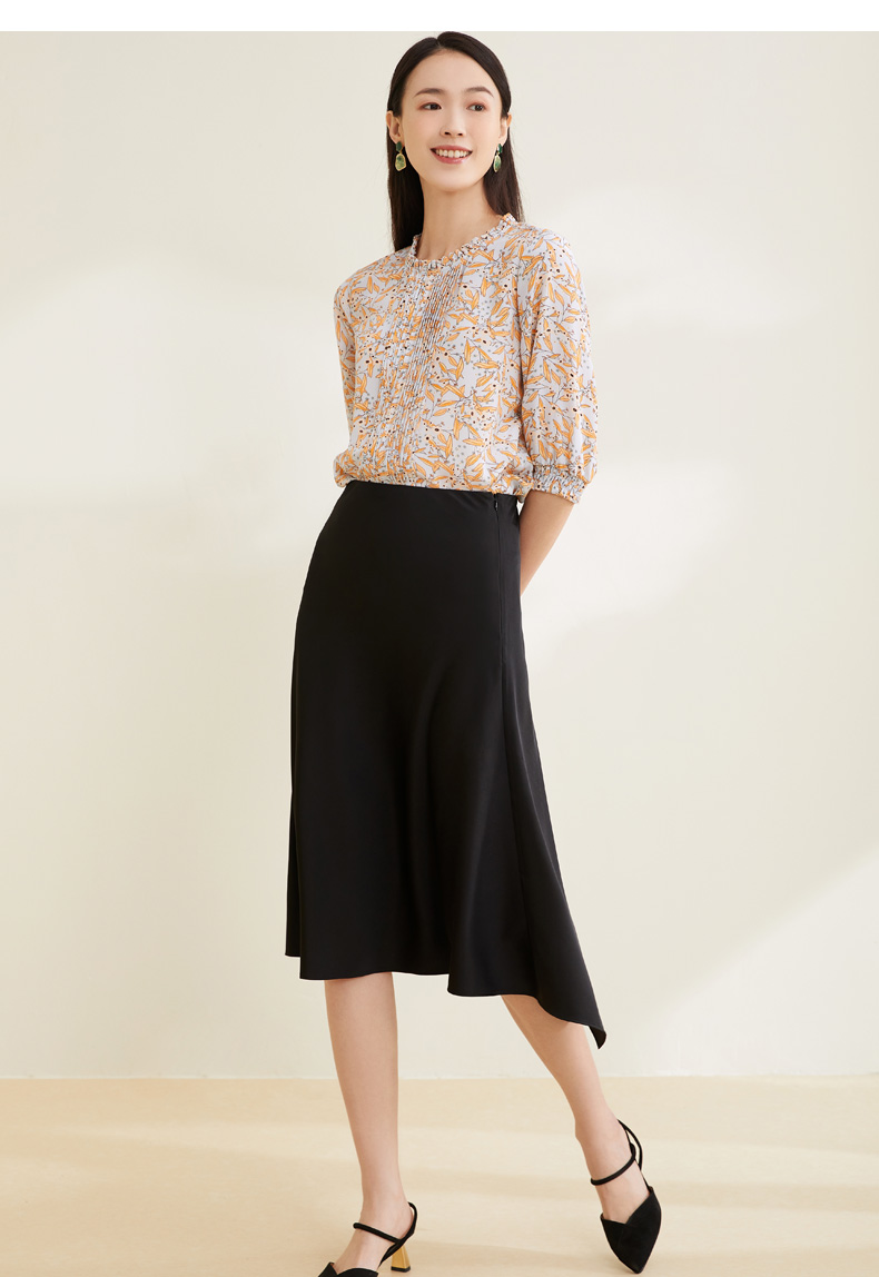 【100%桑蚕丝】玳莎16mm双绉印花真丝小衫新品优雅通勤七分袖T恤 CB31201