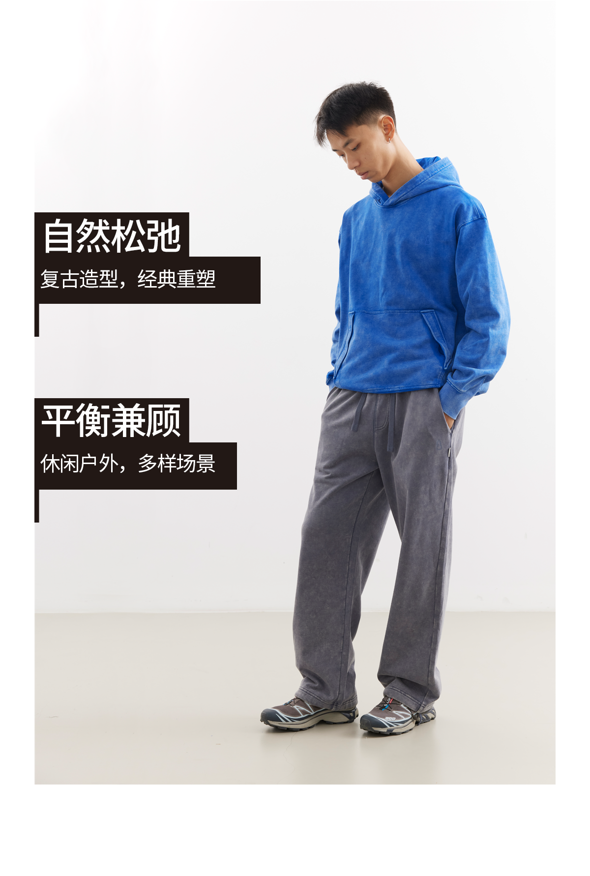 吃茶去chichaqu25重磅洗褪做旧带帽拉链卫衣复古宽松街头休闲运动