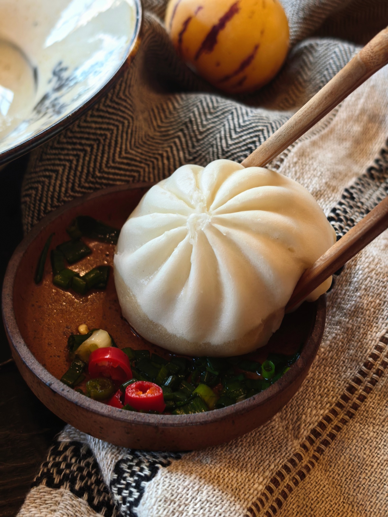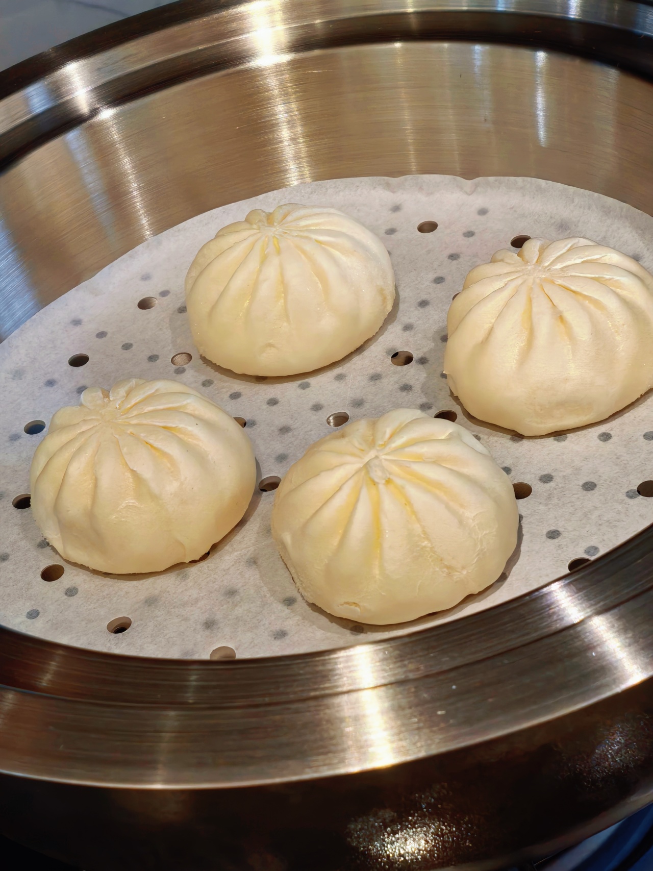 想吃这口鲜,也是非常便捷,放进蒸笼,大火烧到蒸汽直冒后约8分钟就可以开吃啦 !时间一到,揭盖,包子一个个圆鼓鼓的,表皮泛着淡淡的米黄,捏起来软乎乎却不塌,趁热咬一口,面皮的劲道、内馅的鲜香、南乳的醇厚裹在一起,热乎气儿顺着喉咙往下走,浑身都暖了。。。千万不能蒸太久哦,不然皮会软塌,馅里的汁水也会流失掉!喜欢焦香的,也可以做成香煎包。锅内加少量食用油,放入南乳包煎至金黄,再淋少许水焖煮5-6分钟。外皮香脆,内里软糯,腐乳香气愈发浓郁!