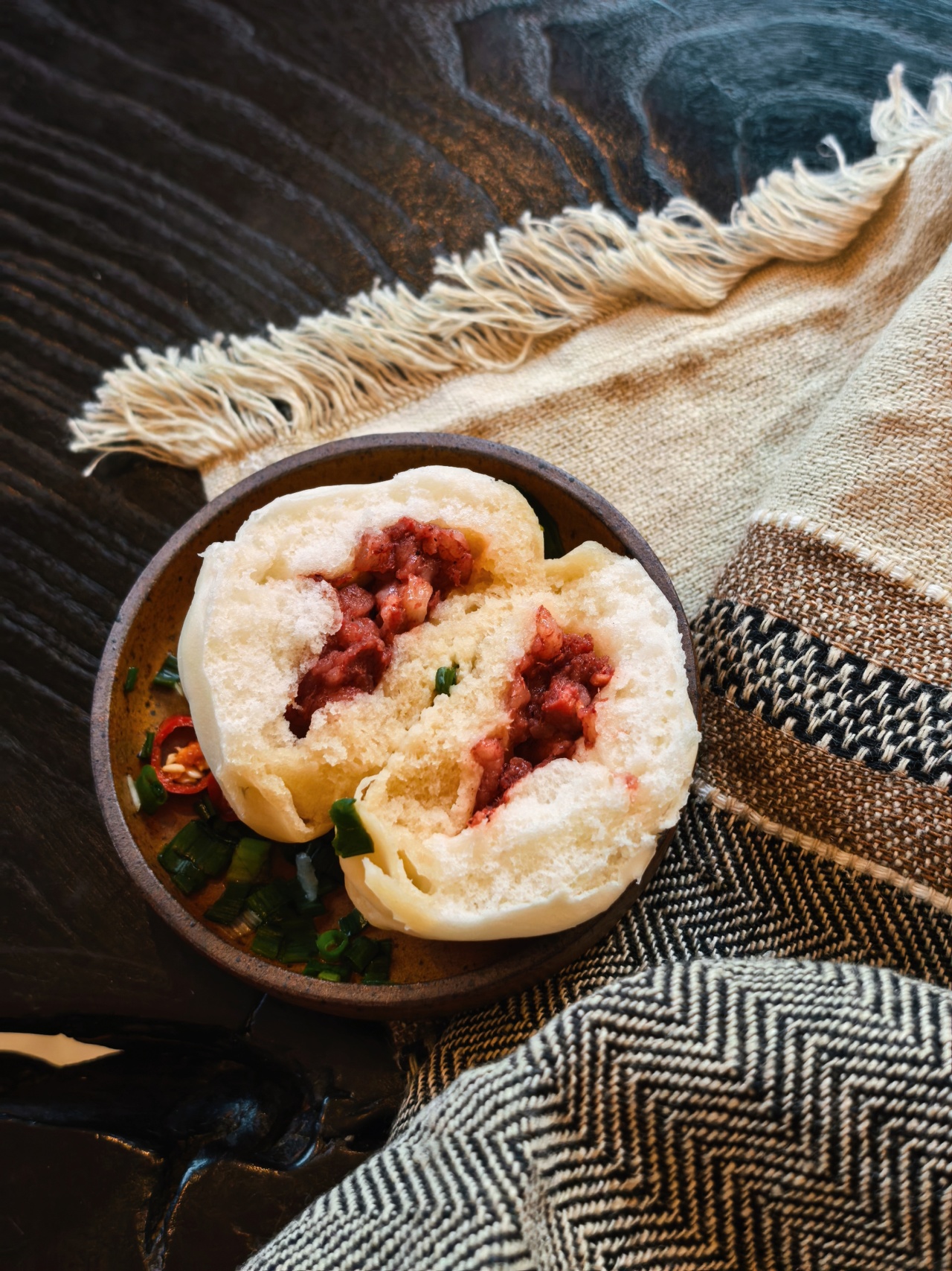这颗看似平凡的包子里,藏着 非遗”传承中的酒粬发酵技艺。它的面皮坚持老面发酵搭配老酒粬,耗时长、工序繁琐,又坚决避开所有增白剂和膨松剂,只保留食材最本真的天然麦香;再经特制压皮工艺处理,层次分明不软烂,咬下去还带着细腻的韧劲,单是面皮就能让人越嚼越香,完全不是市面上用发酵粉做的能比。内馅同样讲究,优选猪肉严格按照3:7的肥瘦比例,鲜嫩又有弹性,再用普宁南乳汁细细拌匀,酱香慢慢渗入肉中,蒸好后肉美汁香,肥而不腻,每一口都是记忆里潮汕食肆的地道味道!