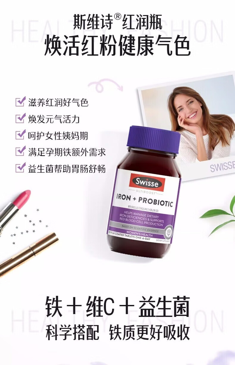 【保税仓】澳洲 Swisse 铁元素+益生菌片30粒
