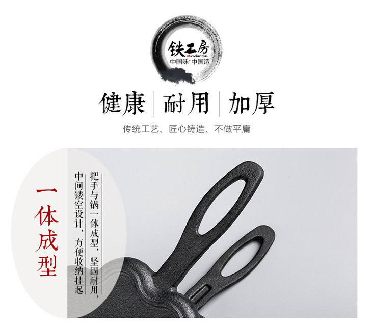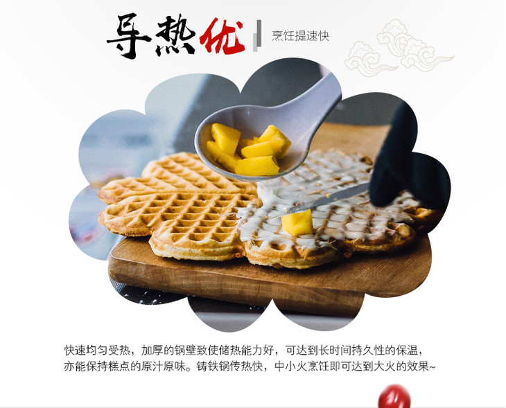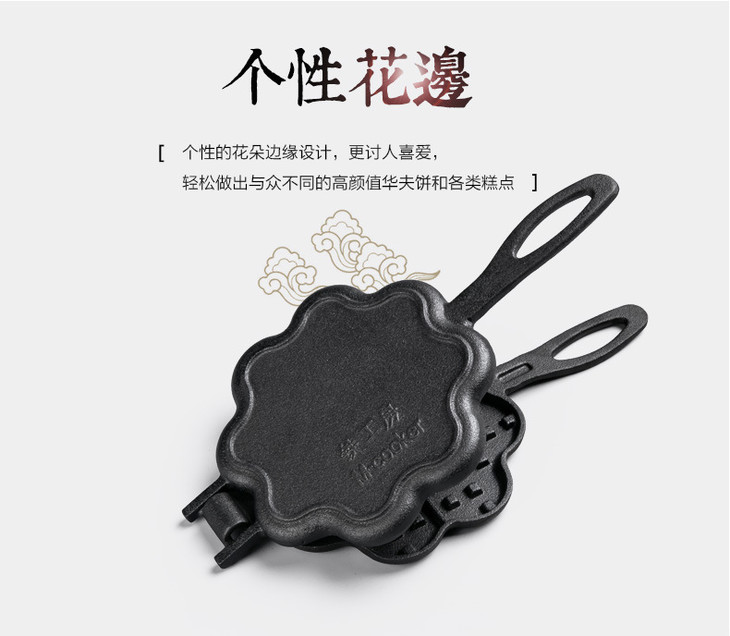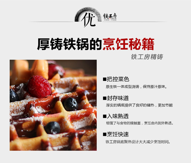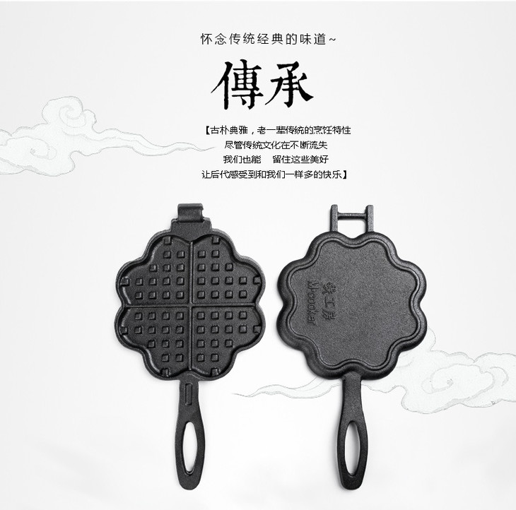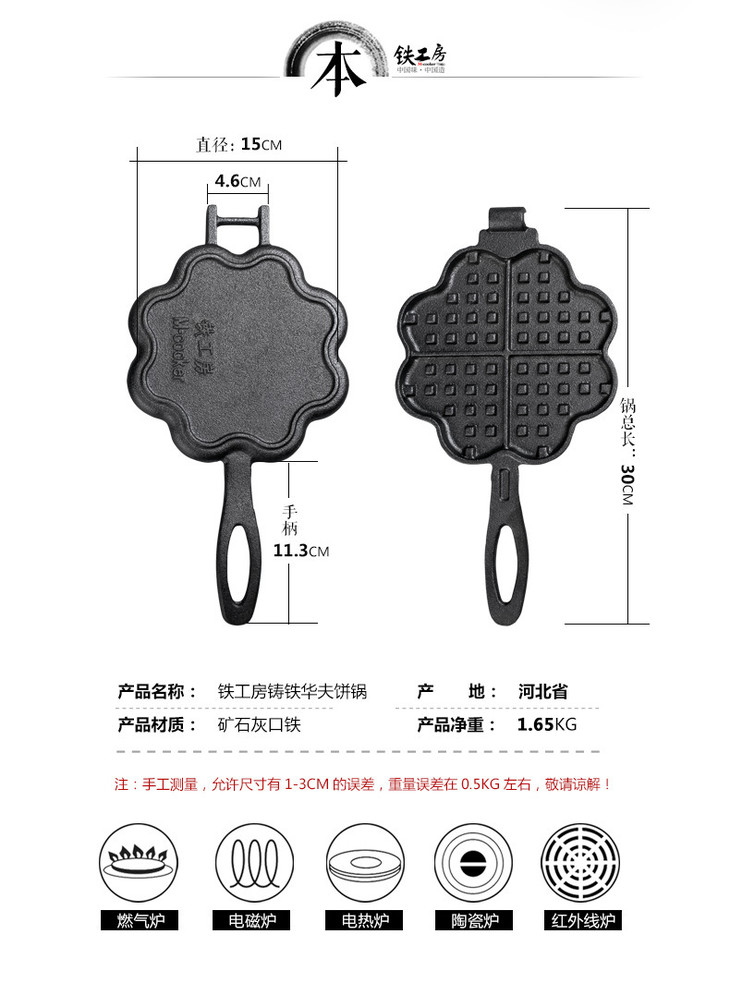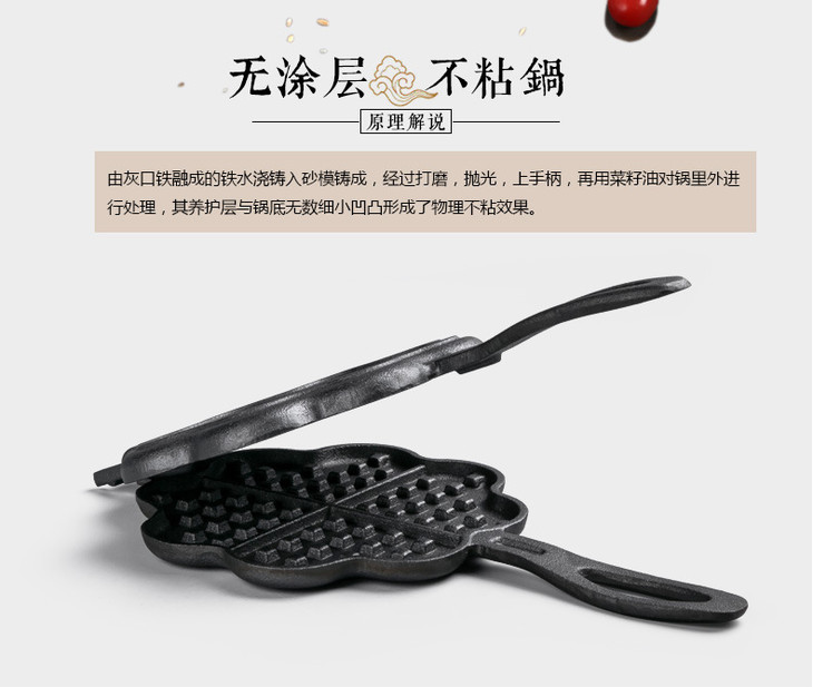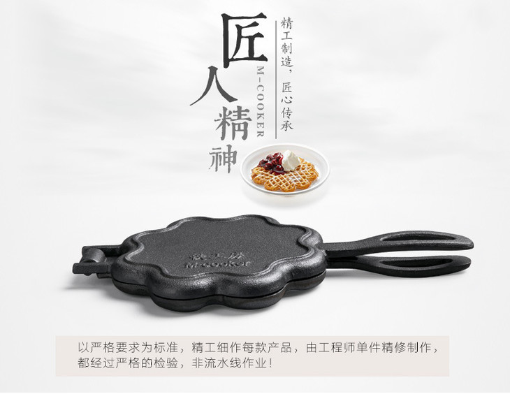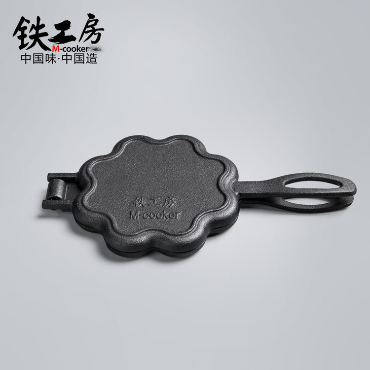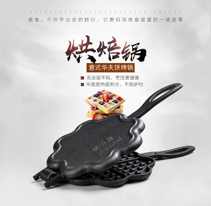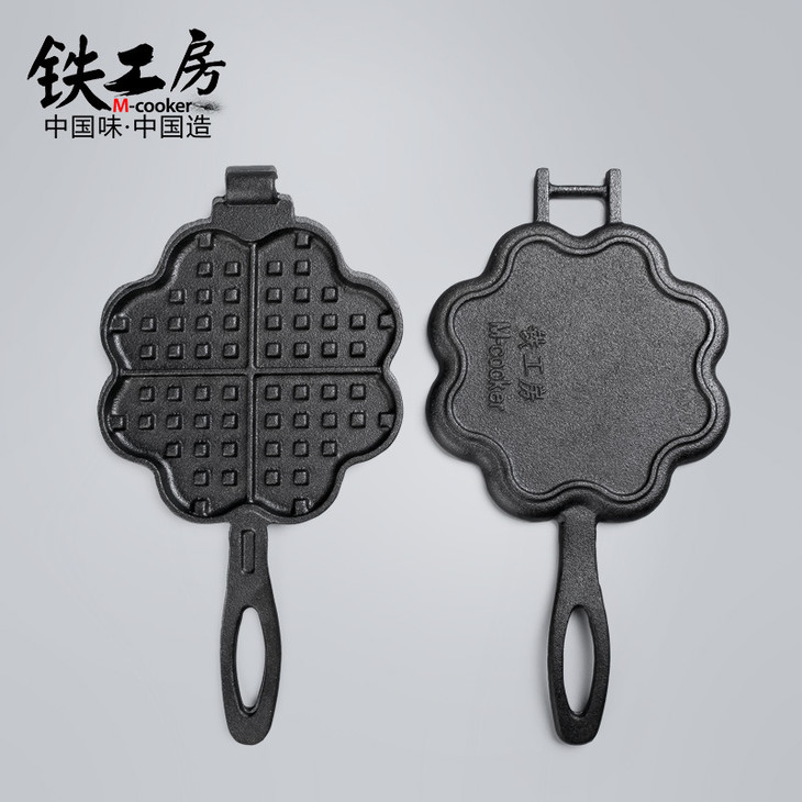 【铁工房】铸铁华夫饼锅无涂层不粘煎锅格子蛋糕烘焙模具家用生铁烤盘